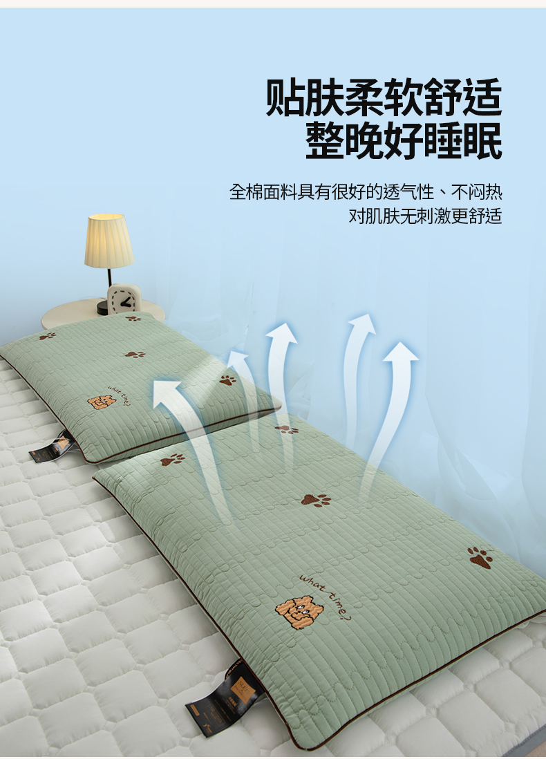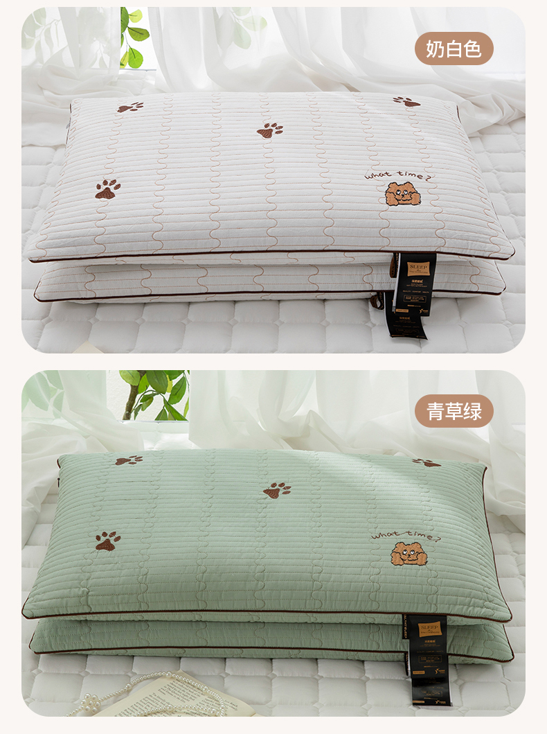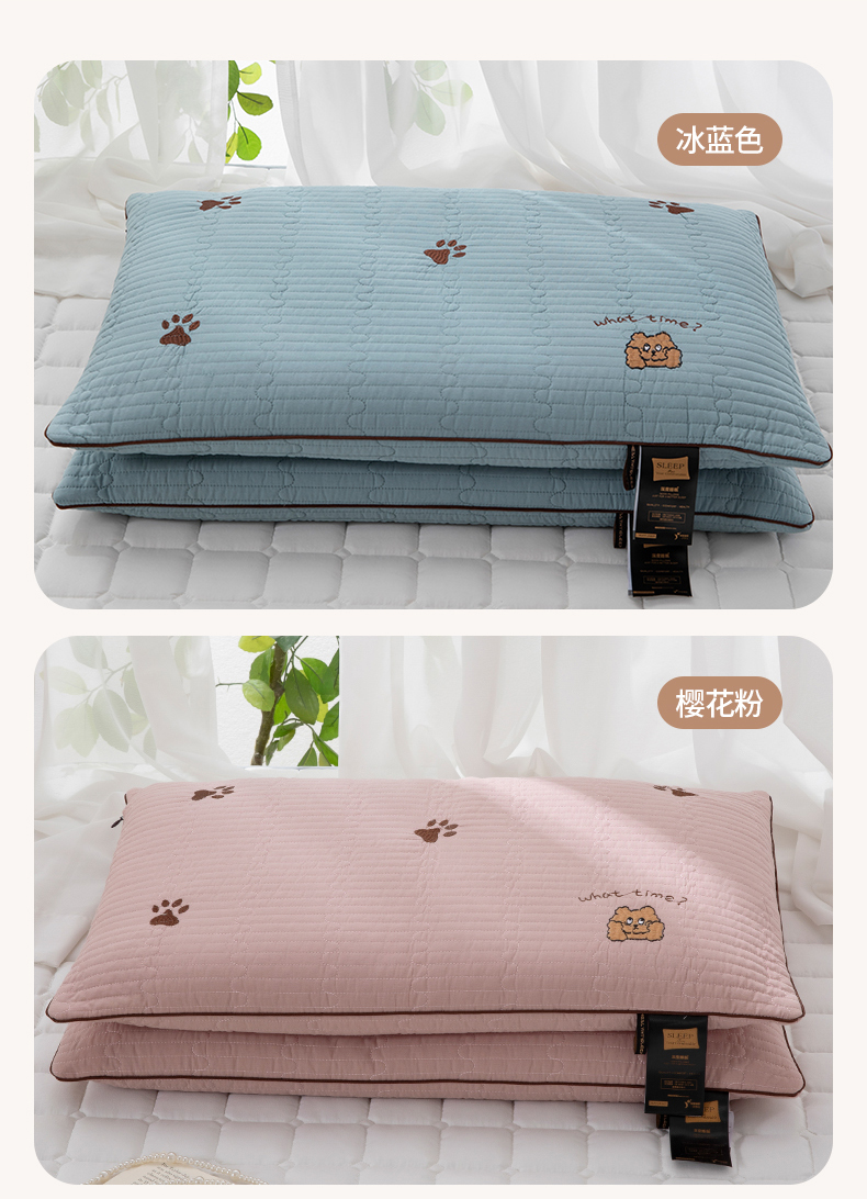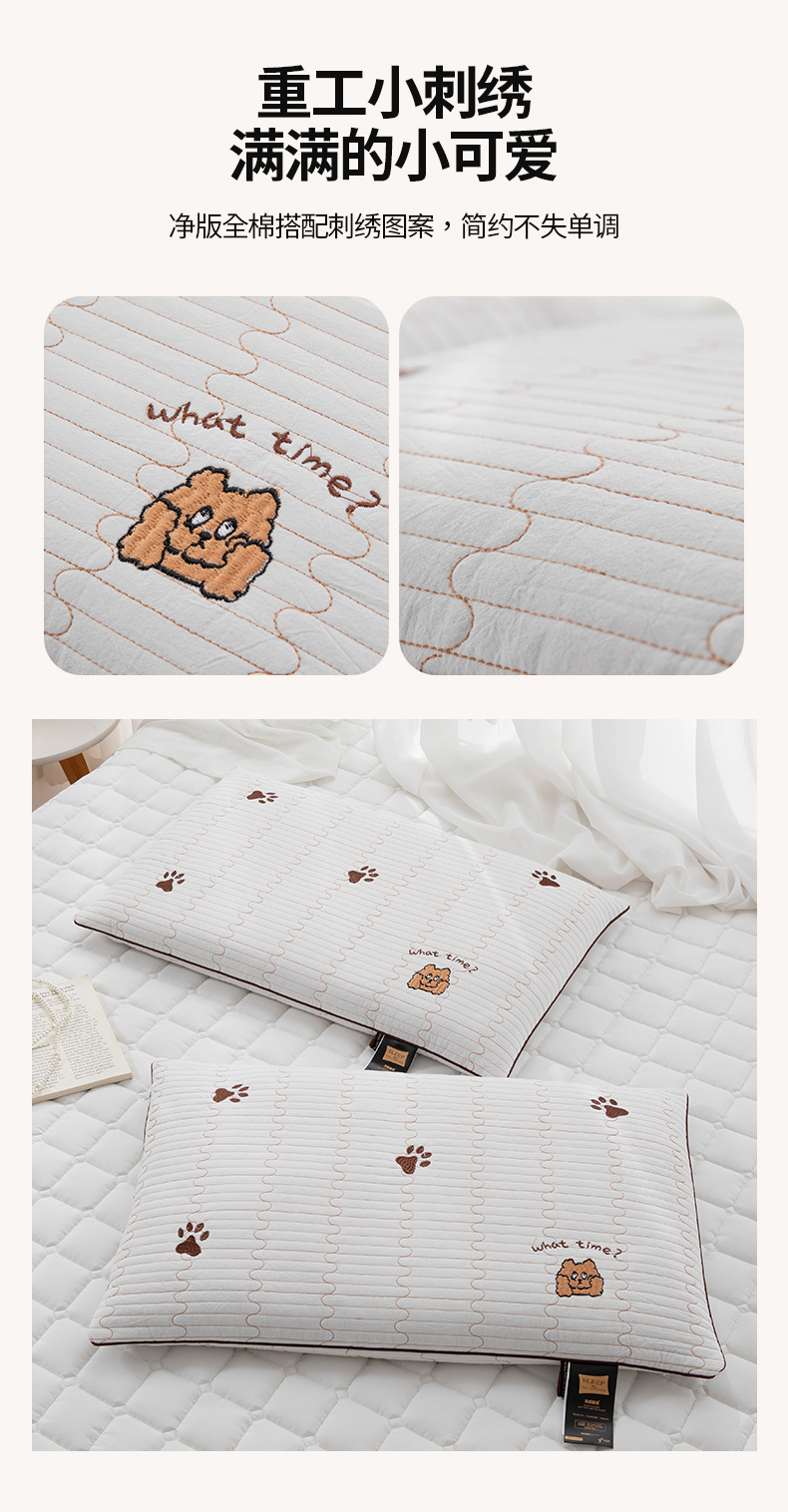 (总)仁宇枕业 2025新款新品全棉绣花单人成人儿童甜梦小时光虎爪系列全荞麦枕头枕芯
