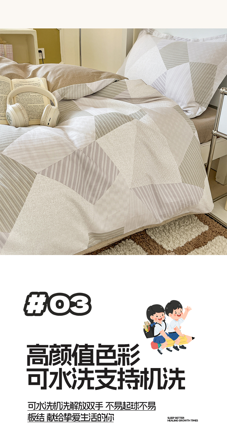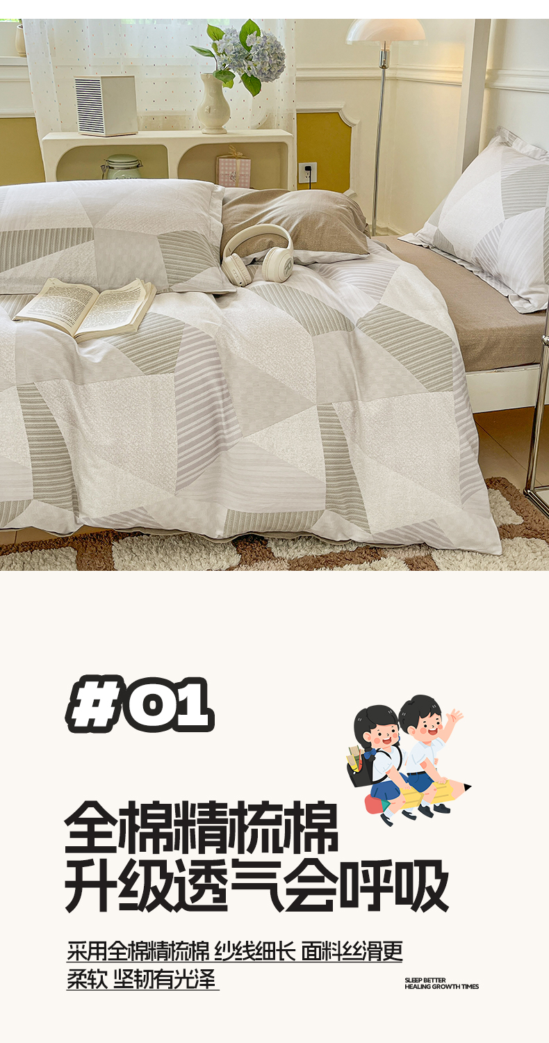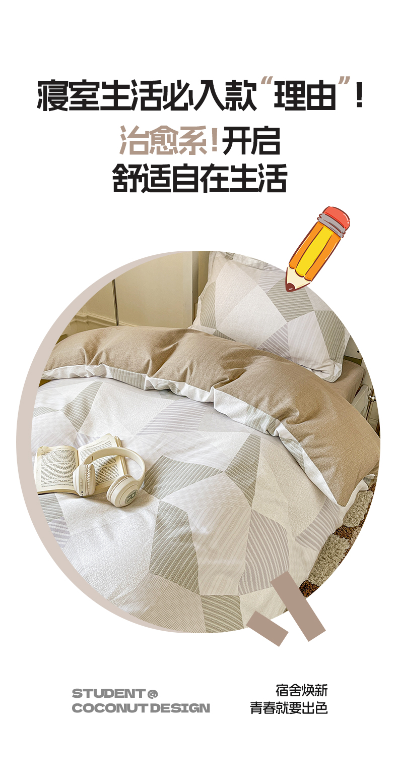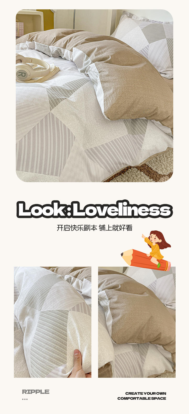 当前位置: 91家纺网 > 商品网购 > 床品套件 > 三件套 > 涵宸家纺 2025新款学生图-全棉印花-甜系三件套四件套 D贝尔