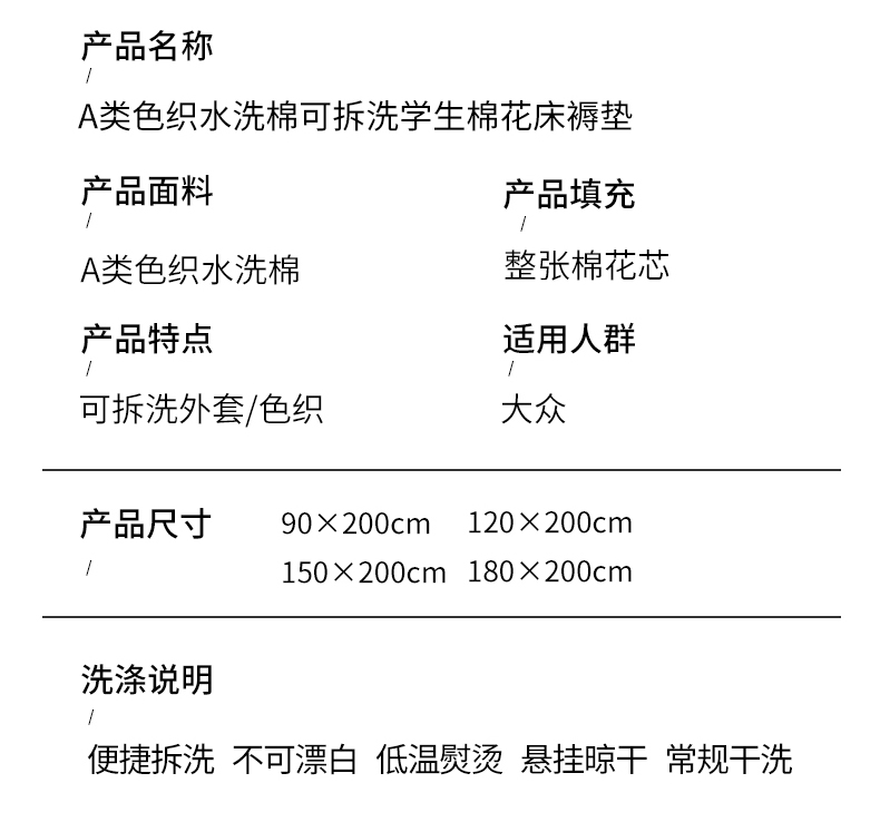 90x200cm棉芯+床垫套-总重-4斤 | ¥36.00 |