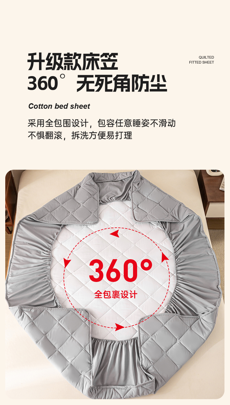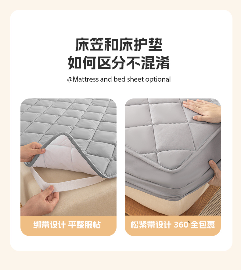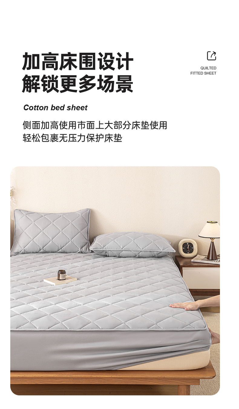 • 91家纺网 家纺一手货源 找家纺 憨豆家纺 2025新款水洗棉磨毛夹棉床笠四季床垫褥子床护垫薄款学生宿舍榻榻米垫被跨境加棉保护垫升级床笠款-灰色