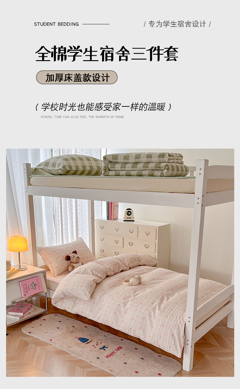 慕晨 2025新款全棉学生床盖宿舍印花纯棉床盖三件套AB版皆可用四季通用直播 清新绿格
