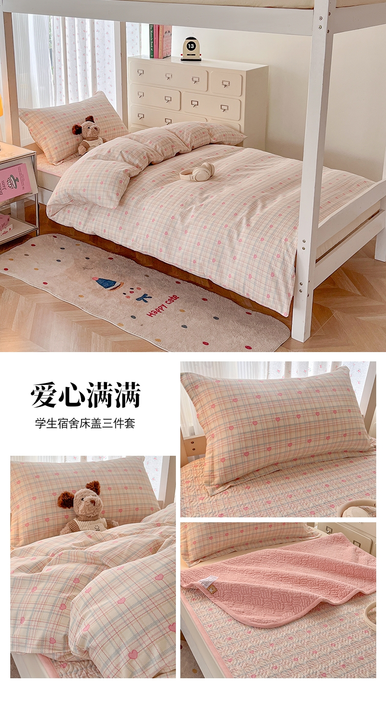商品名称:慕晨 2025新款全棉学生床盖宿舍印花纯棉床盖三件套AB版皆可用四季通用直播 清新绿格