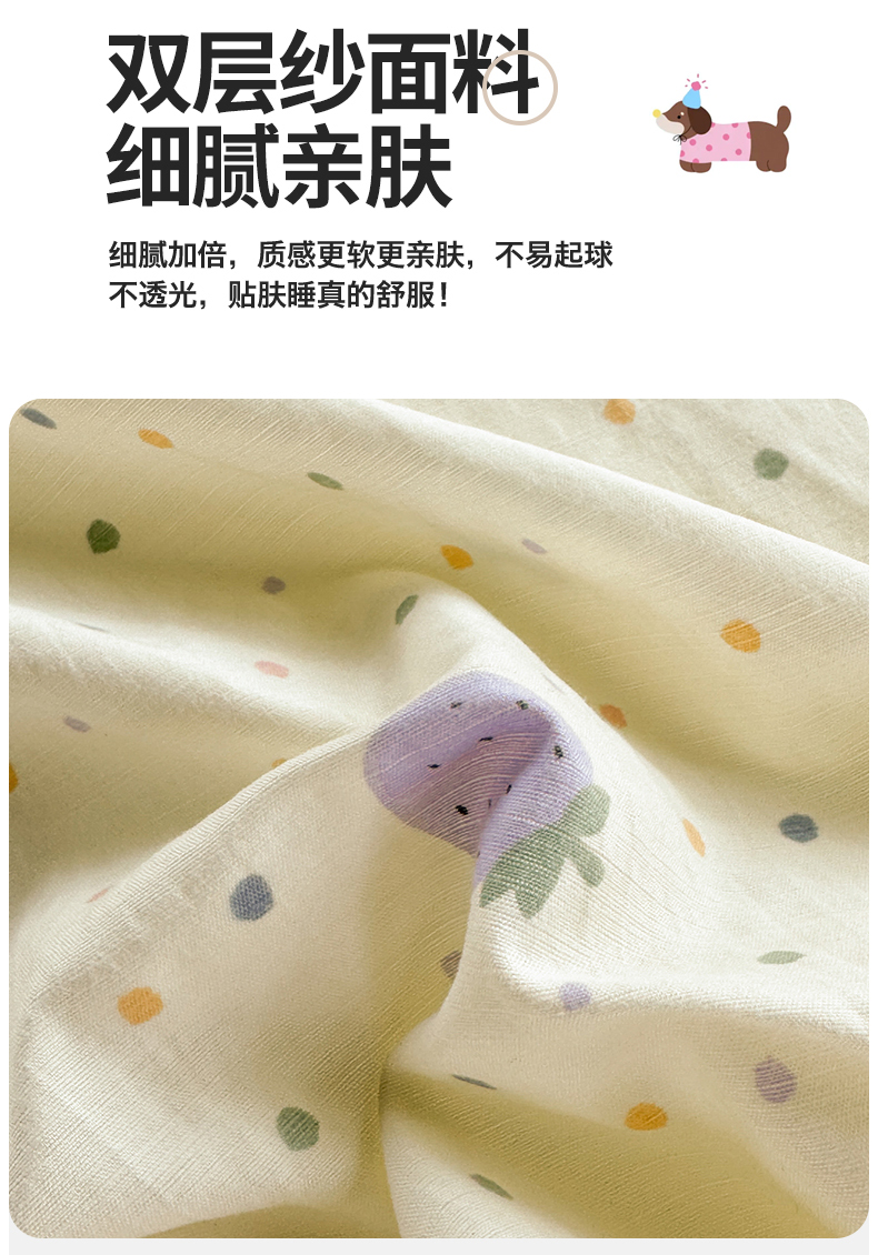 (总)多品家纺 2026新款奶呼呼超柔云感双层纱系列单被套,白露紫,半岛兰格,半岛紫格,豹纹猫咪,粉粉小花,福气满满,花田小狗,欢乐时光,开心狗,棉花兔兔,浅浅春意,桃气兔兔,淘气园,汪星人,小橘狗,熊多多,熊熊空间,学院派,樱桃蓝,樱桃紫