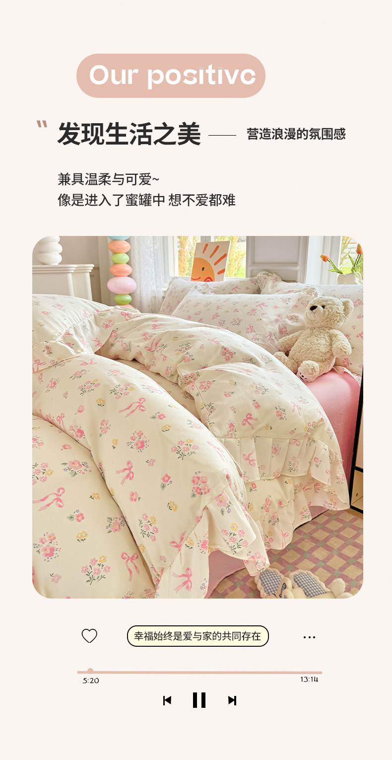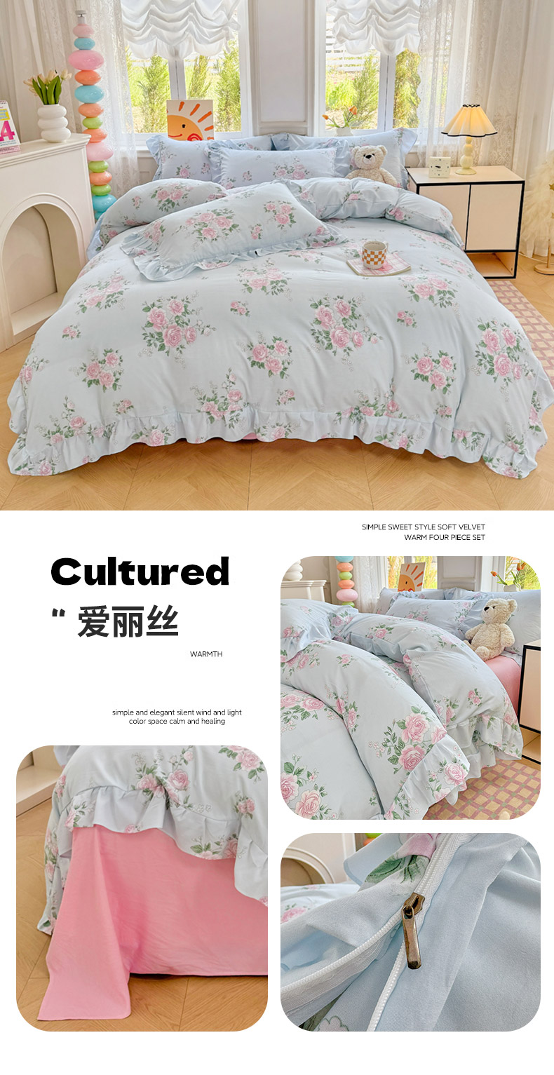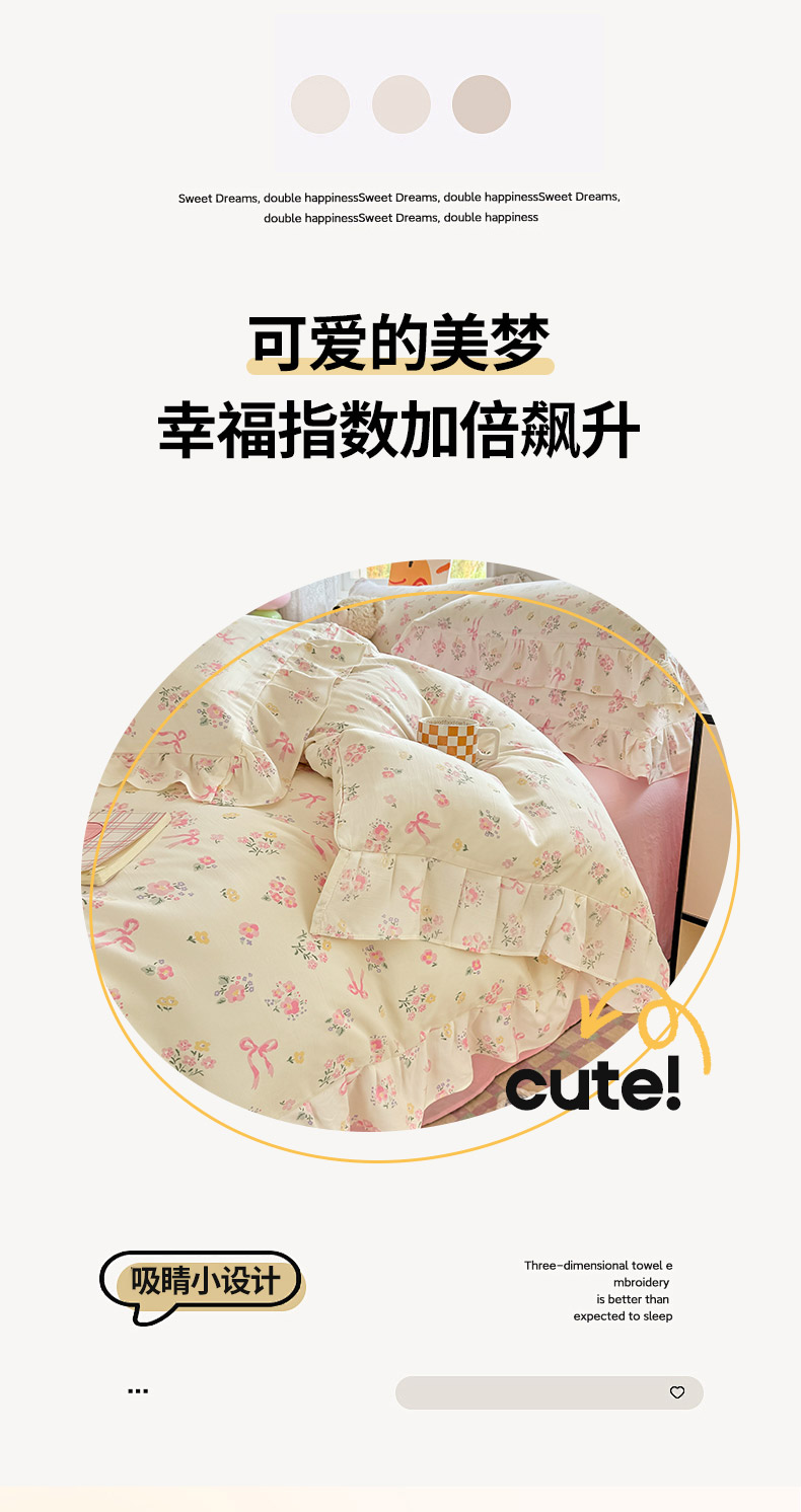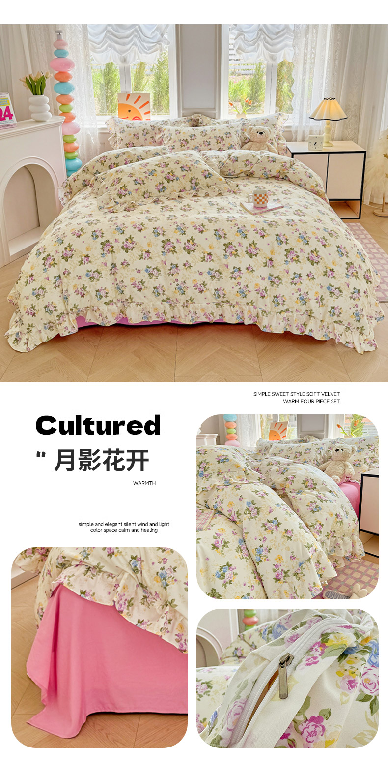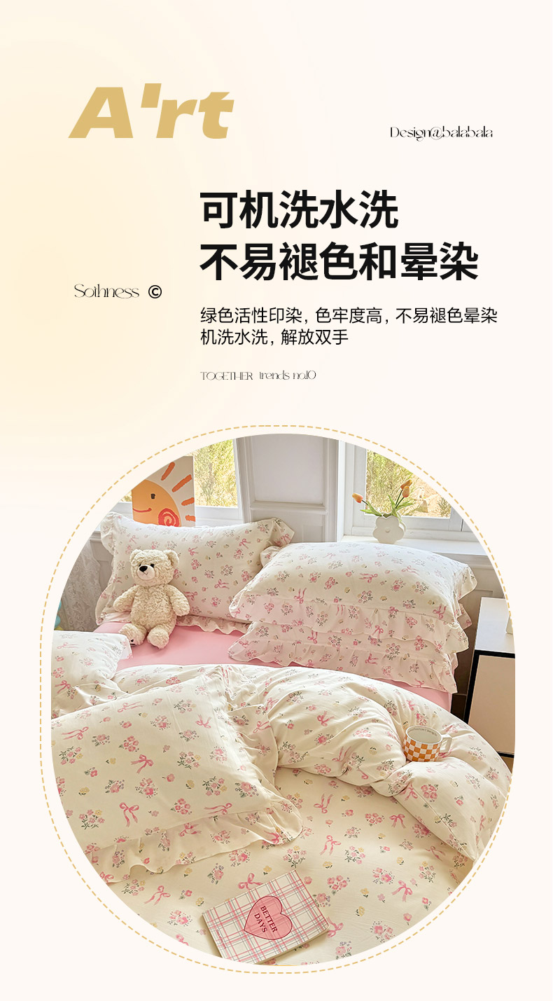 商品名称:(总)芷凡家纺 2025新款A类加厚超柔水洗棉花边款韩式四件套