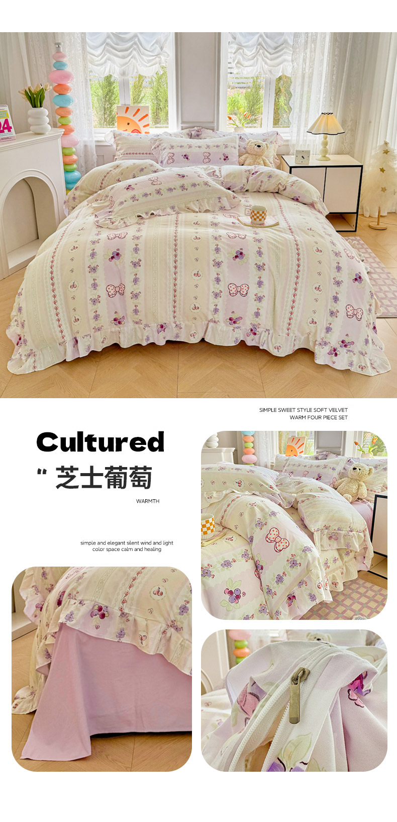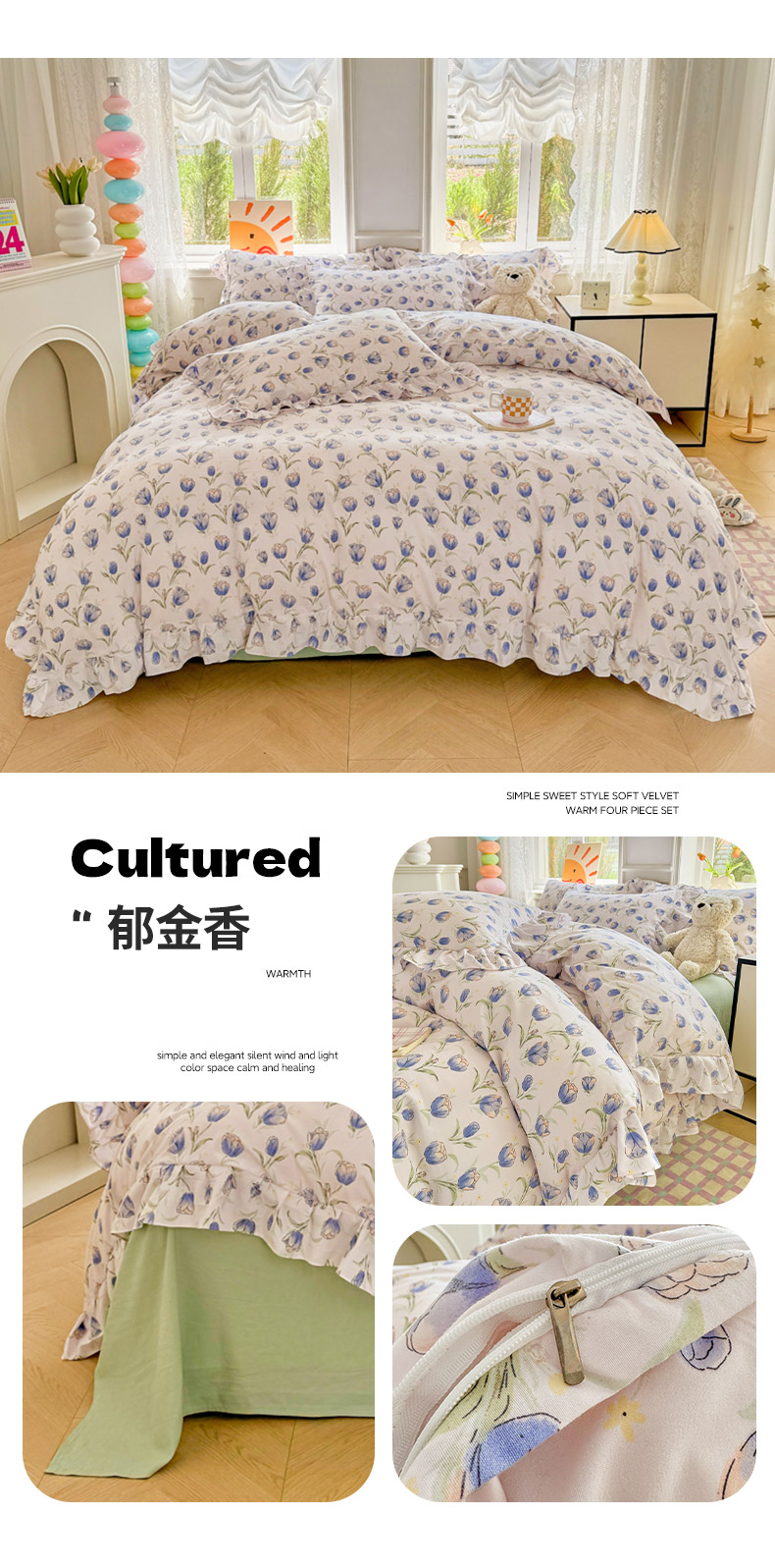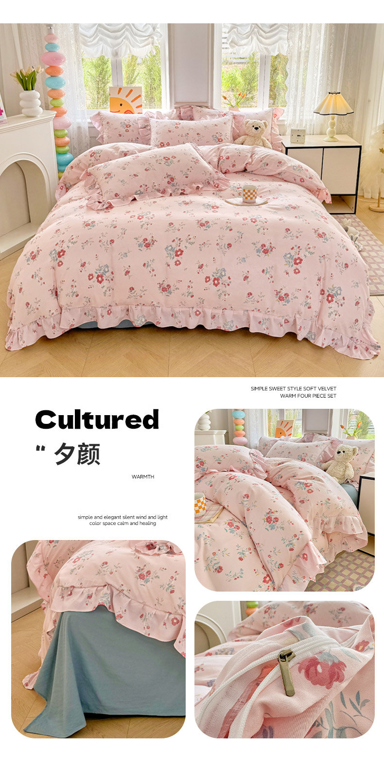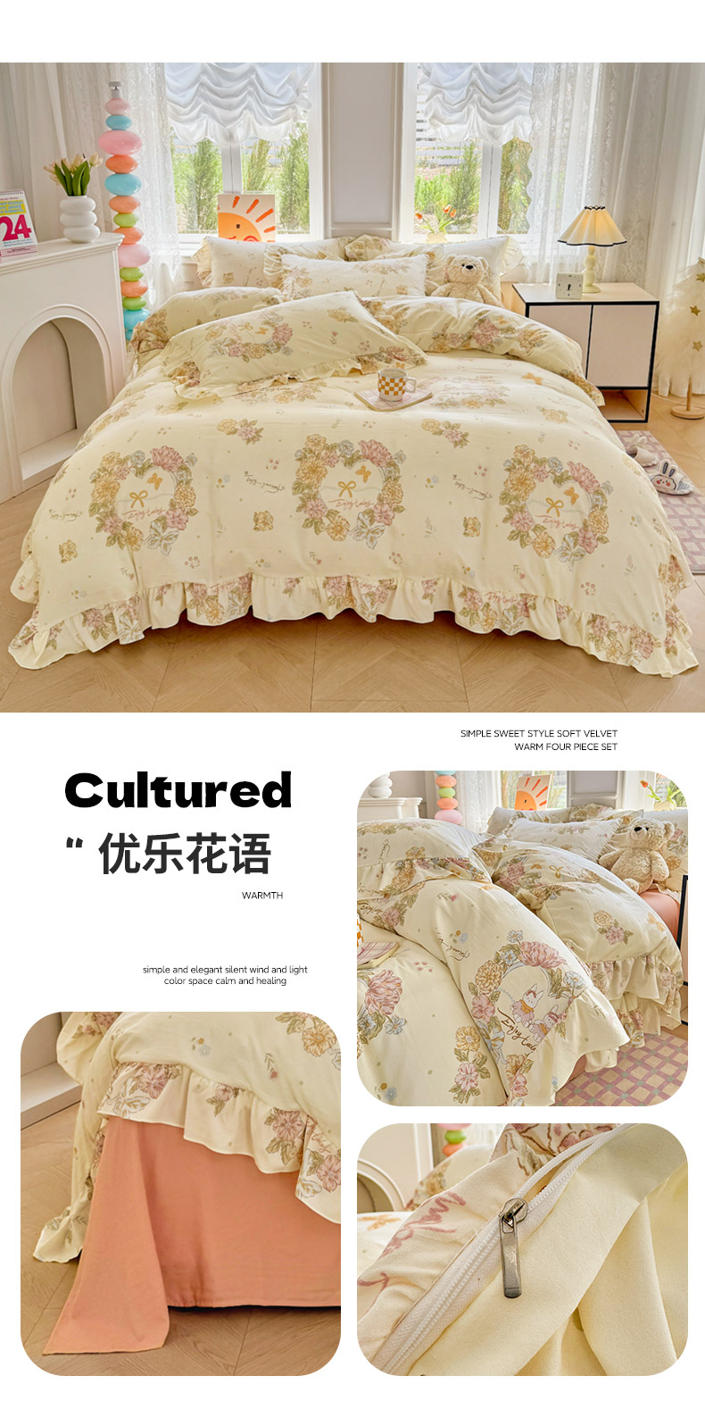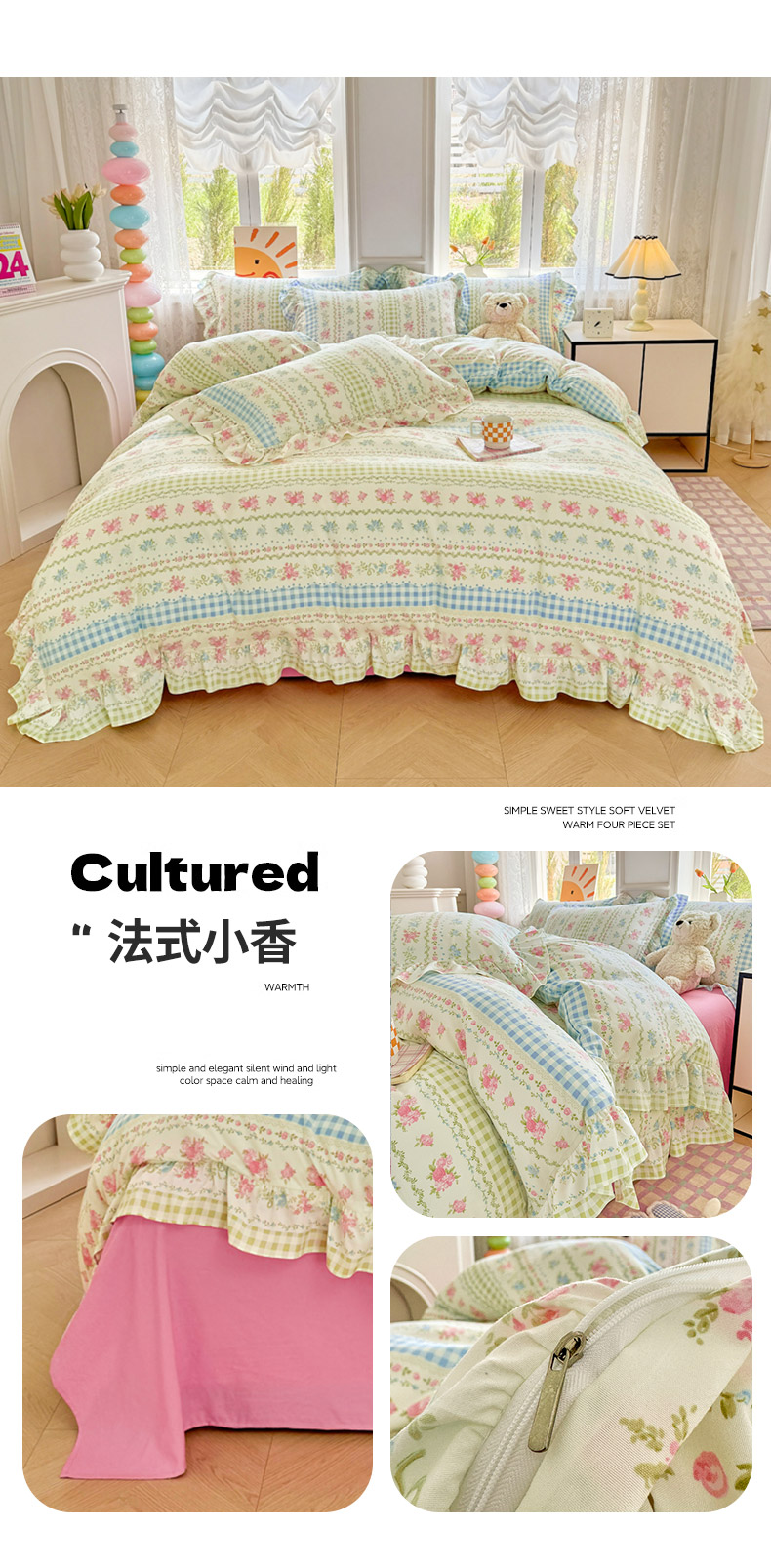 商品名称:(总)芷凡家纺 2025新款A类加厚超柔水洗棉花边款韩式四件套