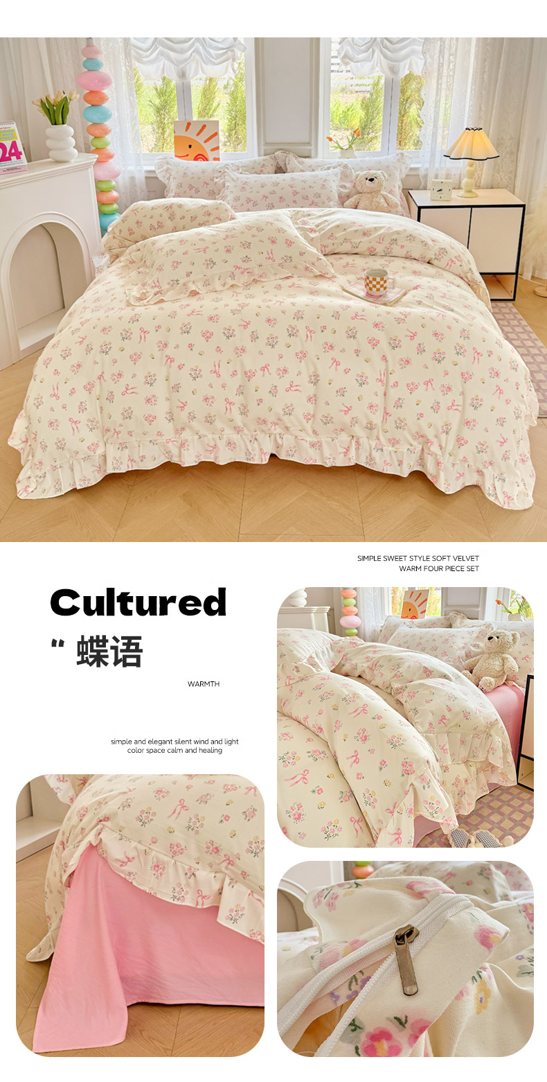 (总)芷凡家纺 2025新款A类加厚超柔水洗棉花边款韩式四件套