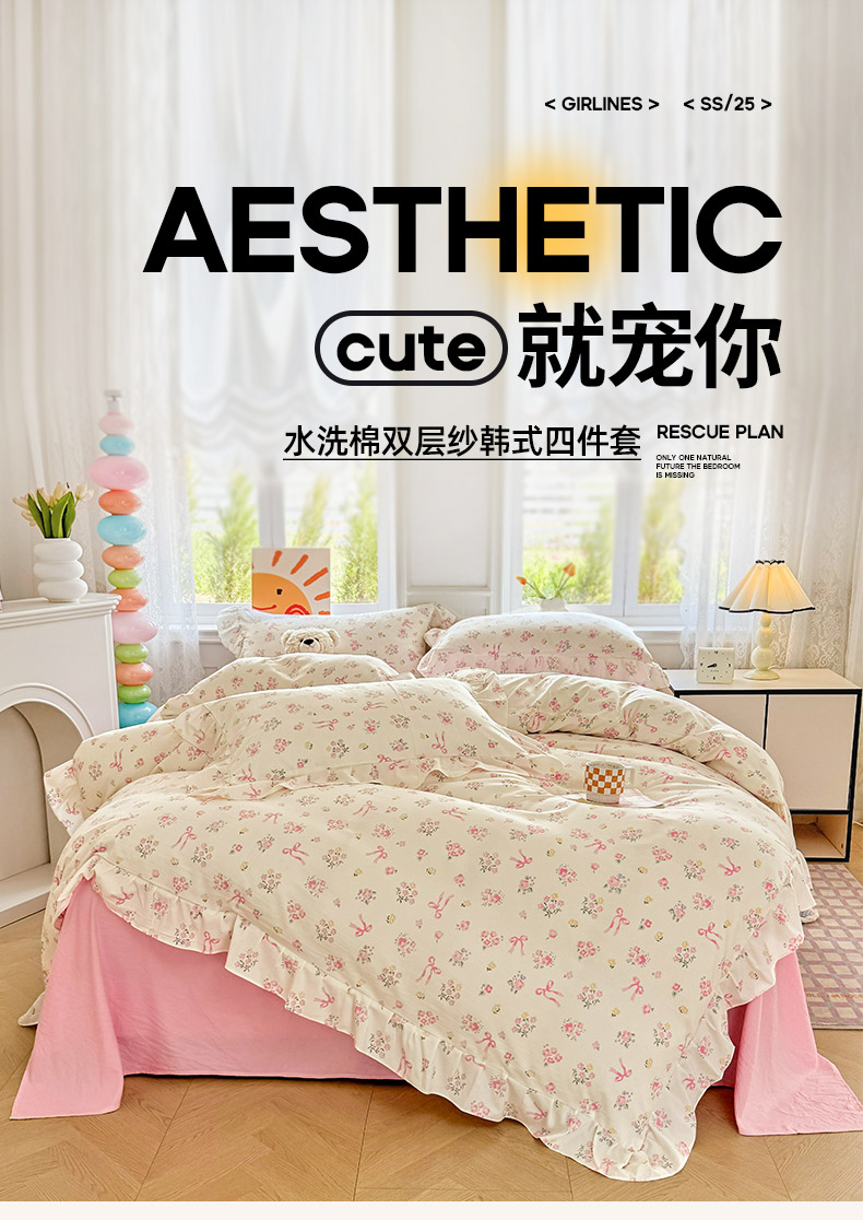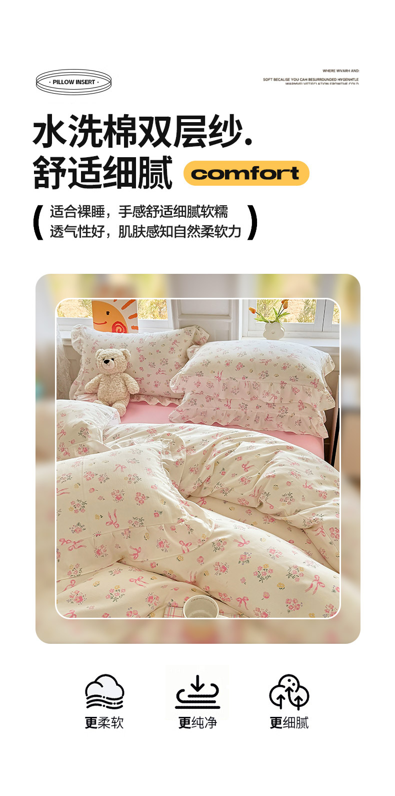(总)芷凡家纺2025新款水洗棉双层纱云感棉床盖四件套,格心,格心生活,花恋,兰溪园,清茶,时尚蝴蝶结,甜心,玉贵狗