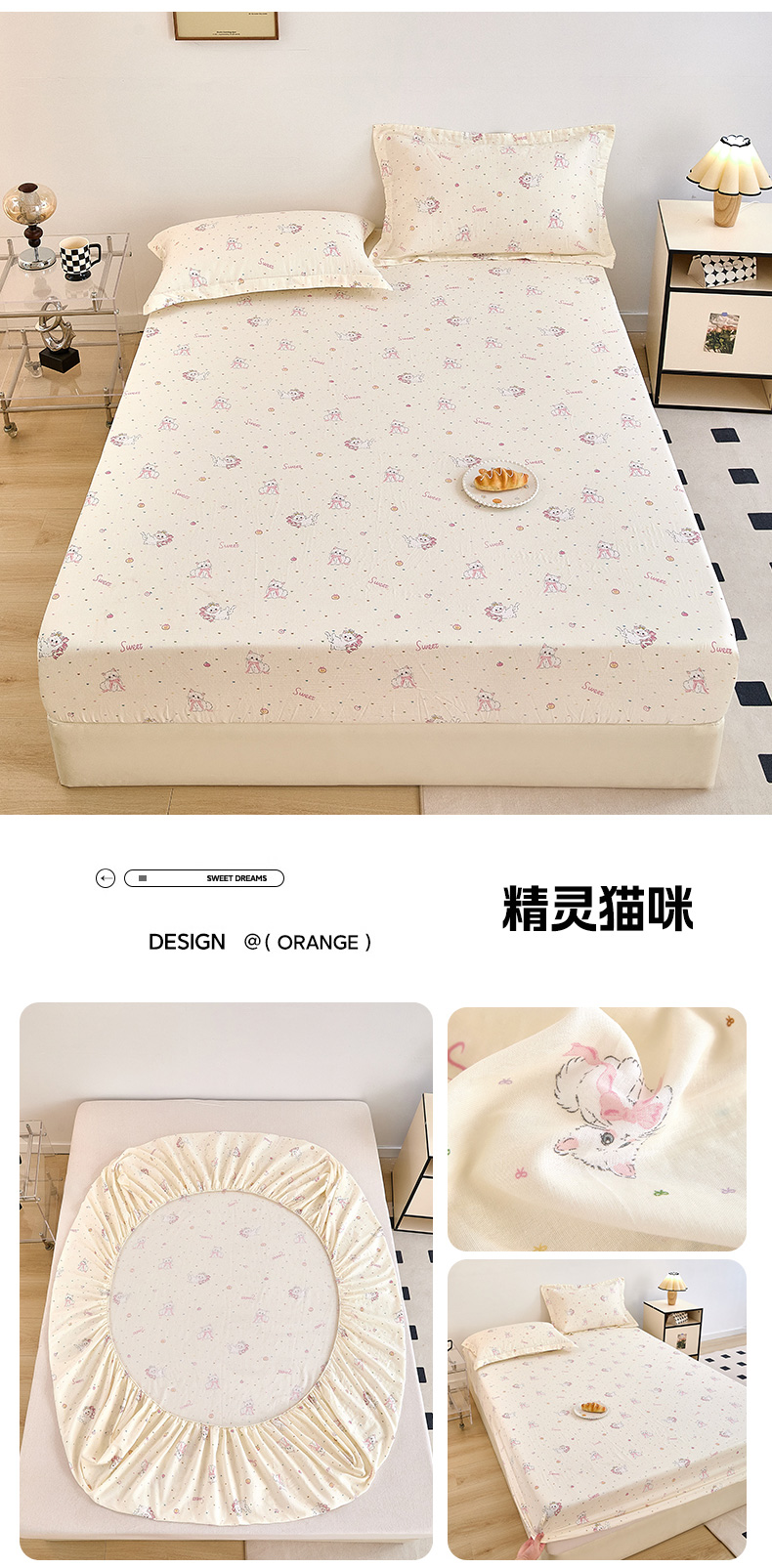• 91家纺网 家纺一手货源 找家纺 锦罗绣 2025新款全棉双层纱印花系列单床笠 精灵猫咪