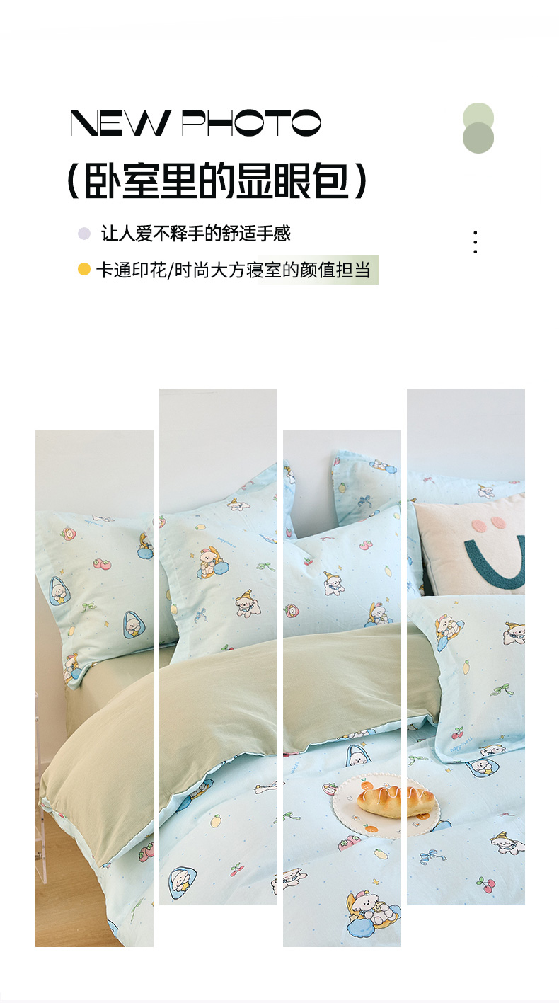 • 91家纺网 家纺一手货源 找家纺 锦罗绣 2025新款全棉双层纱印花单被套(第二批) 兔兔日记