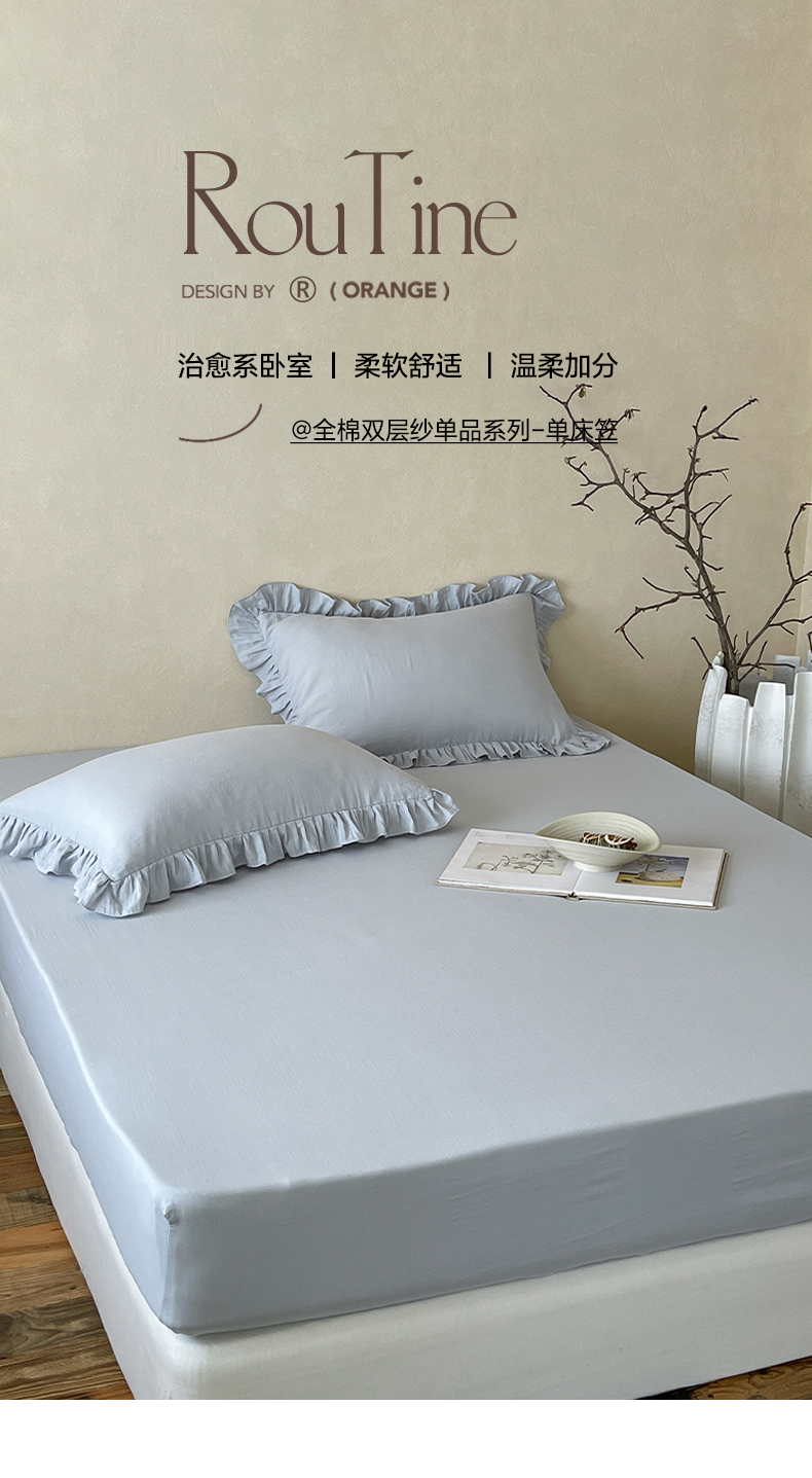 商品名称:三味舒屋 2025新款花边美学全棉双层纱单品单床笠 组合图仅供展示