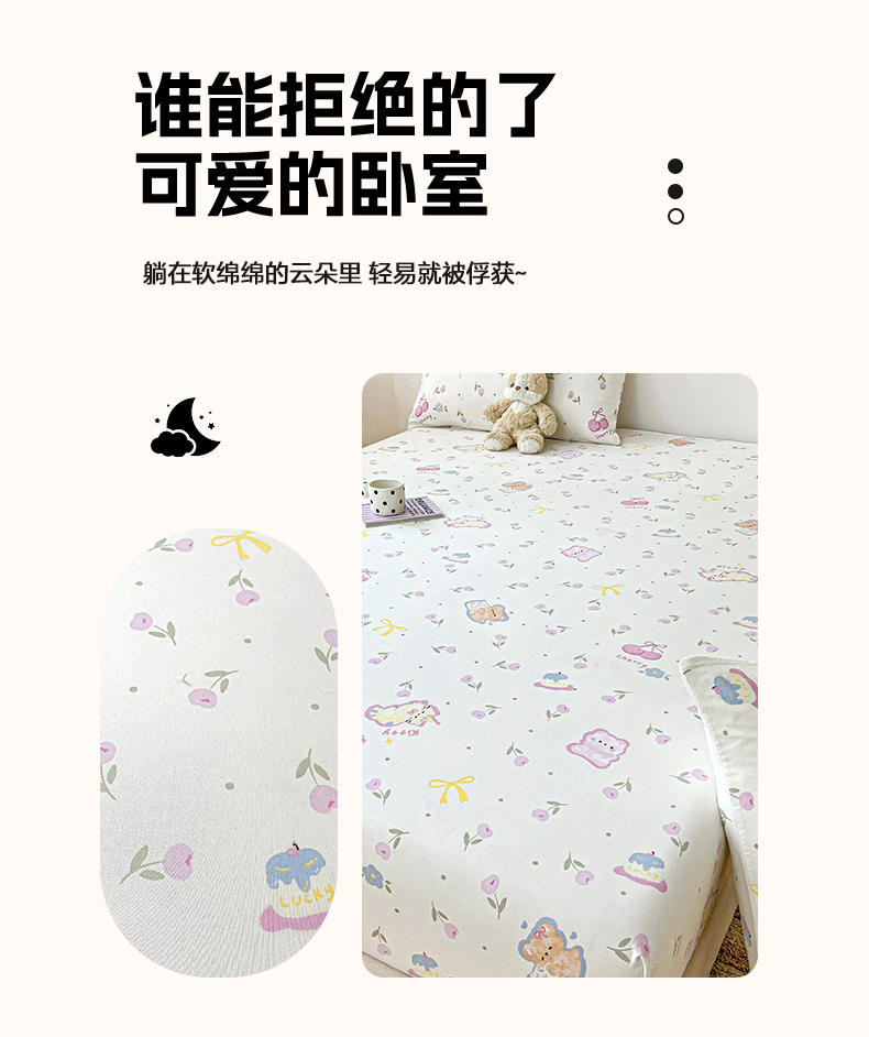 商品名称:盛秋家纺 2025新款A类水洗棉卡通印花床笠单品床笠单件单床笠 花满天