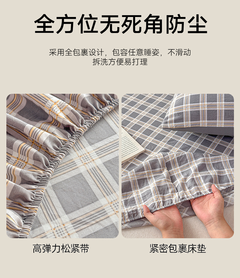 商品名称:(总)盛秋家纺 2025新款A类水洗棉格子印花床笠单品床笠单件单床笠