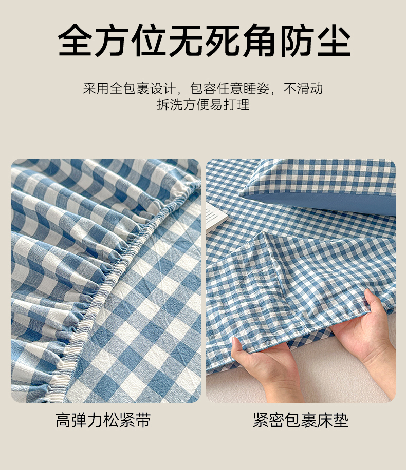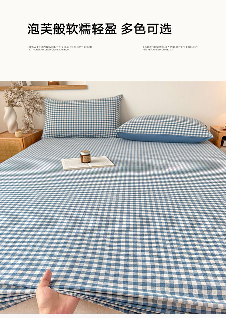 (总)盛秋家纺 2025新款A类水洗棉格子印花床笠单品床笠单件单床笠,蓝小格,保罗,组合图仅供展示,粉小格,格瑞斯,黑灰中条,灰大格,简约,蓝大格,蓝调,抹茶,泡芙黄,瑞克