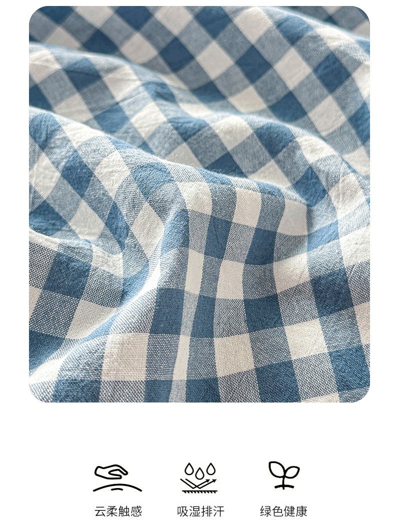 商品名称:盛秋家纺 2025新款A类水洗棉格子印花床笠单品床笠单件单床笠 蓝小格