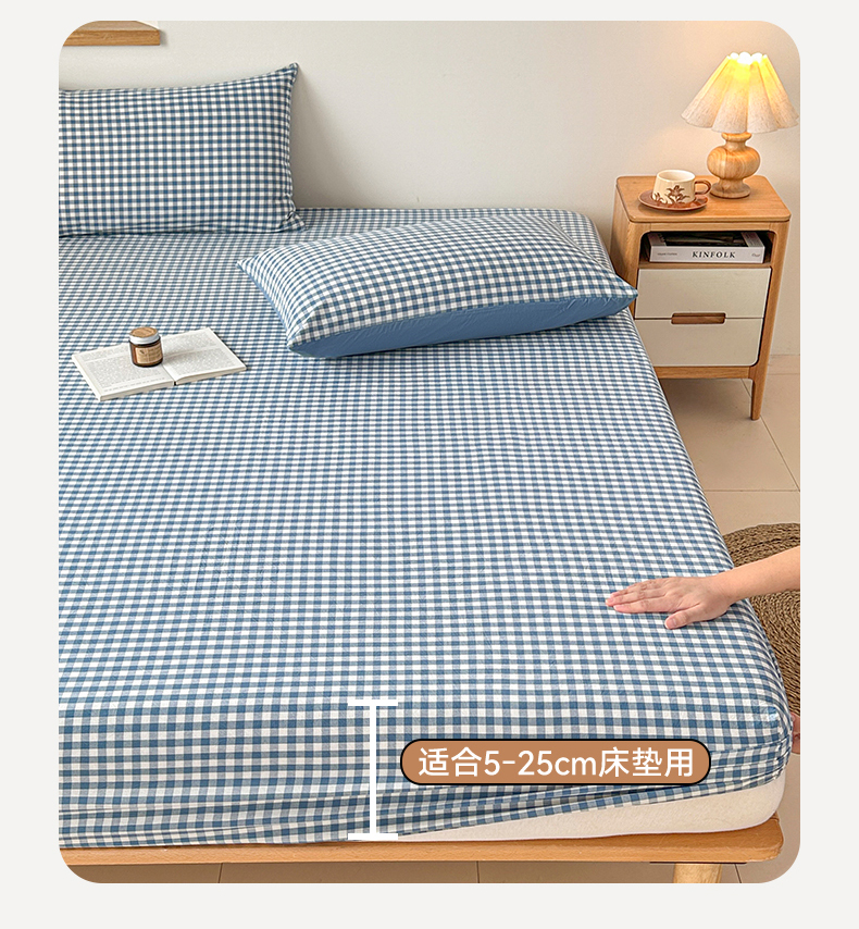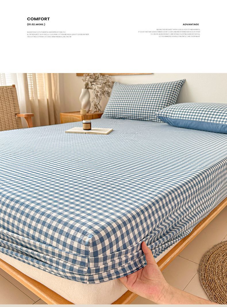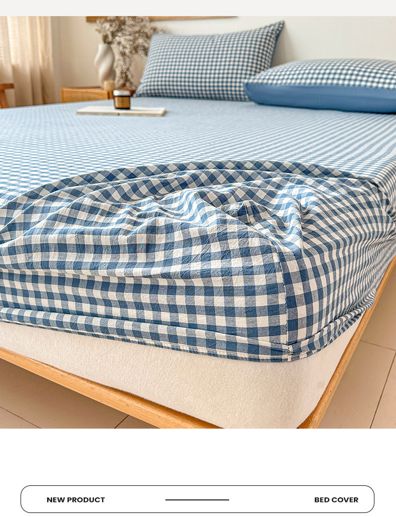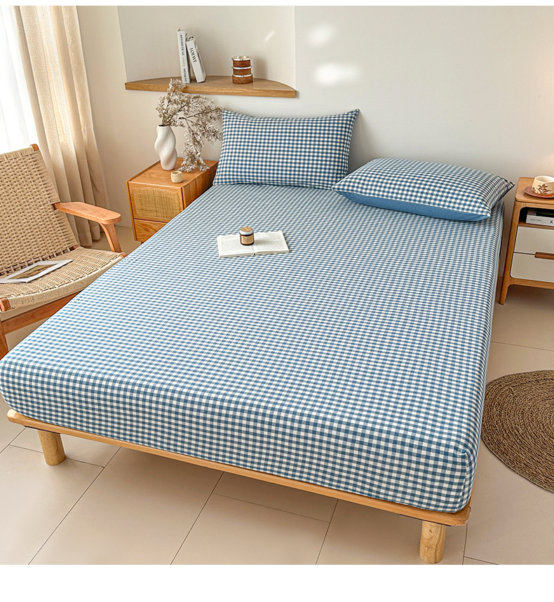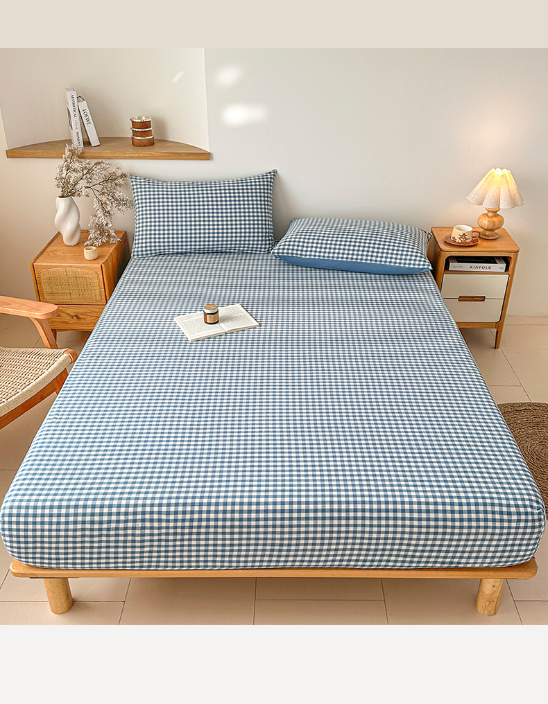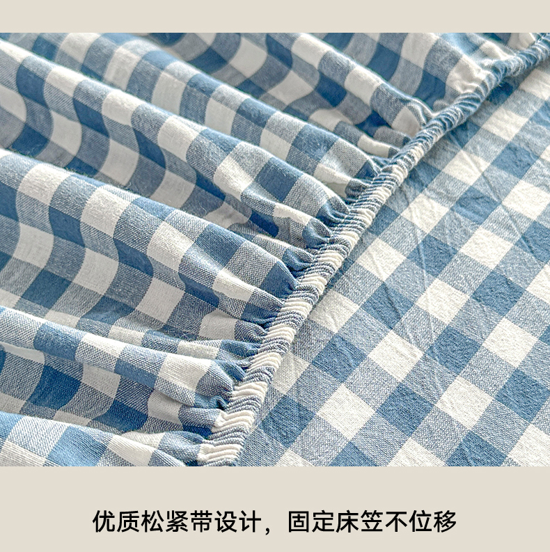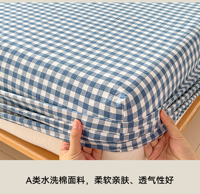 盛秋家纺 2025新款A类水洗棉格子印花床笠单品床笠单件单床笠 蓝小格
