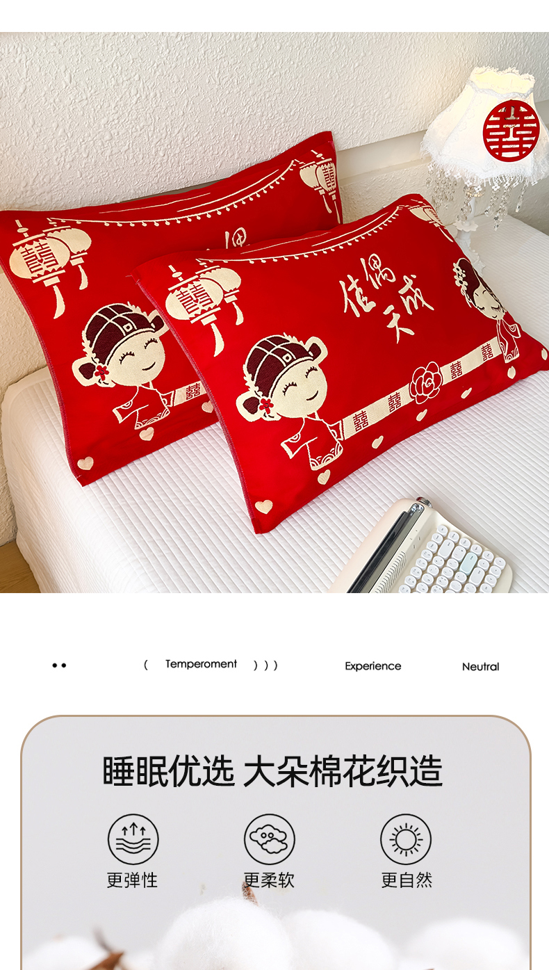 悦然毛巾被 2025新款悦然三层大红枕巾婚庆三层全棉纯棉纱布枕巾 佳偶天成 52x78cm枕巾一只