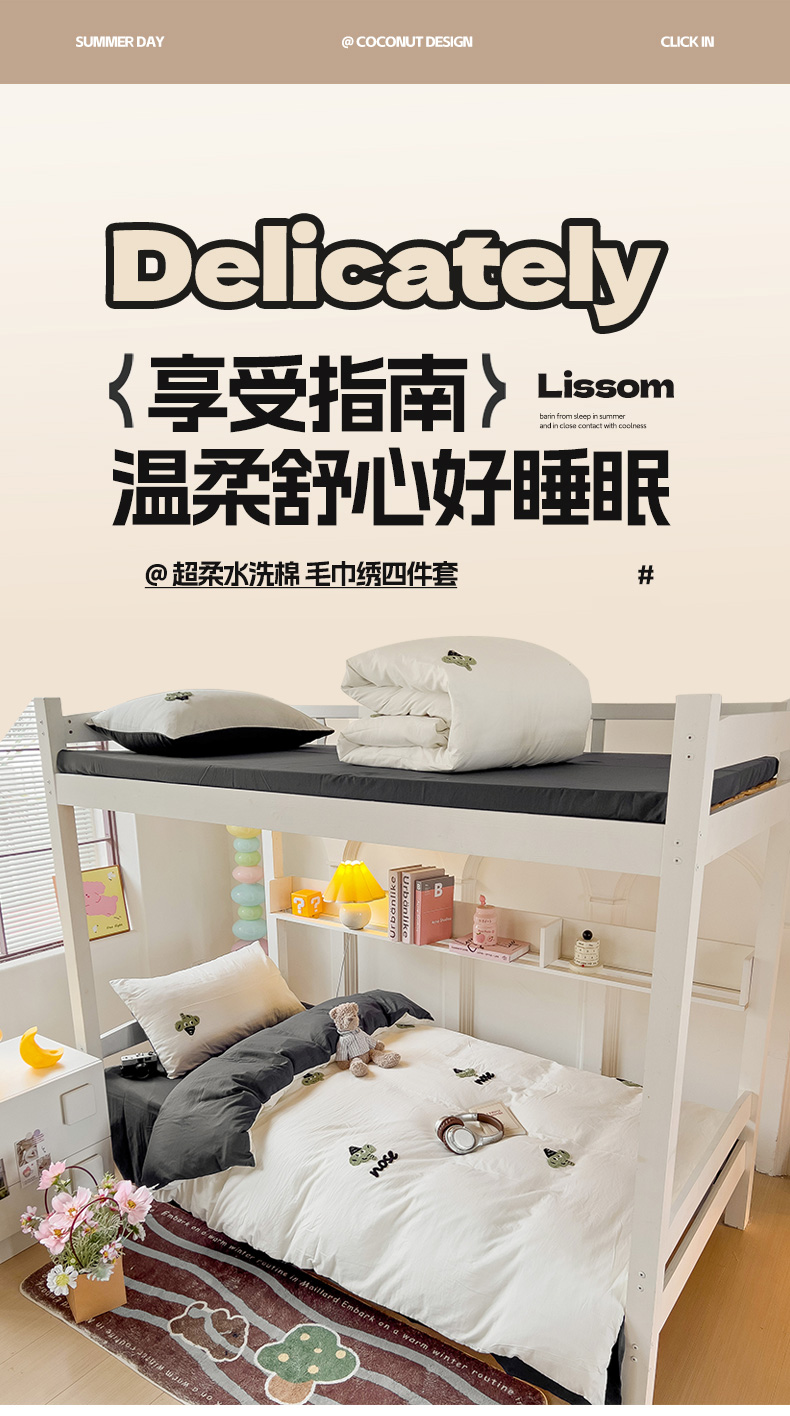 当前位置: 91家纺网 > 商品网购 > 床品套件 > 三件套 > 爱彼家纺 2025新款超柔水洗棉毛巾绣学生宿舍三件套上下铺三件套 白兰灰