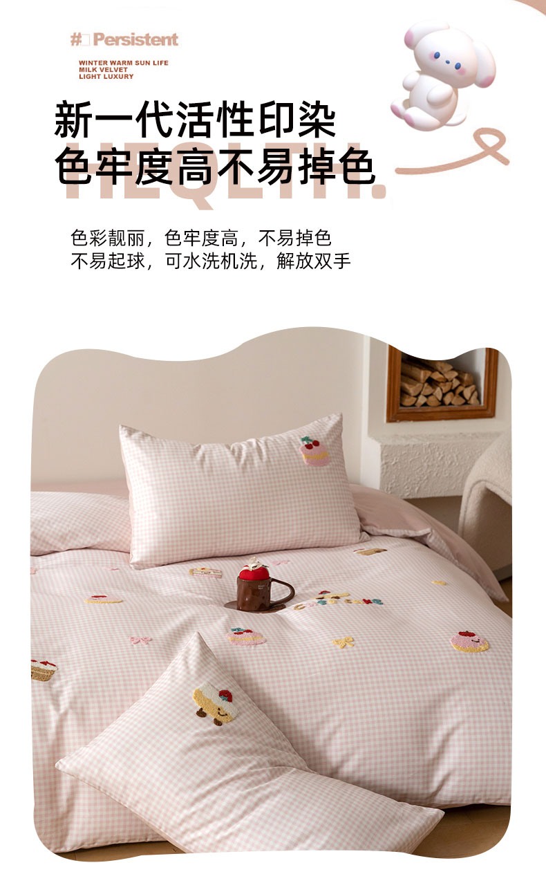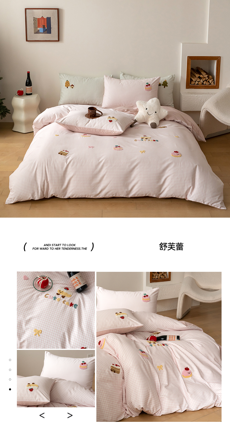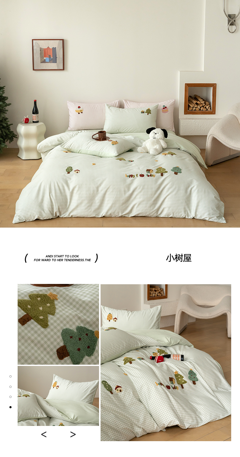 当前位置: 91家纺网 > 商品网购 > 床品套件 > 四件套 > 磨毛活性四件套 > FORTWO家纺原创设计(FOR TWO家纺) 2025新款50磨毛格子可爱卡通毛巾绣四件套 舒芙蕾