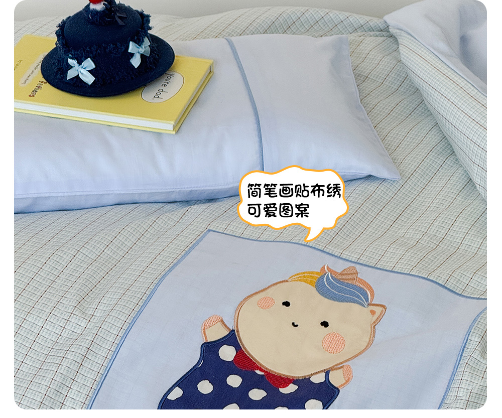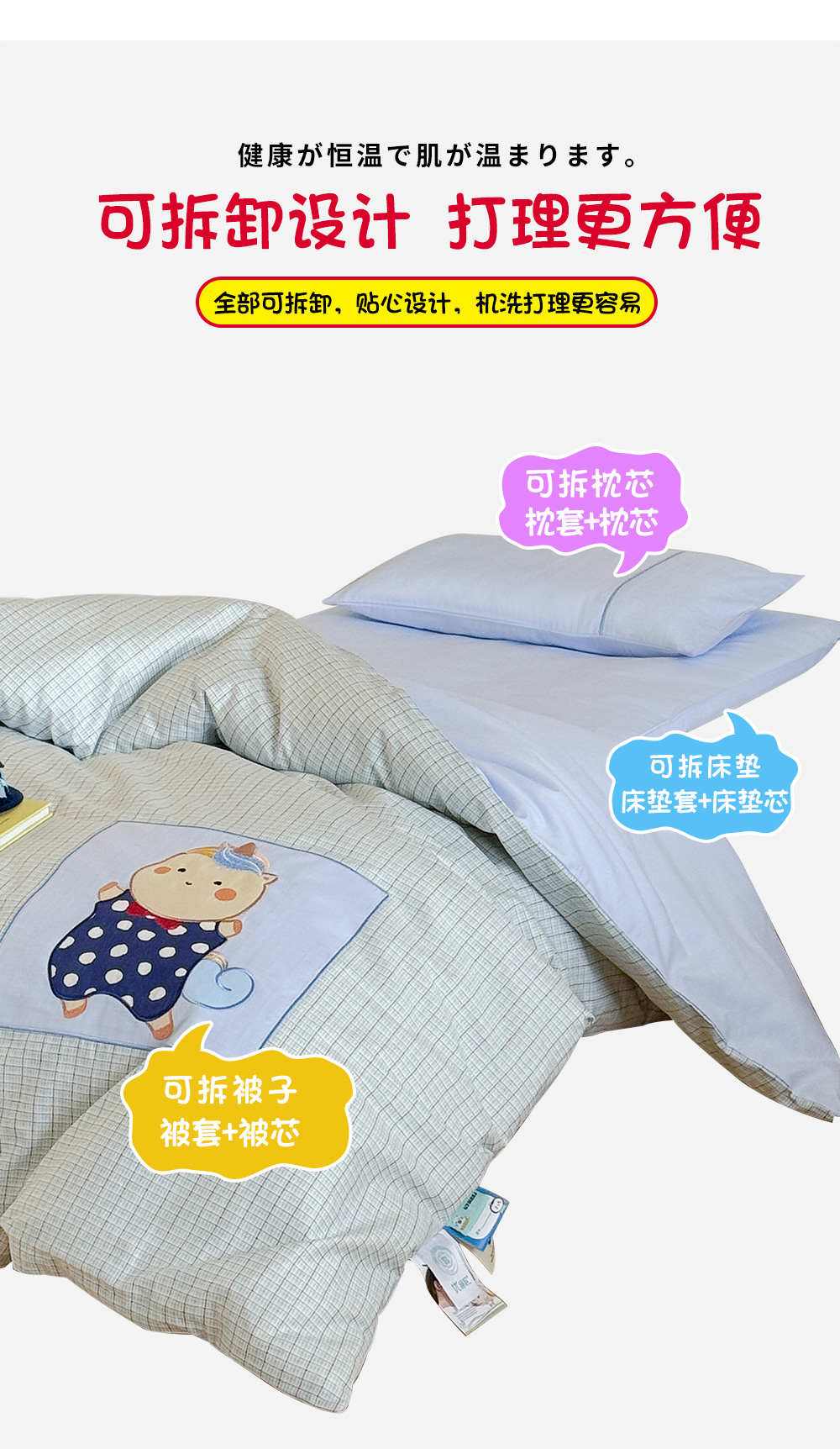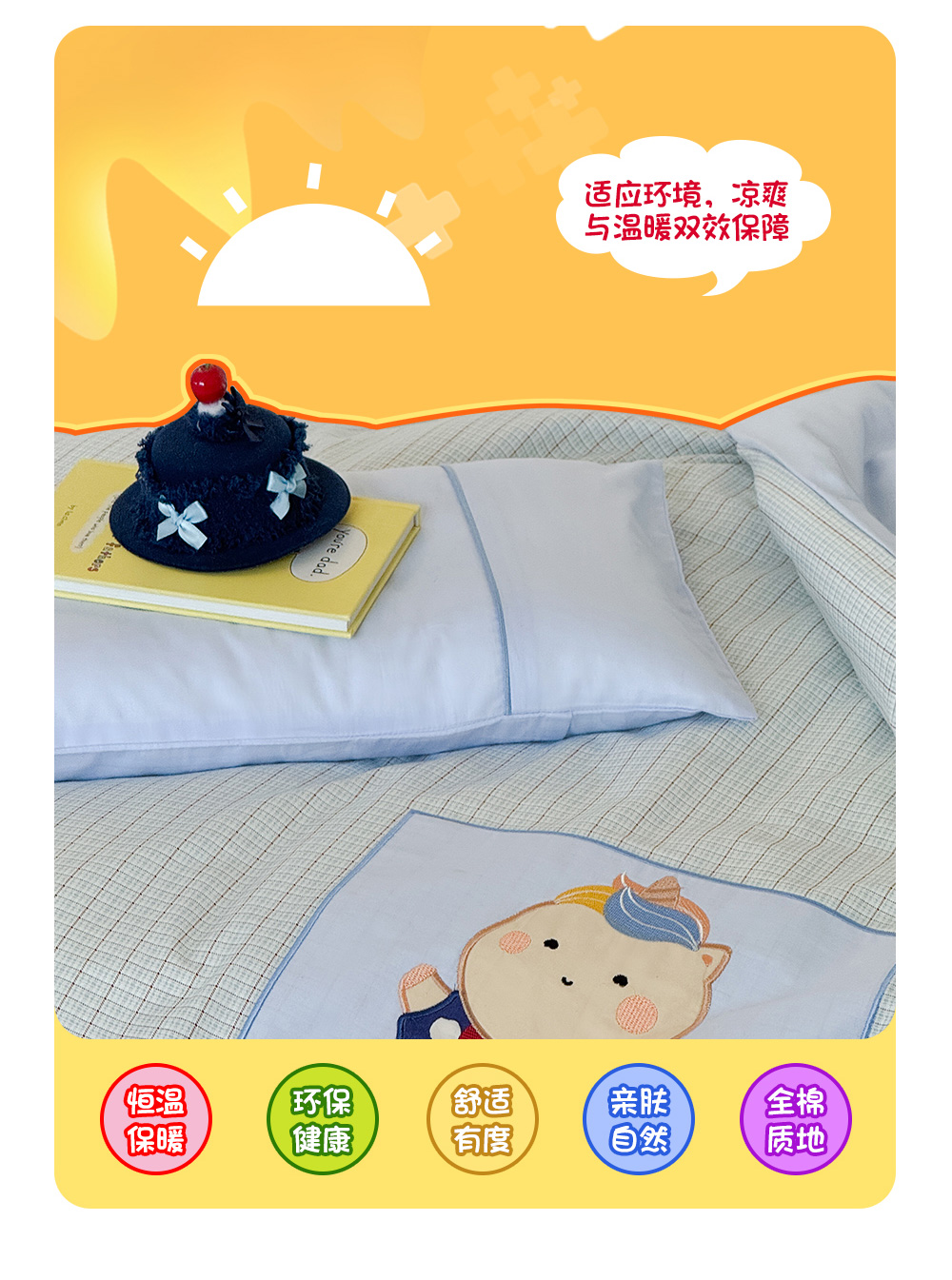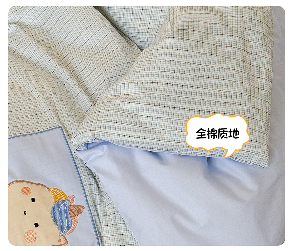 当前位置: 91家纺网 > 商品网购 > 床品套件 > 三件套 > 喜多兔儿童家纺 2025新款小美好13372纯棉绣花幼儿园被子三件套多件套 蓝色美好独角兽