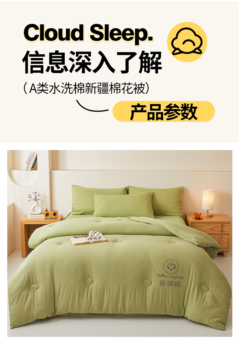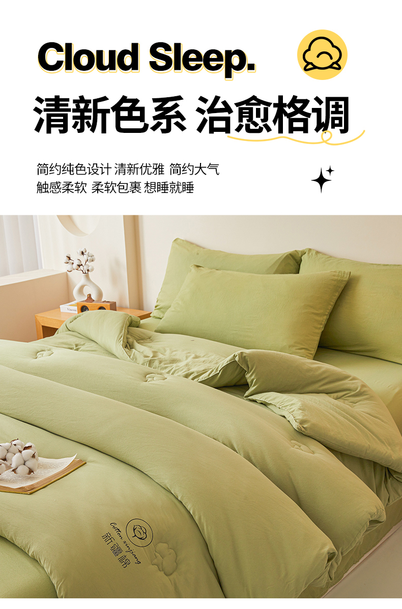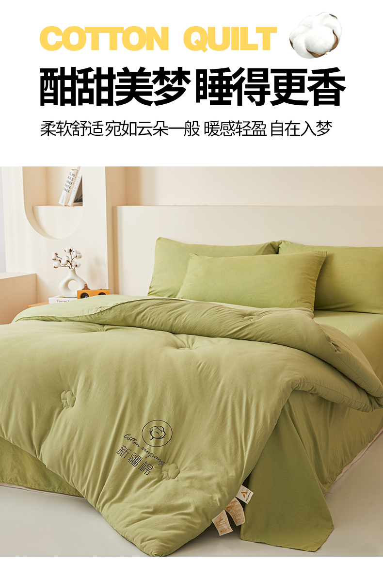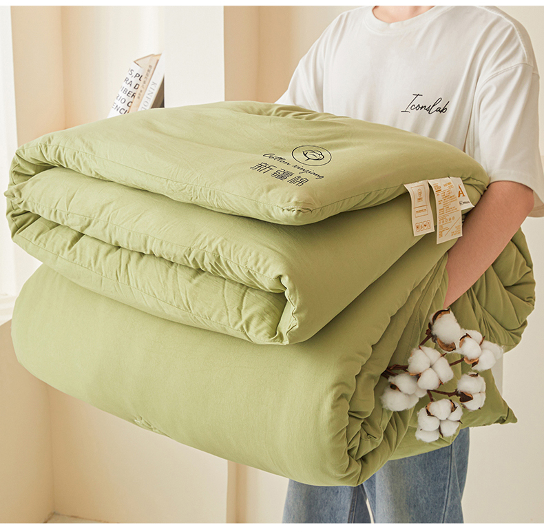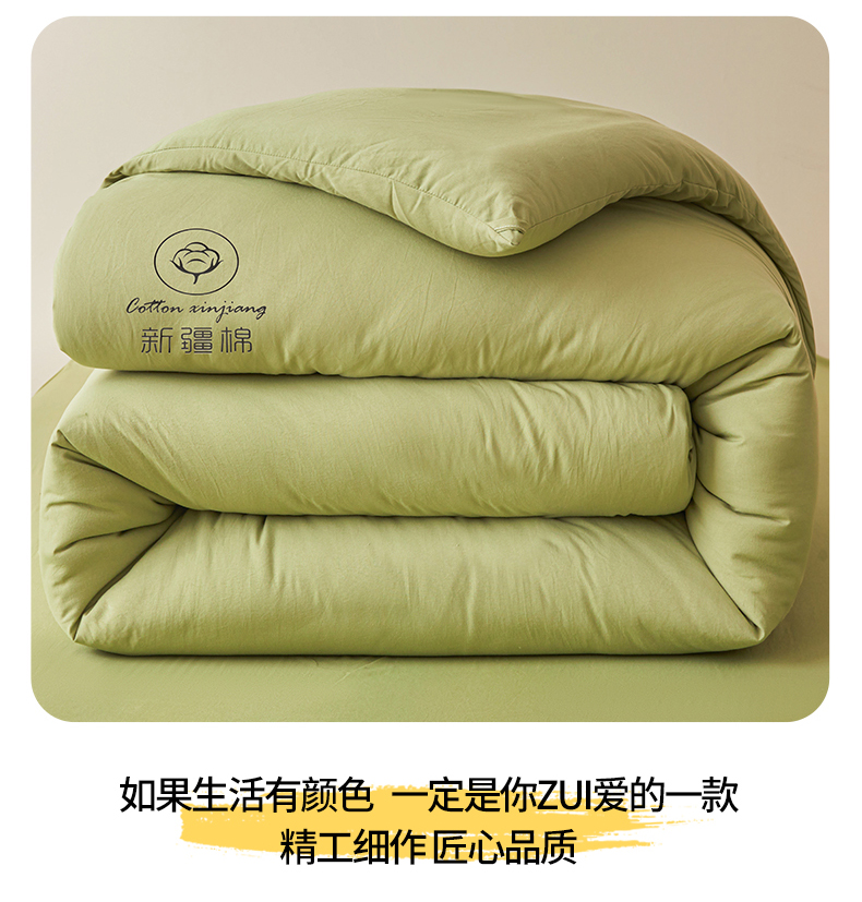 • 91家纺网 家纺一手货源 找家纺 晓时候 2025新款纯色无印风新疆棉花被冬被春秋被夏被四季被子被芯-常年有货(含买家秀) 抹茶绿