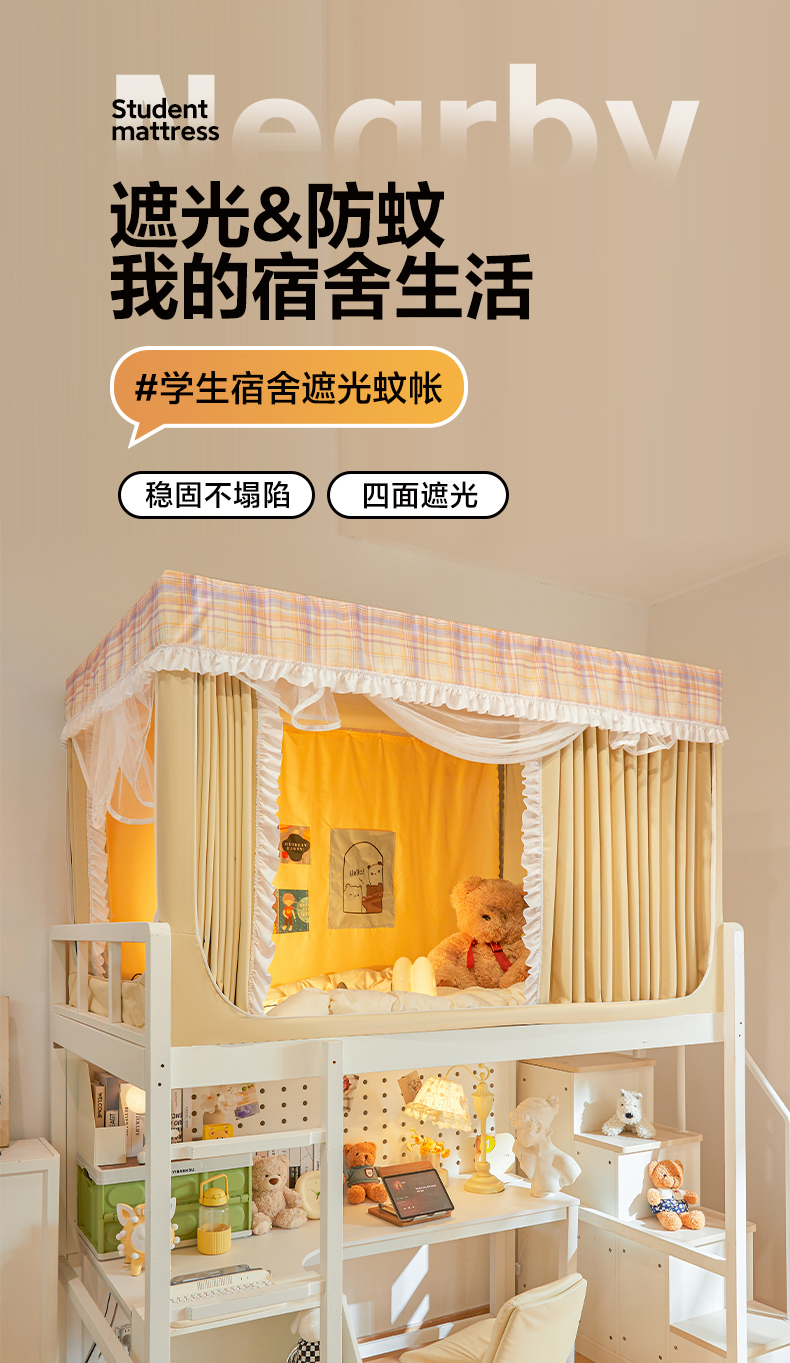 当前位置: 91家纺网 > 商品网购 > 床上用品 > 蚊帐 > 学生蚊帐 > 安金蚊帐 2025新款防蚊遮光一体99%强遮光宿舍上下铺遮光学生蚊帐格子花边 小香条格-黄