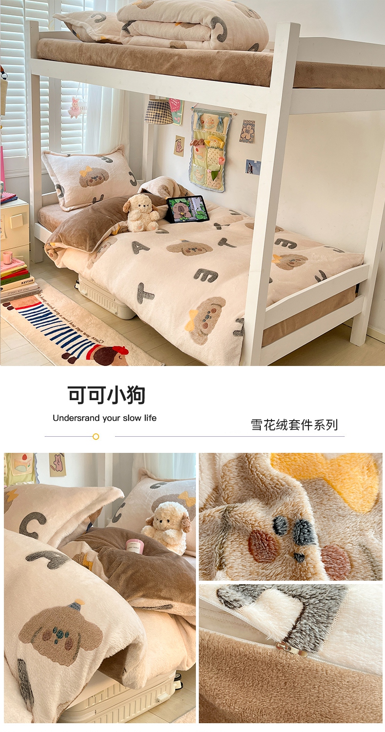 当前位置: 91家纺网 > 商品网购 > 床品套件 > 四件套 > 其它四件套 > 川悦生活 2025新款立体雪花绒印花四件套学生床系列一场景一 巧克力熊