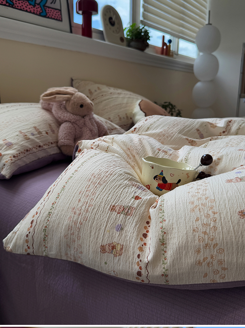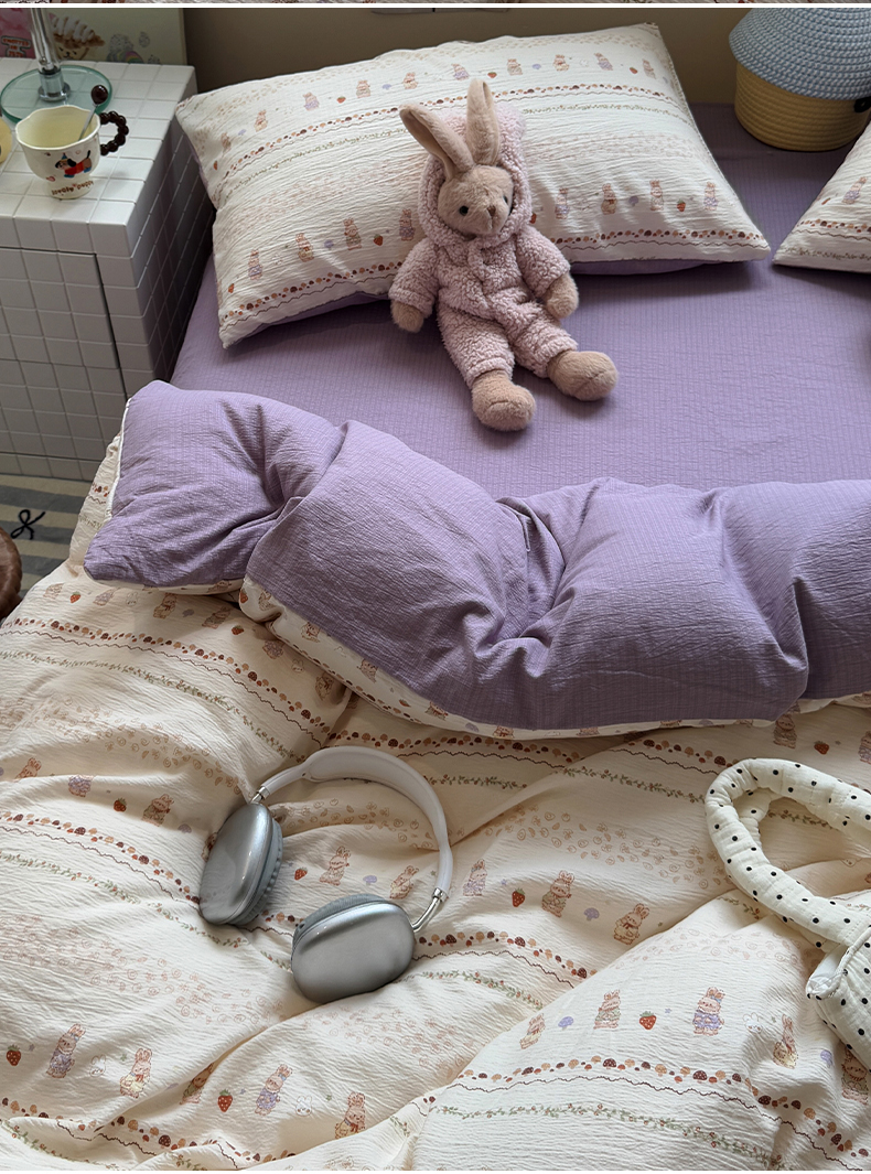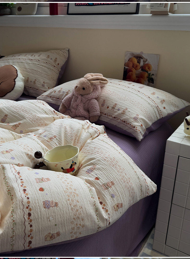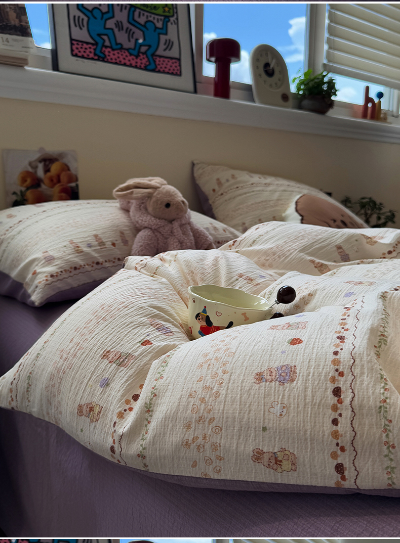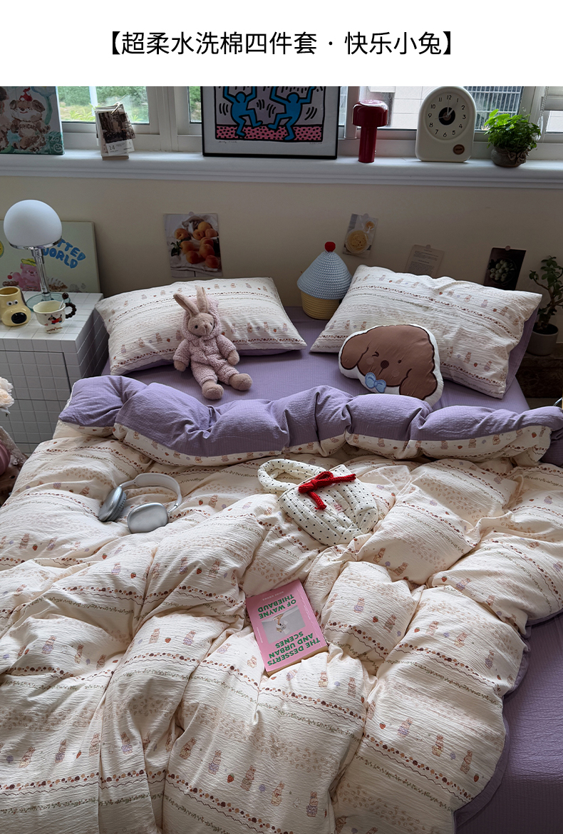 当前位置: 91家纺网 > 商品网购 > 床品套件 > 四件套 > 其它四件套 > 水墨江南 2025新款高克重云感双层纱印花四件套-场景二 快乐小兔