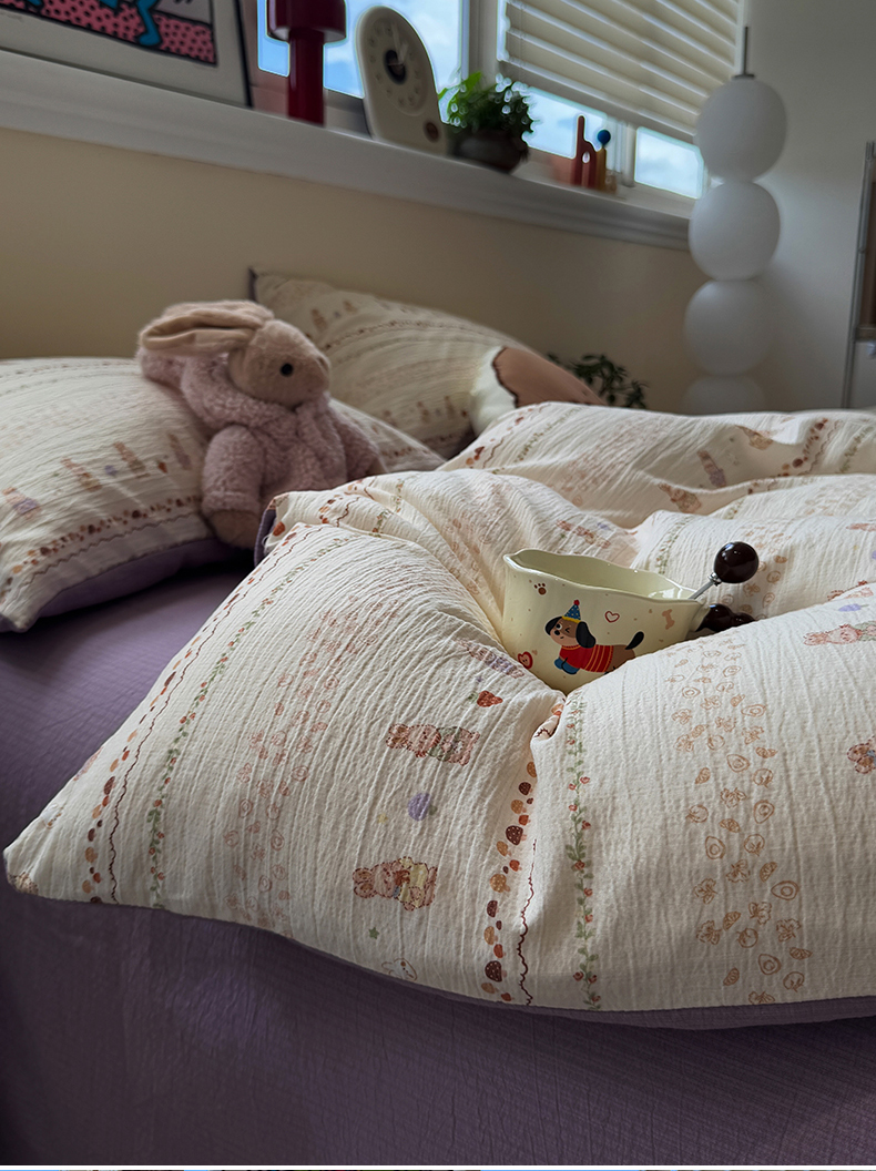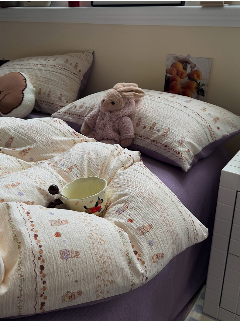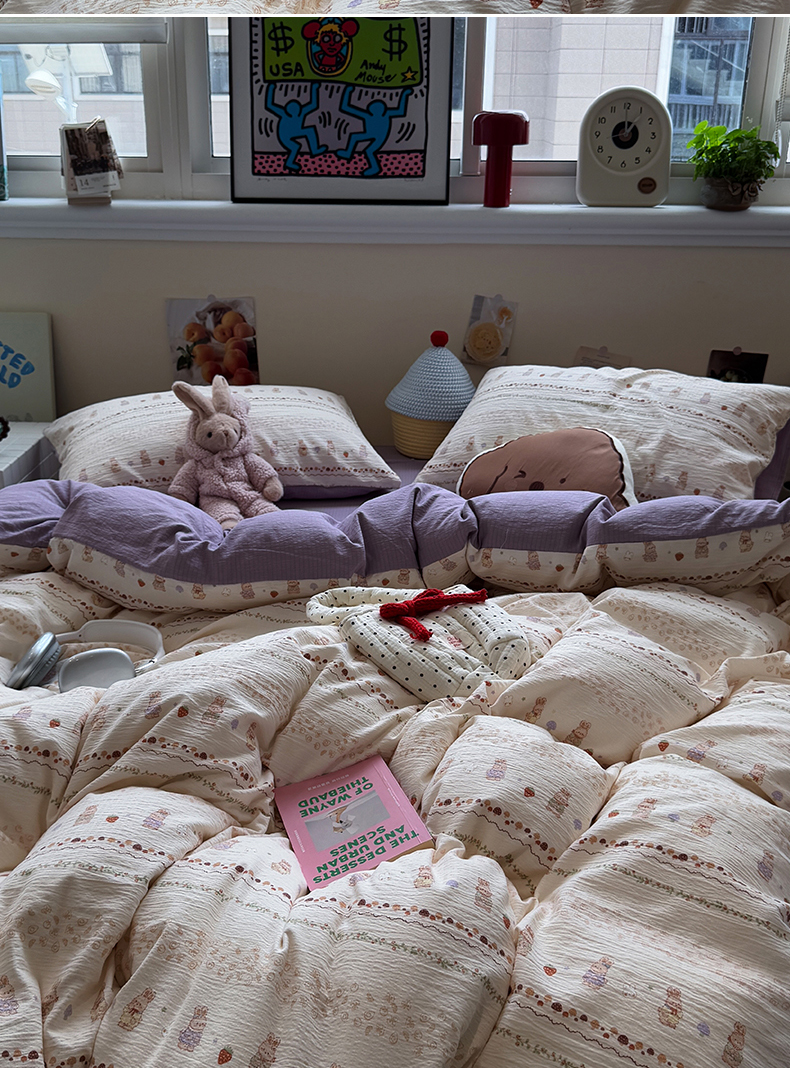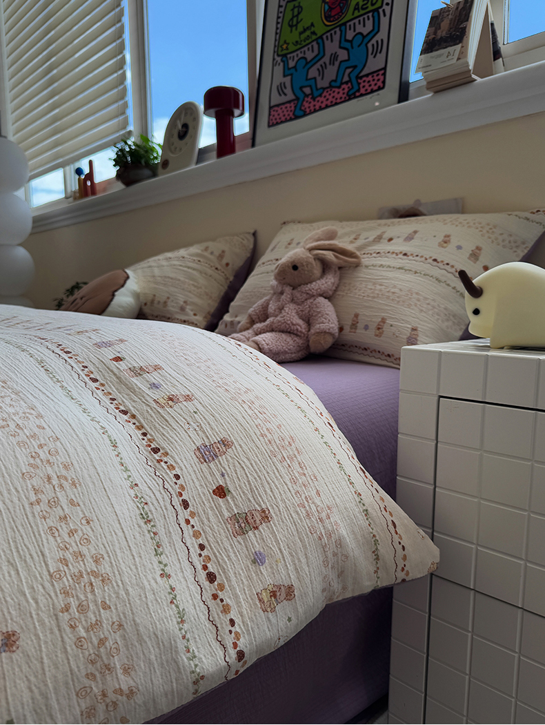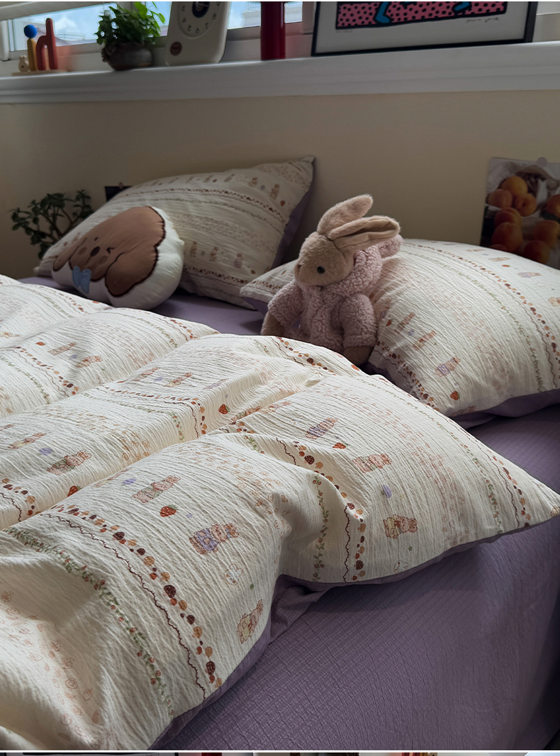 当前位置: 91家纺网 > 商品网购 > 床品套件 > 四件套 > 其它四件套 > 水墨江南 2025新款高克重云感双层纱印花四件套-场景二 快乐小兔