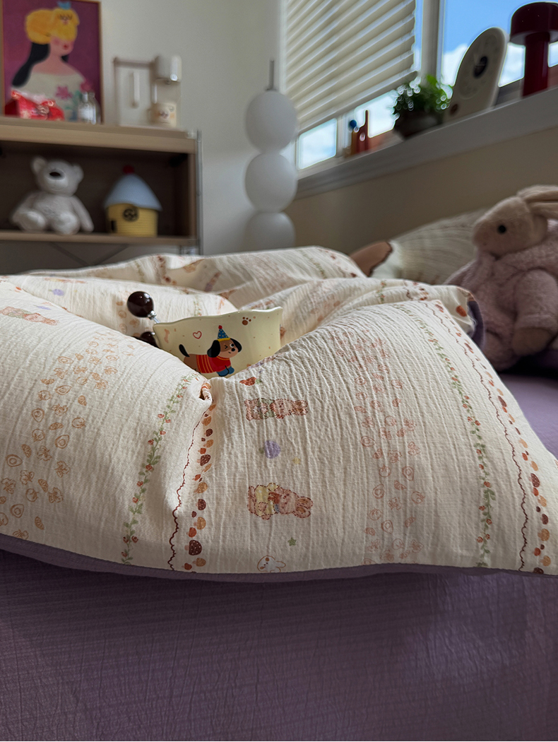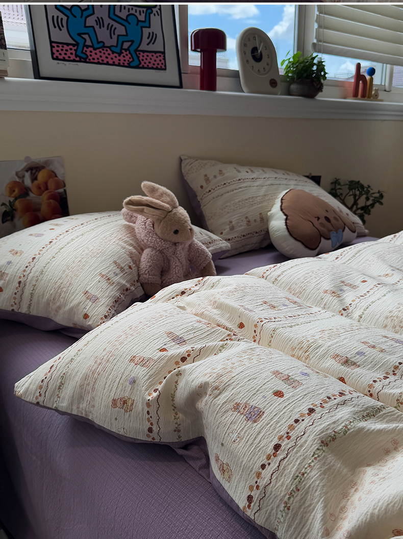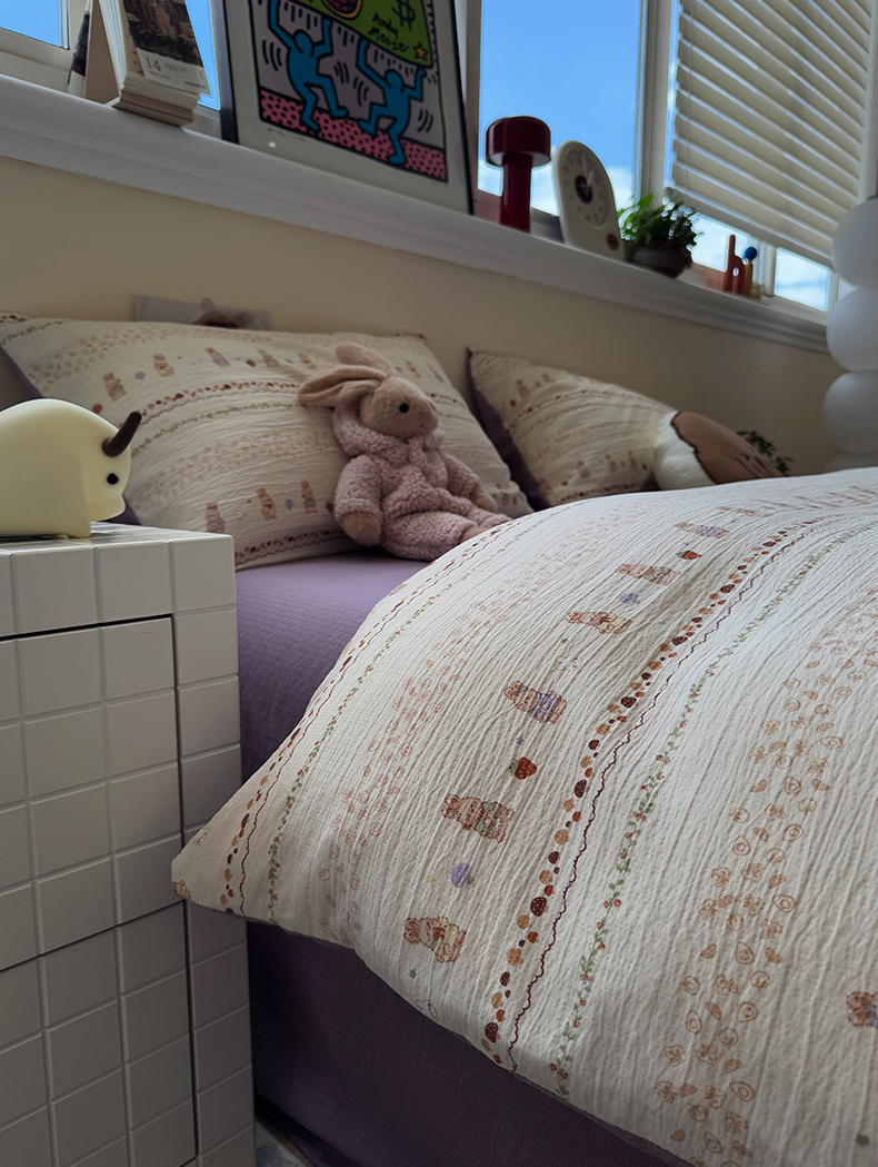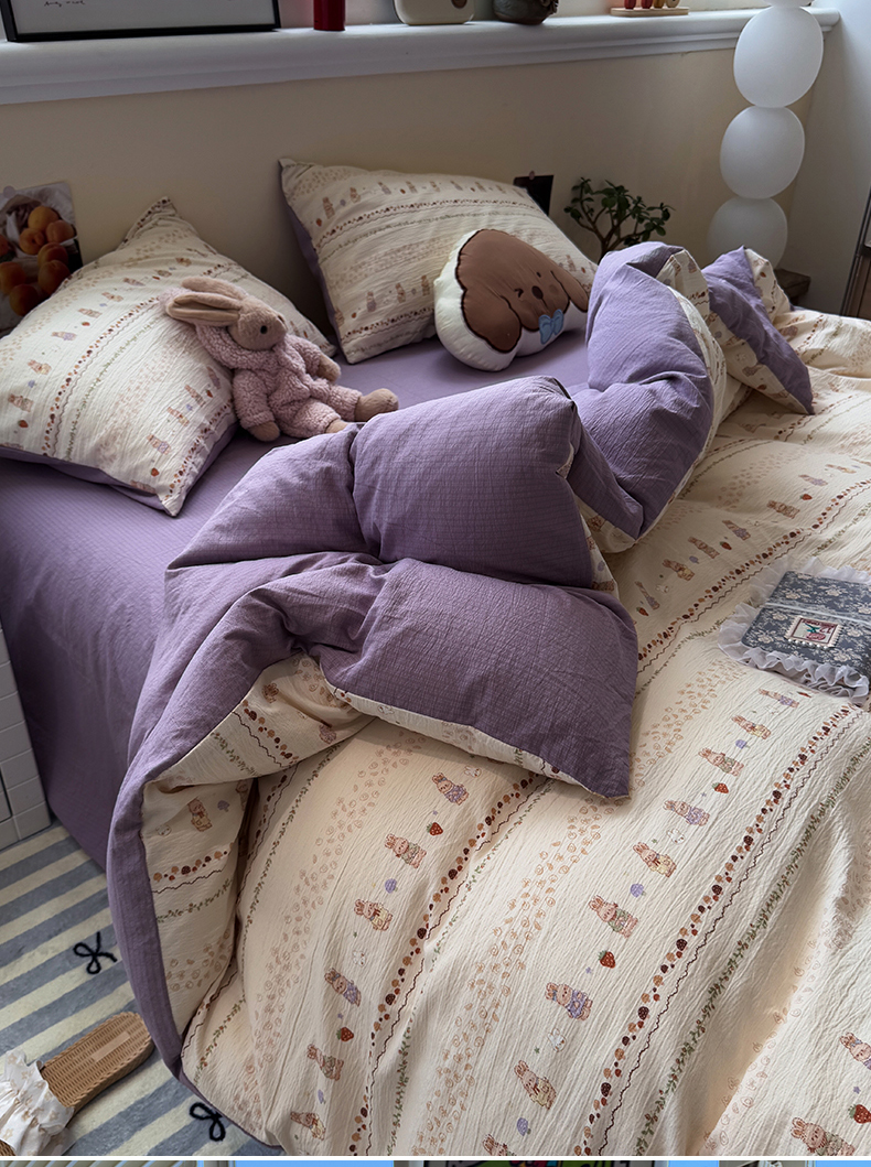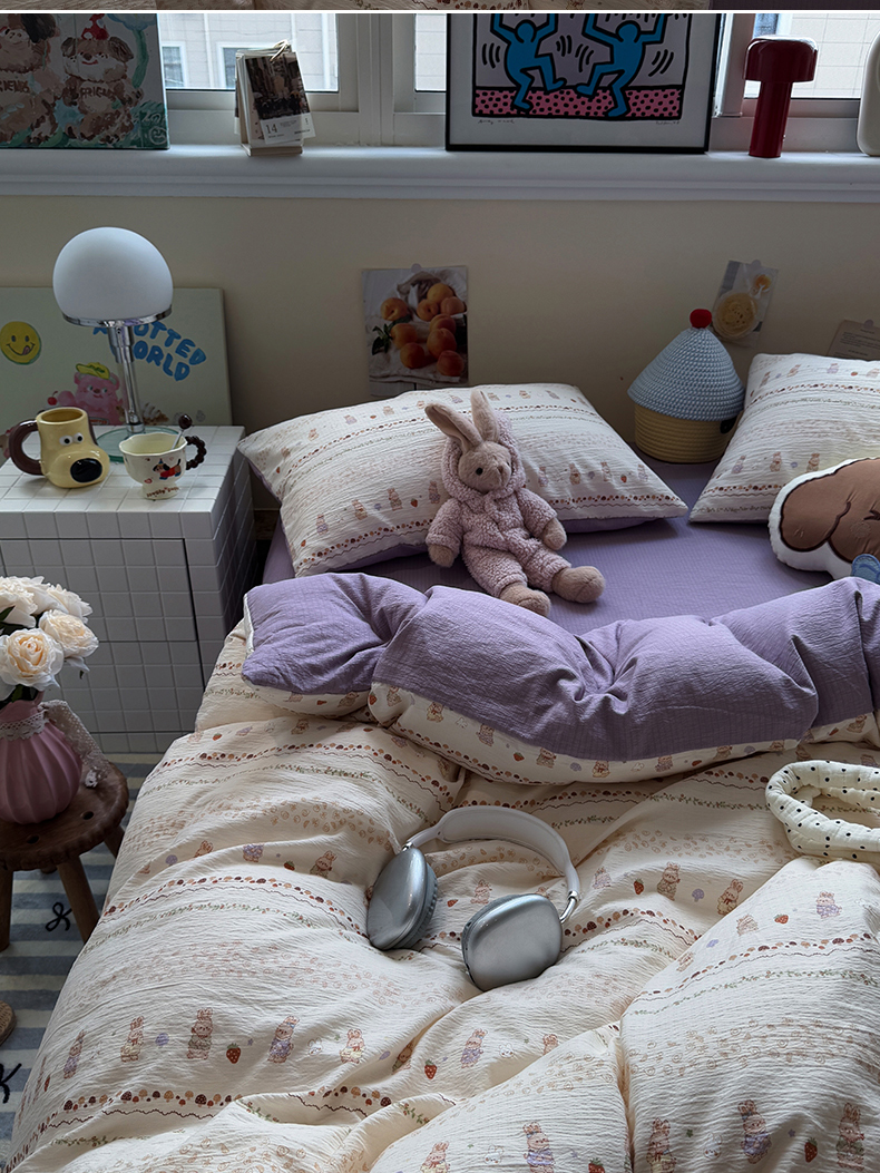 当前位置: 91家纺网 > 商品网购 > 床品套件 > 四件套 > 其它四件套 > 水墨江南 2025新款高克重云感双层纱印花四件套-场景二 快乐小兔
