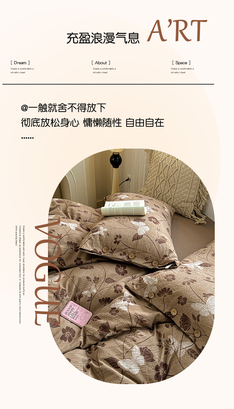 (总)水墨江南 2025新款小清新水洗棉印花四件套,豆蔻,格调,格子小狗,格子樱桃,海盐波点,花季,花田-粉,花田-蓝,假日小熊,山茶花,芋泥波点,紫色蝴蝶结