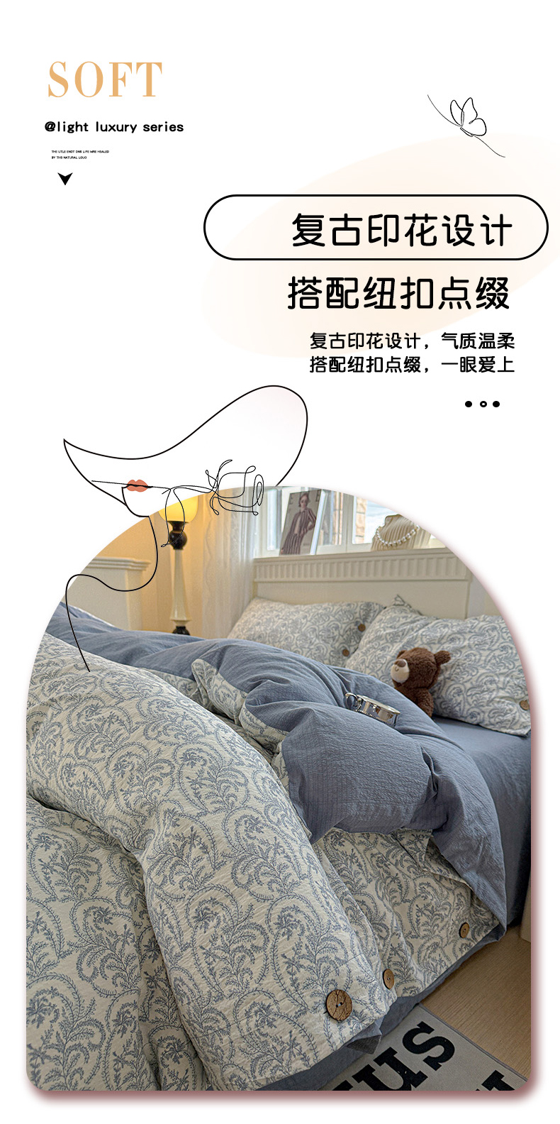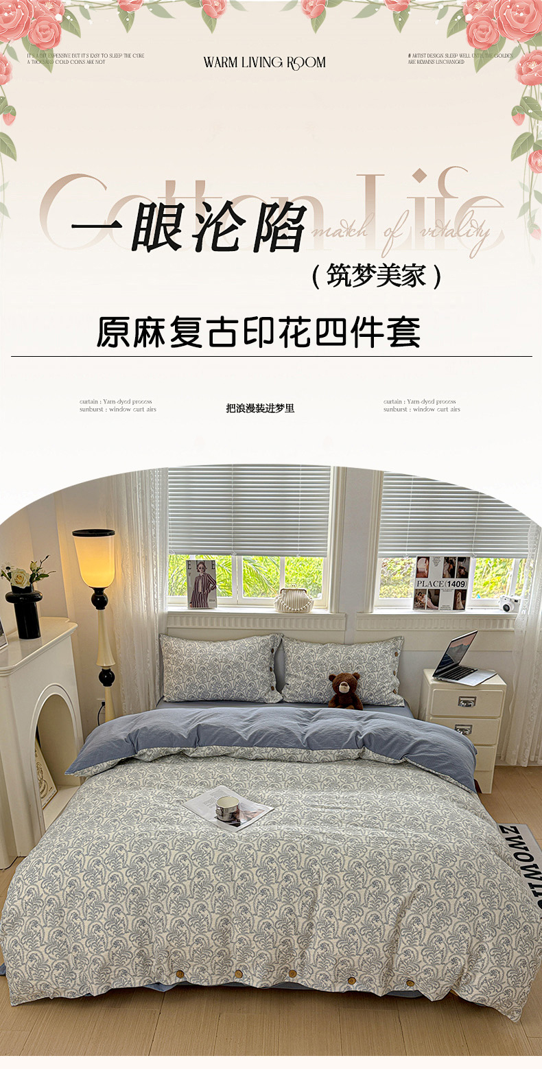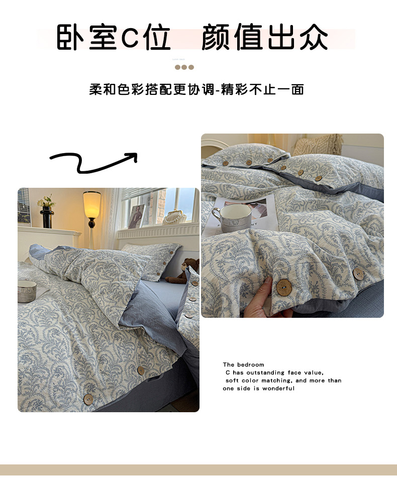 当前位置: 91家纺网 > 商品网购 > 床品套件 > 四件套 > 其它四件套 > 水墨江南 2025新款原麻复古印花纽扣款四件套 青黛