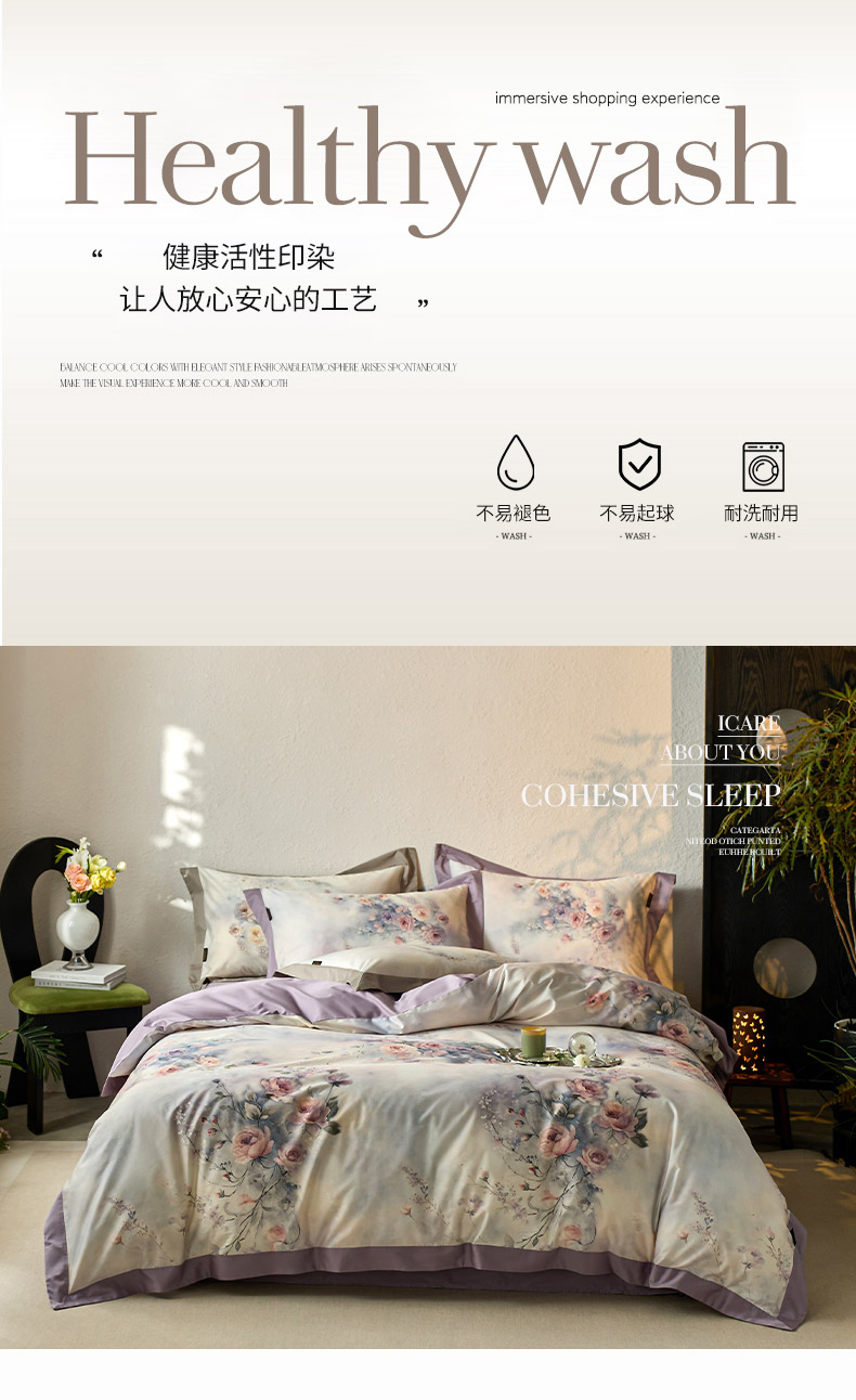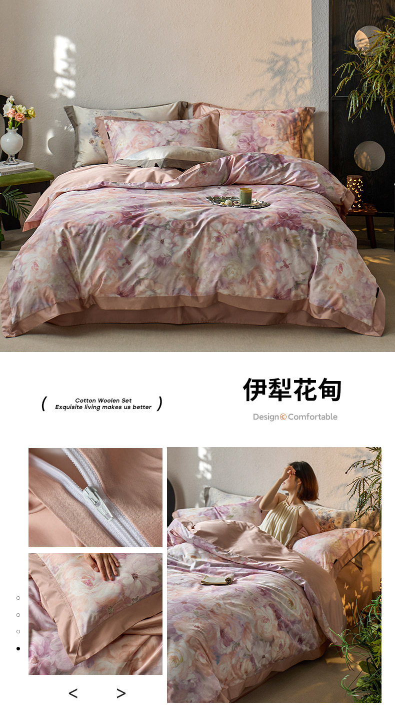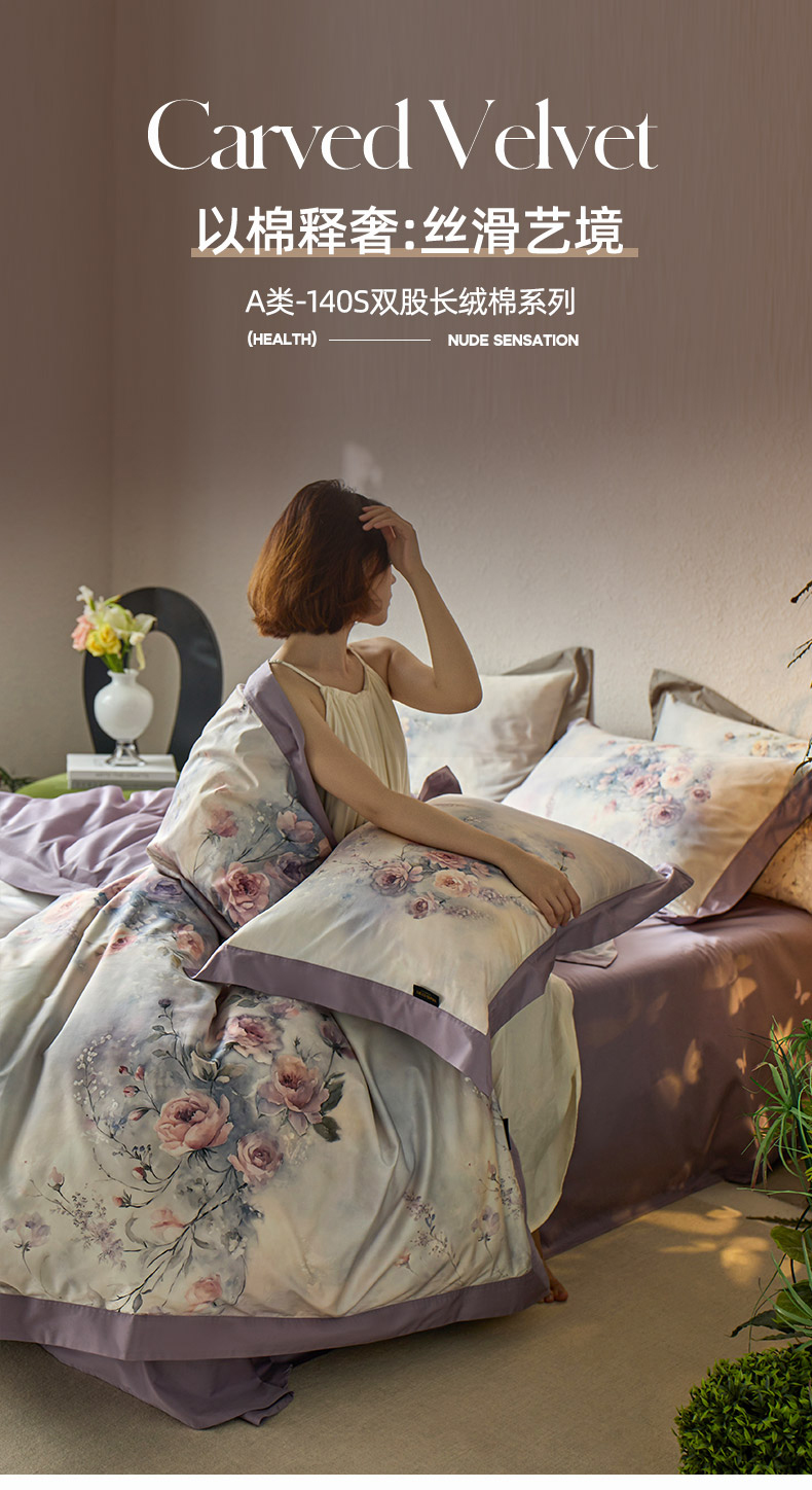 当前位置: 91家纺网 > 商品网购 > 床品套件 > 四件套 > 长绒棉四件套 > 轩和家居 2025新款轻奢A类70S长绒棉纯棉印花四件套-第三组 漫步花庭
