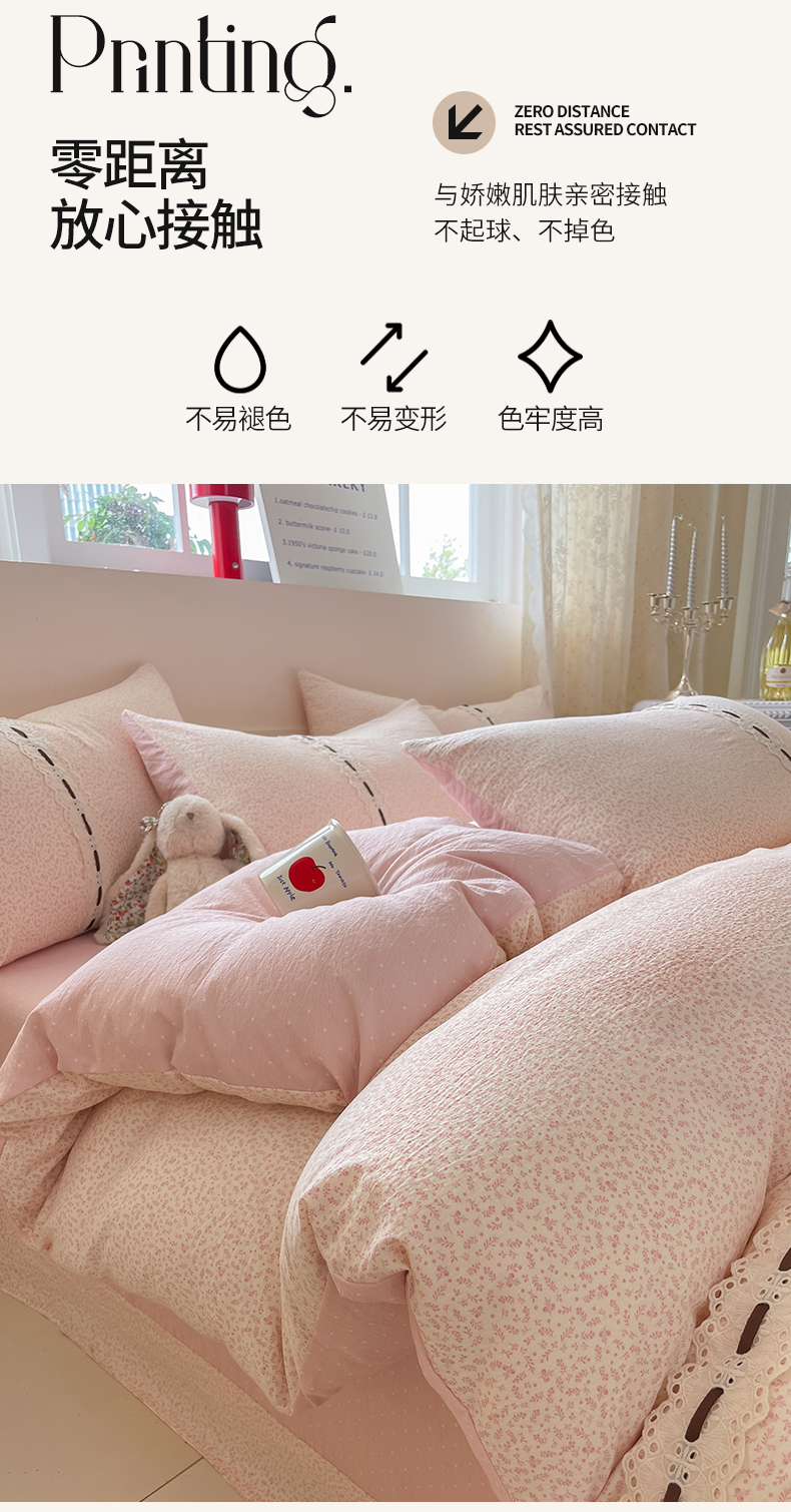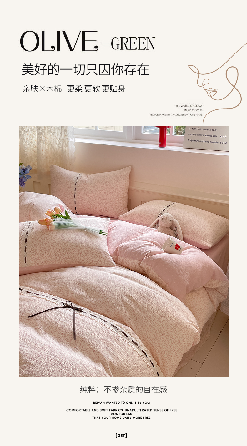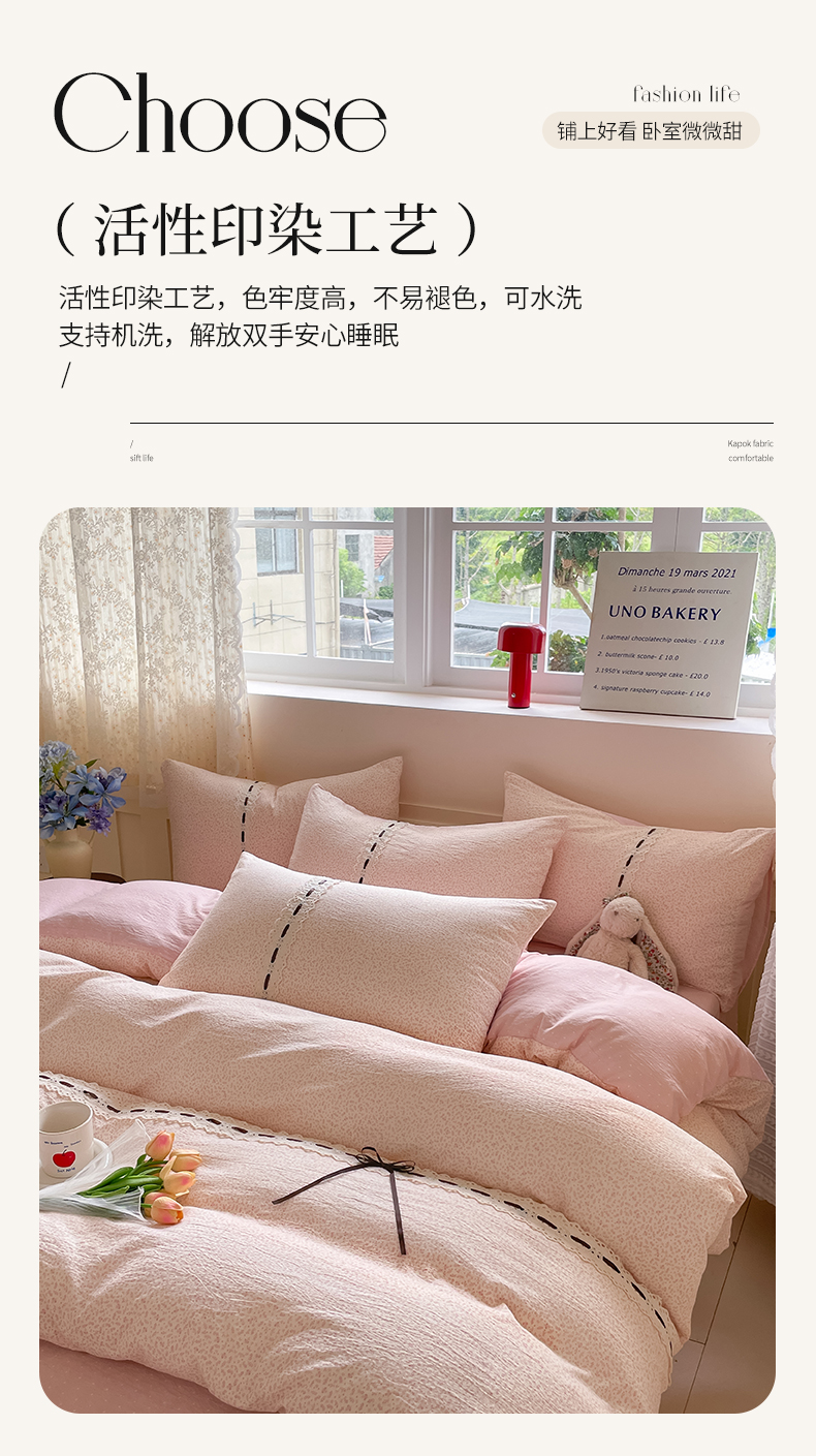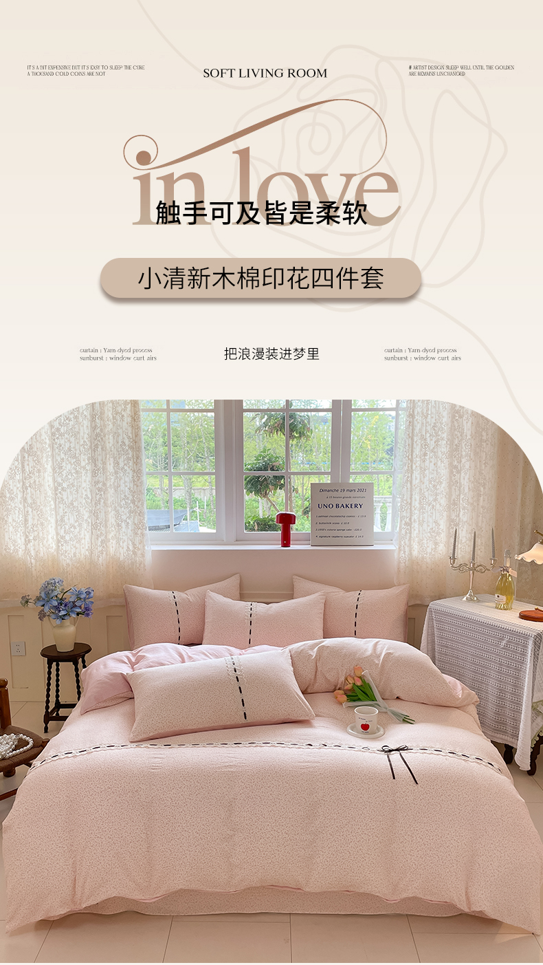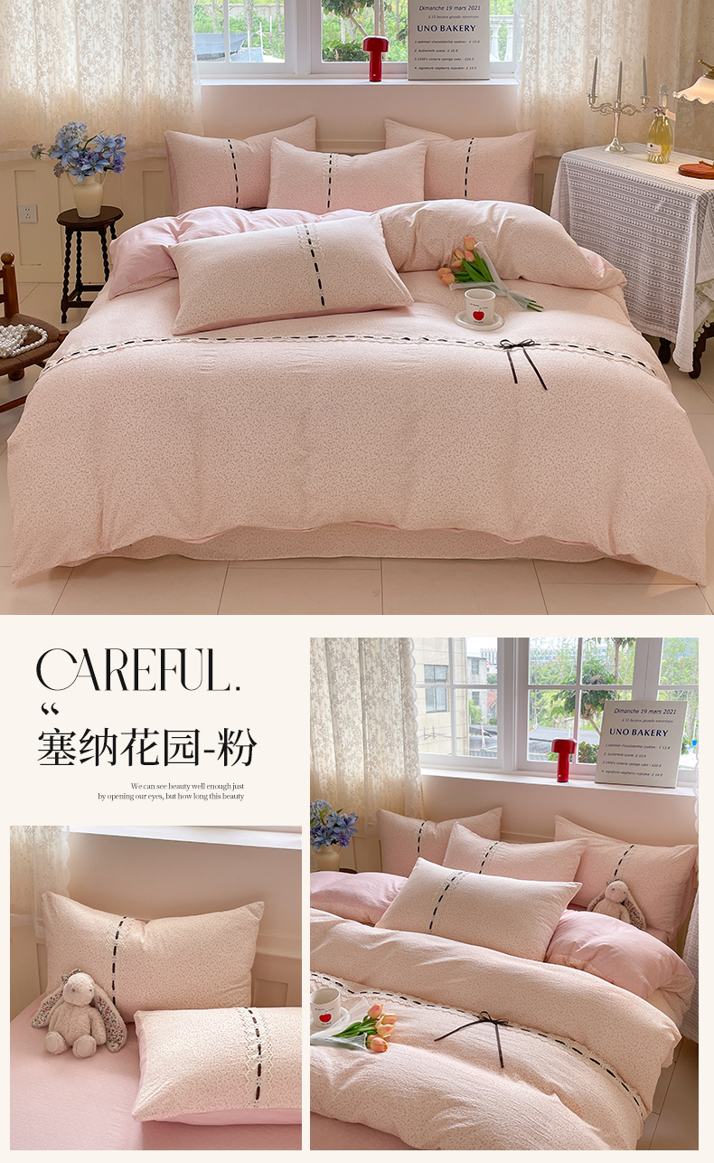 当前位置: 91家纺网 > 商品网购 > 床品套件 > 四件套 > 其它四件套 > 韩后家纺 2025新款木棉印花四件套 塞纳花园-粉