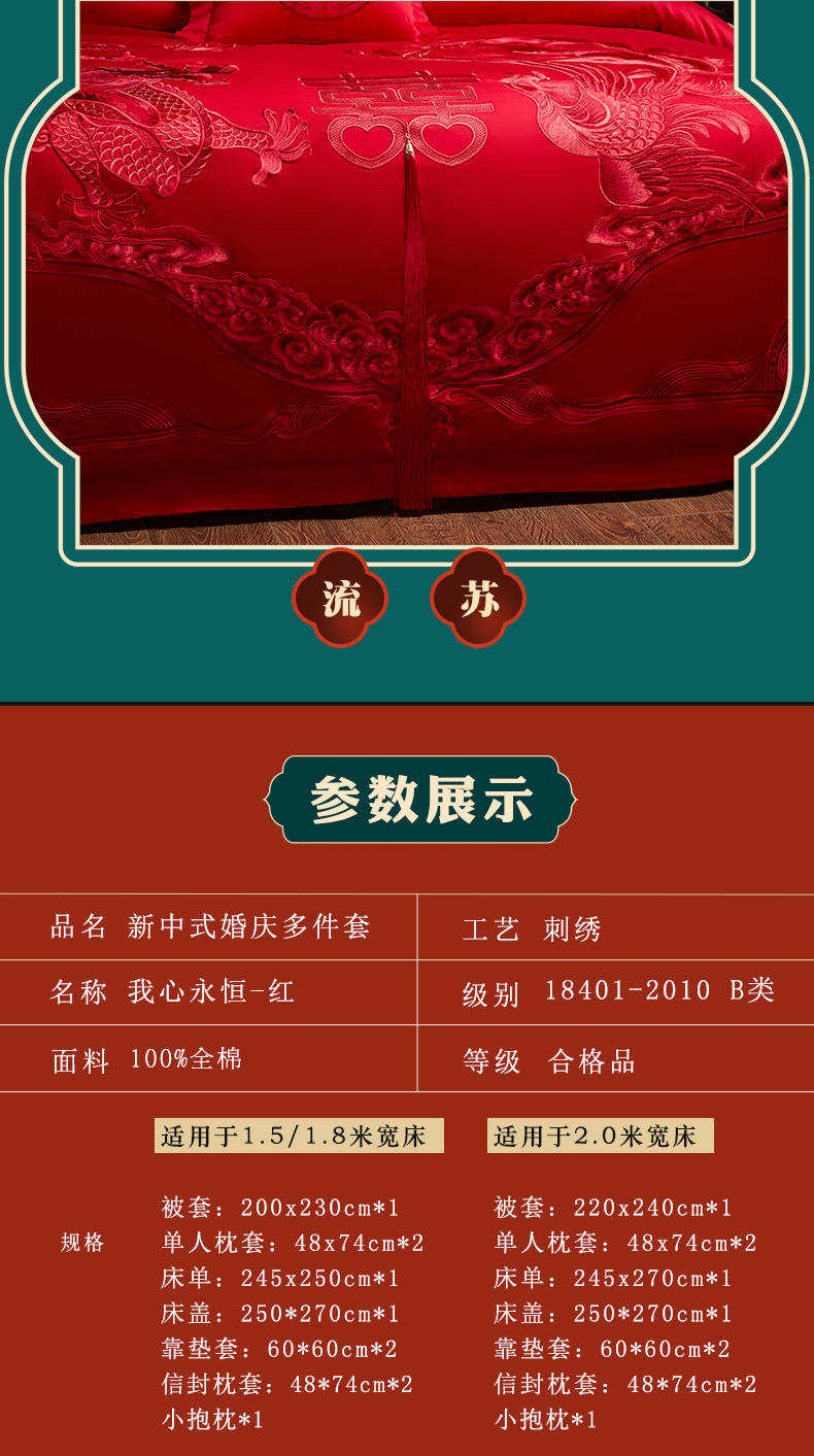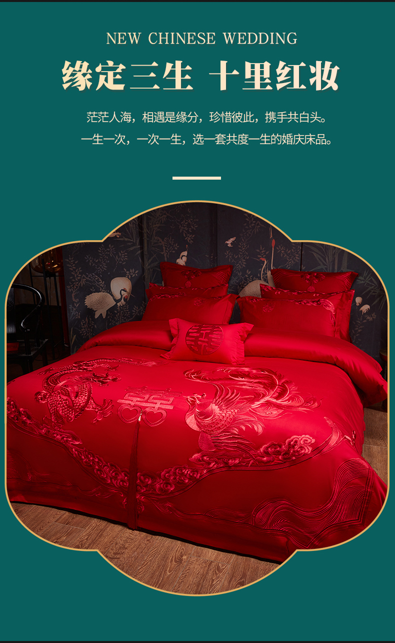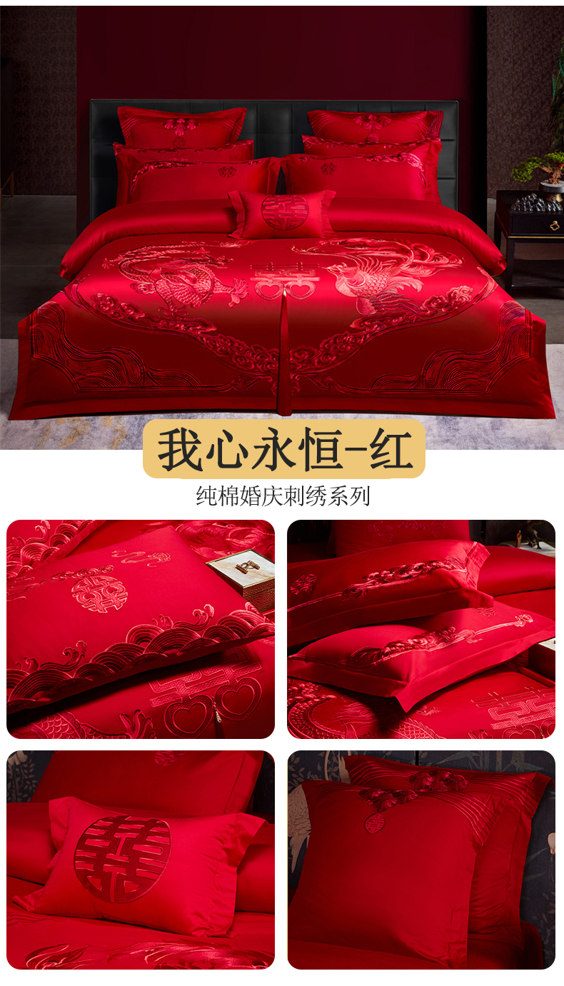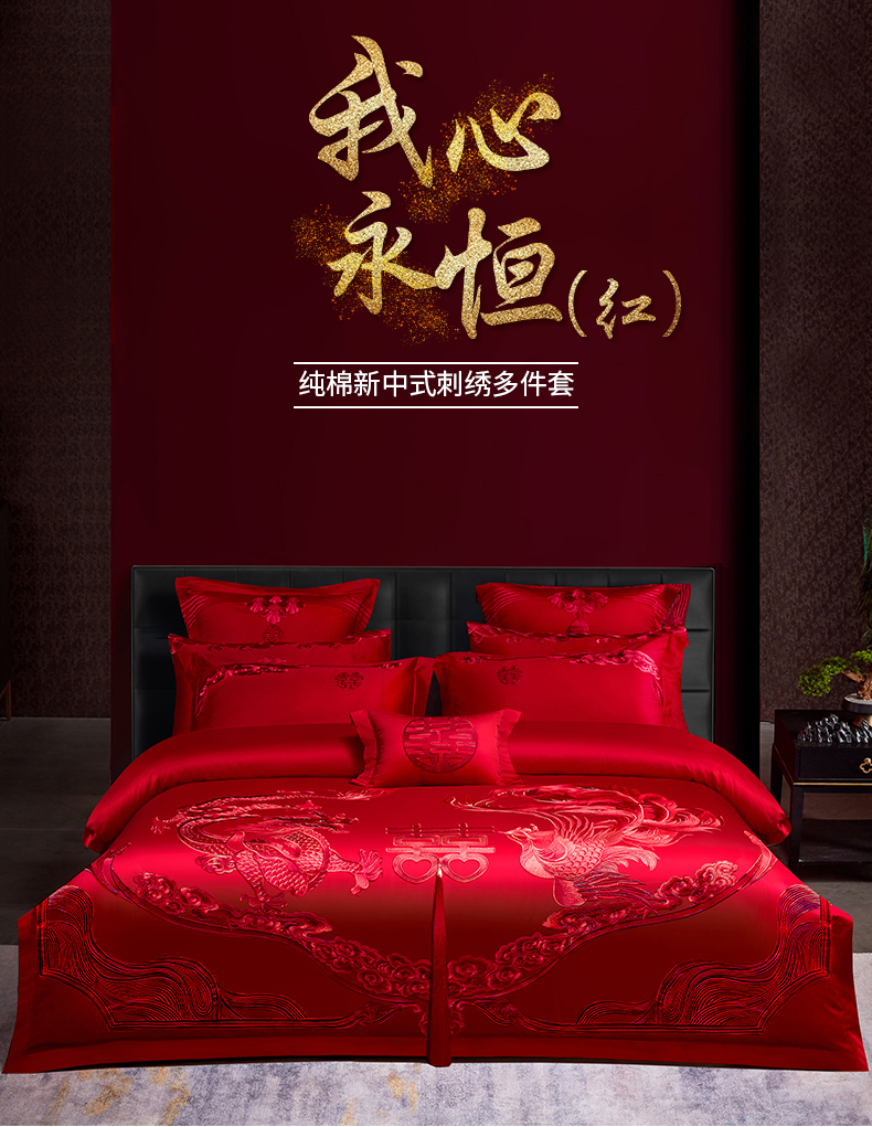 当前位置: 91家纺网 > 商品网购 > 床品套件 > 四件套 > 婚庆四件套 > 宏羽纺家纺 2025新款全棉100%全棉新中式婚庆多件套 全棉我心永恒-红