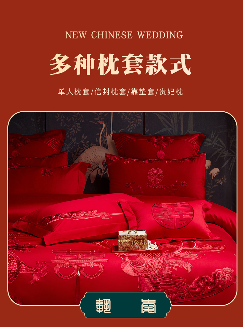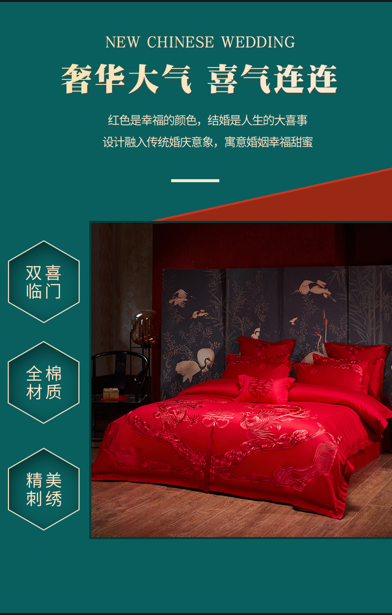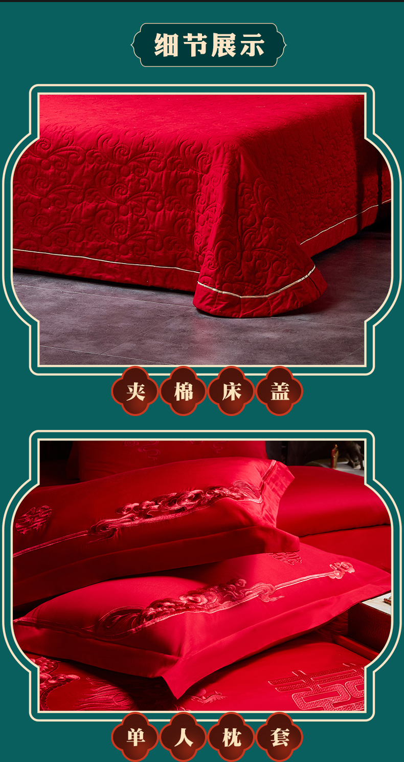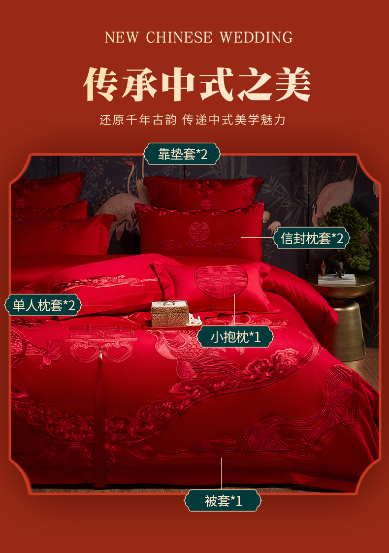 当前位置: 91家纺网 > 商品网购 > 床品套件 > 四件套 > 婚庆四件套 > 宏羽纺家纺 2025新款全棉100%全棉新中式婚庆多件套 全棉我心永恒-红