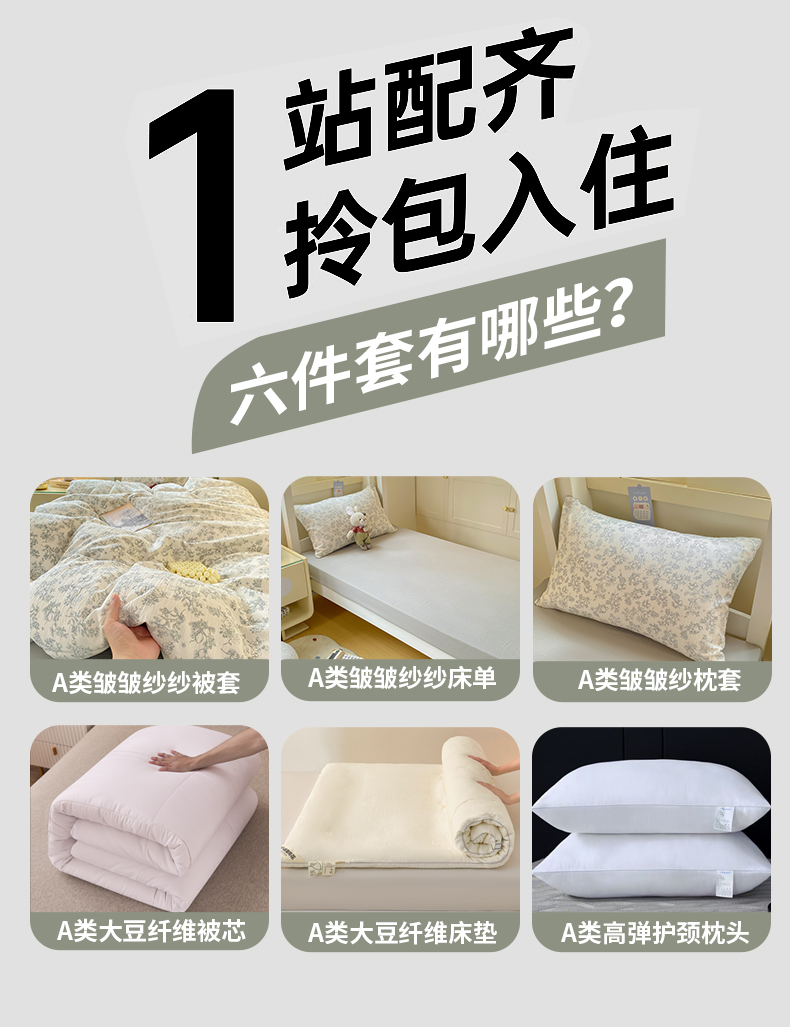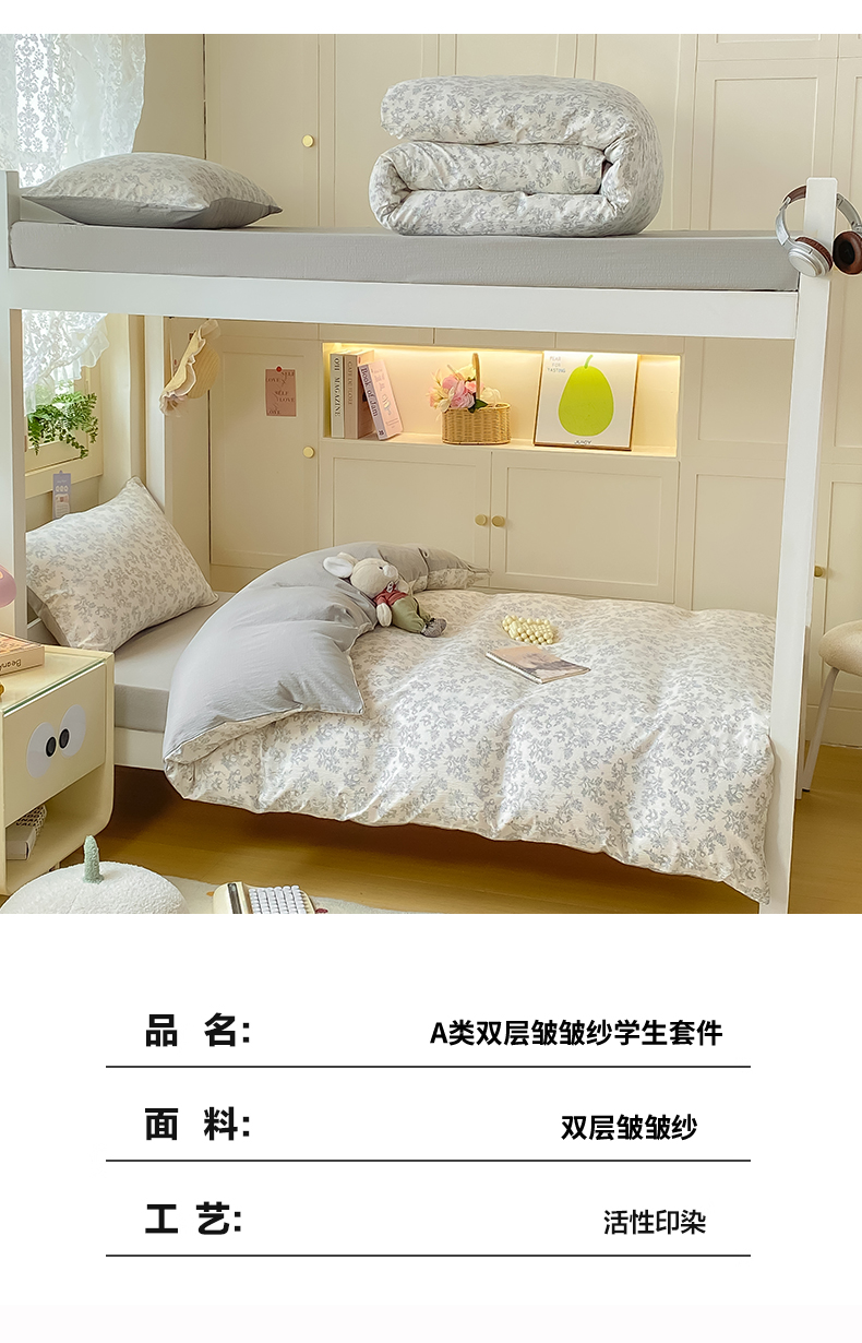 当前位置: 91家纺网 > 商品网购 > 床品套件 > 六件套 > 丽美人家纺 2025新款A类皱皱纱学生宿舍三件套上下铺三件套六件套 QB花开漫漫