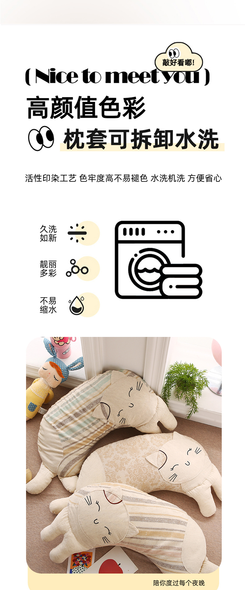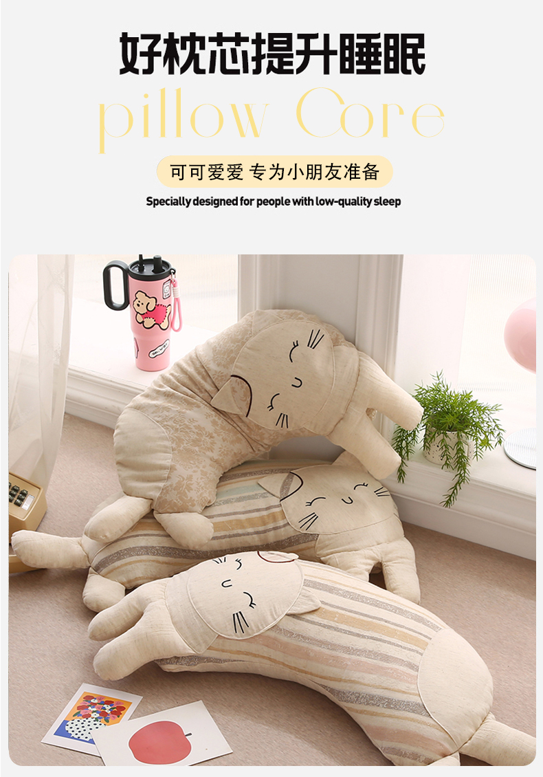 商品名称:蔻眠 棉麻可爱猫卡通荞麦护颈枕芯儿童学生成人枕头 主图