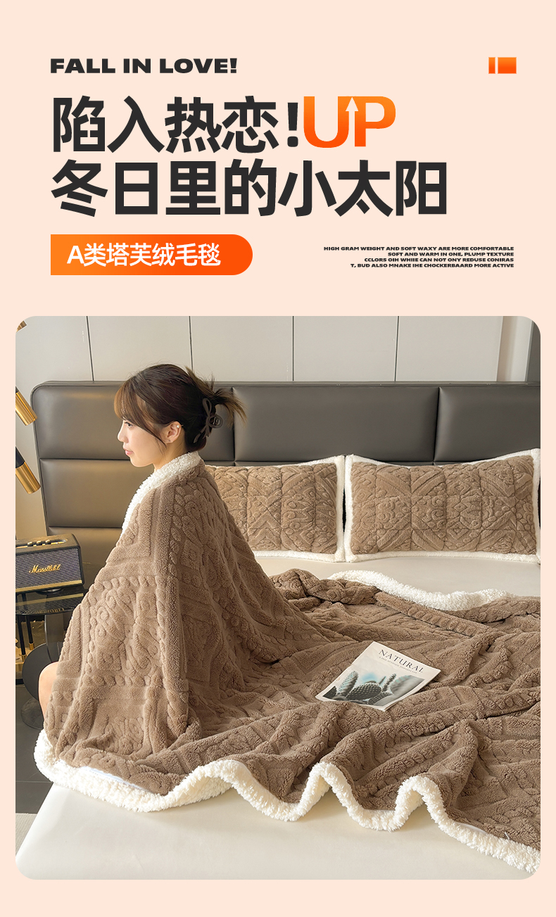 雯豆家纺 2025秋冬新款塔芙绒毛毯被套两用毯子办公室居家披肩毯盖毯毯子-英伦 英伦-阳光驼