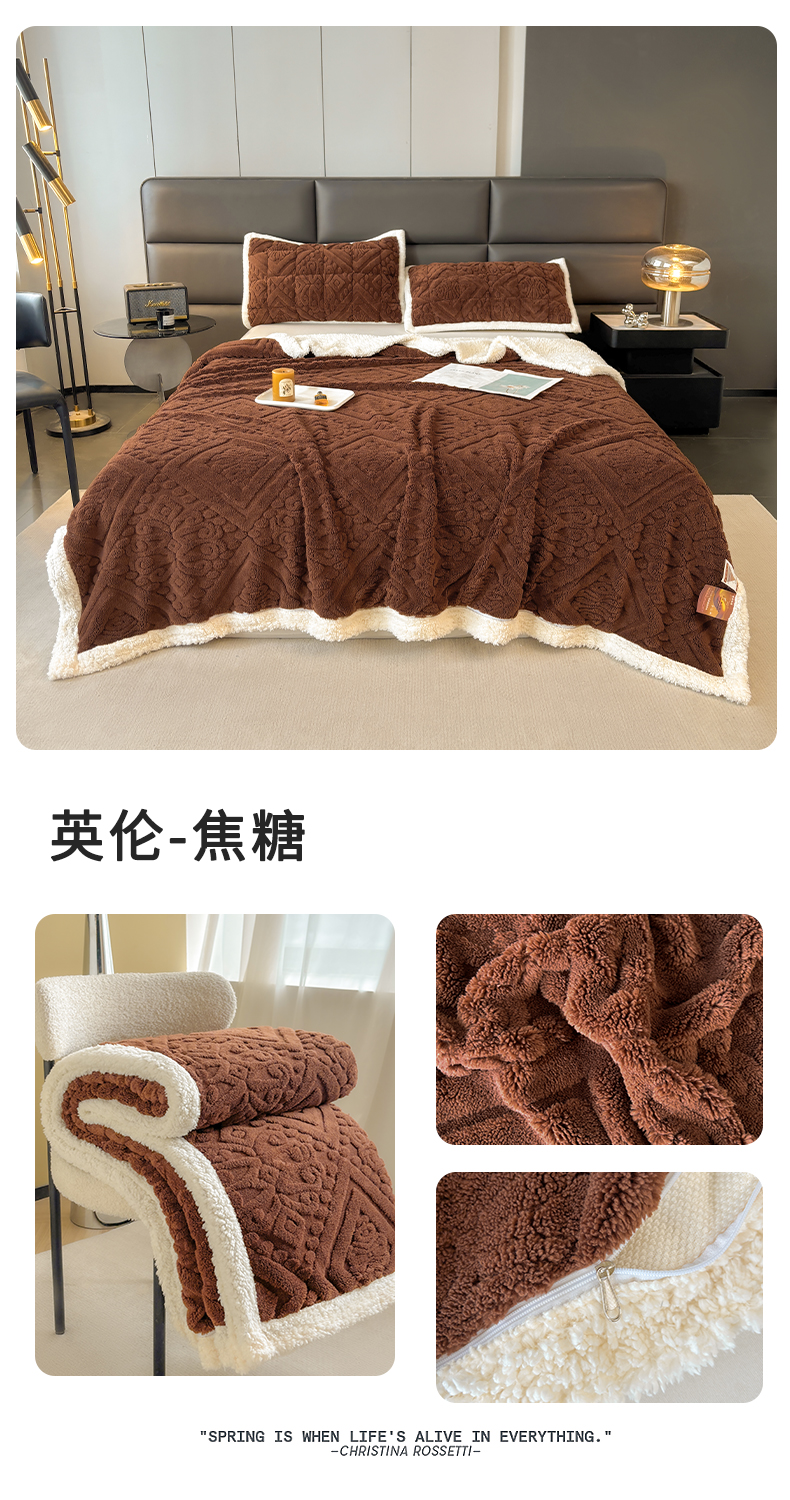 商品名称:雯豆家纺 2025秋冬新款塔芙绒毛毯被套两用毯子办公室居家披肩毯盖毯毯子-英伦 英伦-阳光驼