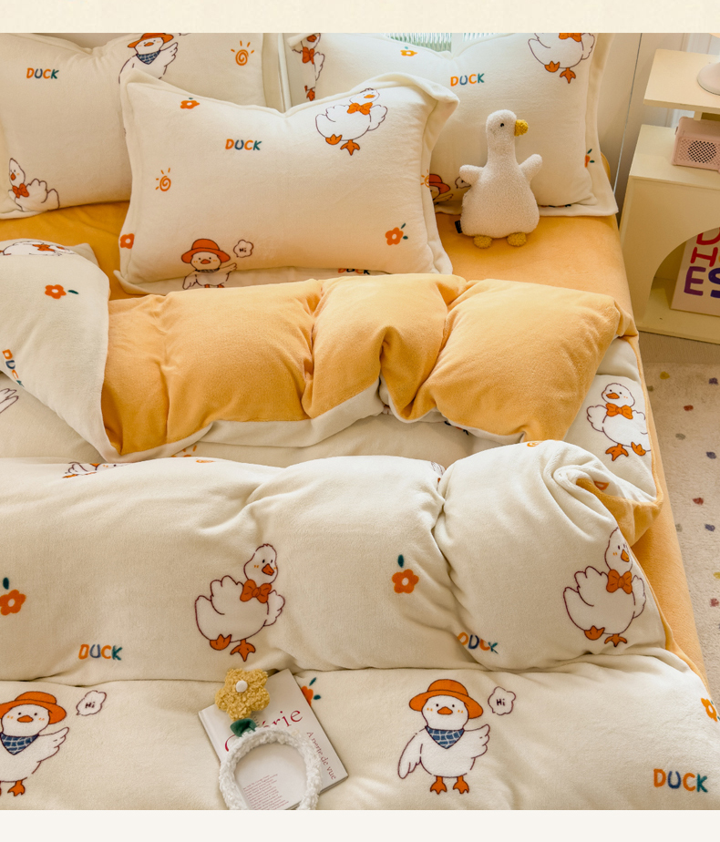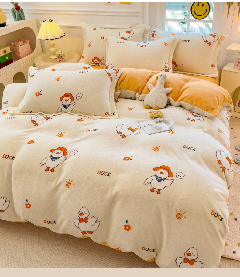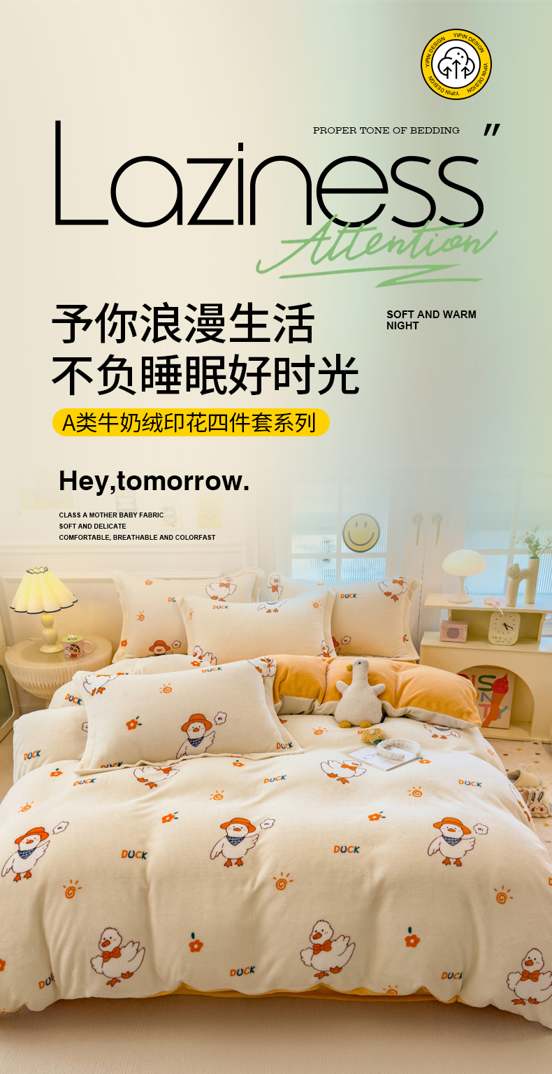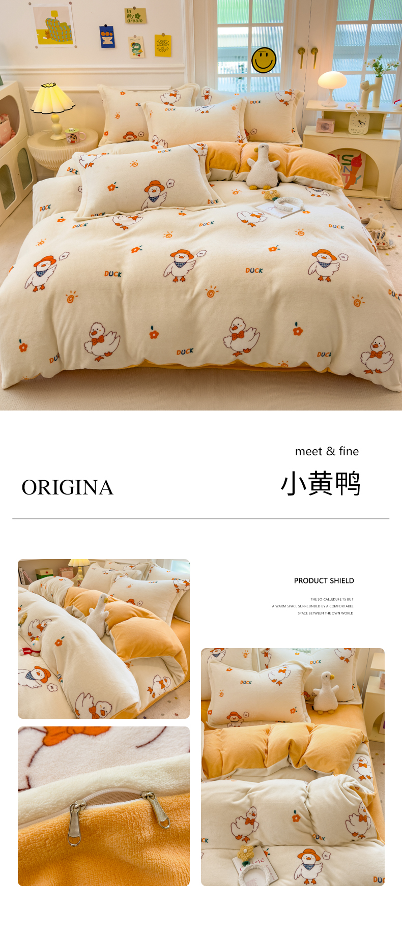 当前位置: 91家纺网 > 商品网购 > 床品套件 > 四件套 > 牛奶绒四件套 > 丝羽坊 2025新款200克加厚小清新牛奶绒床单款 床笠款四件套 被套 小黄鸭