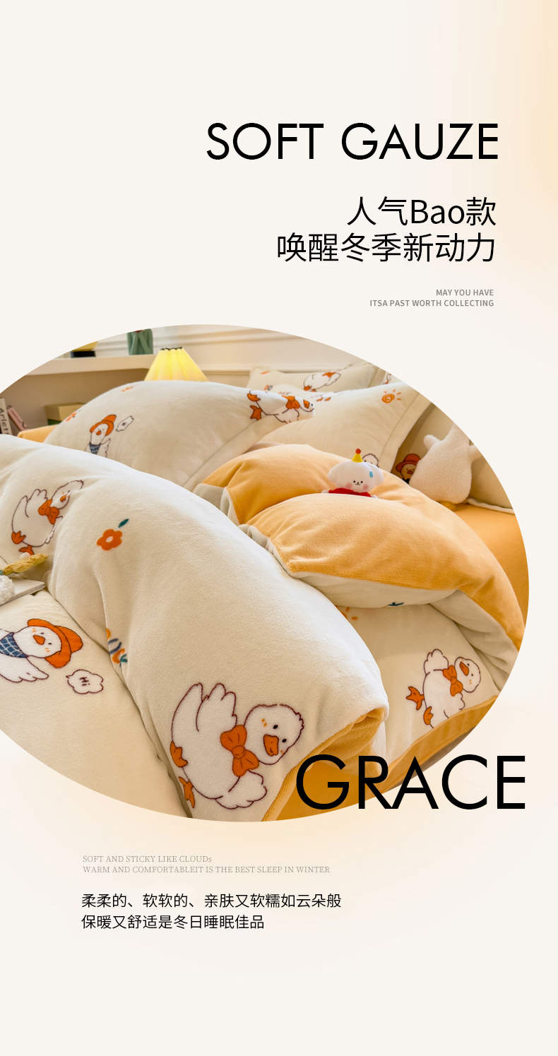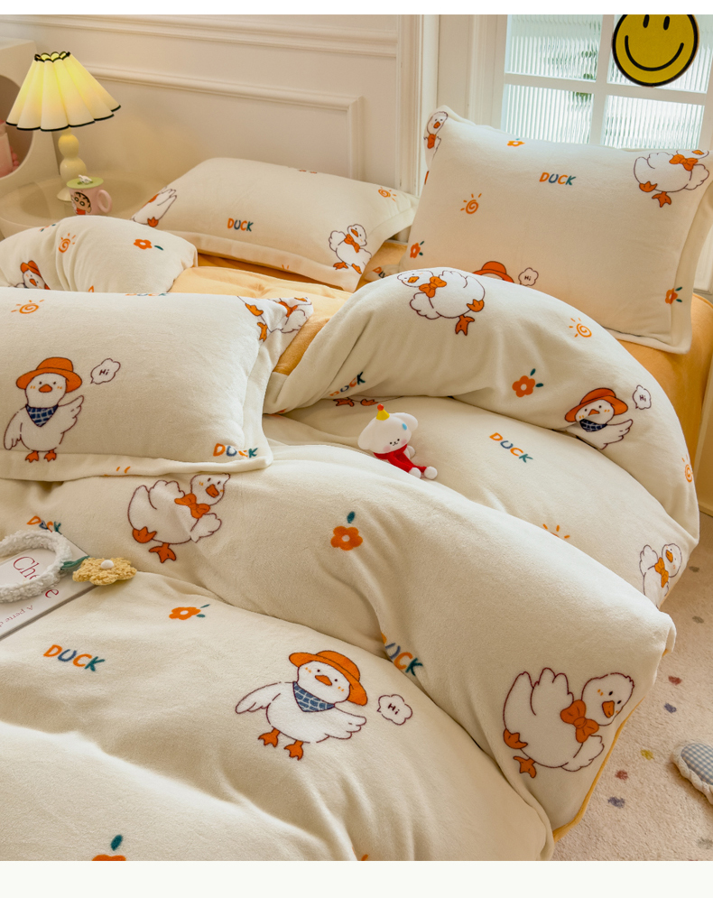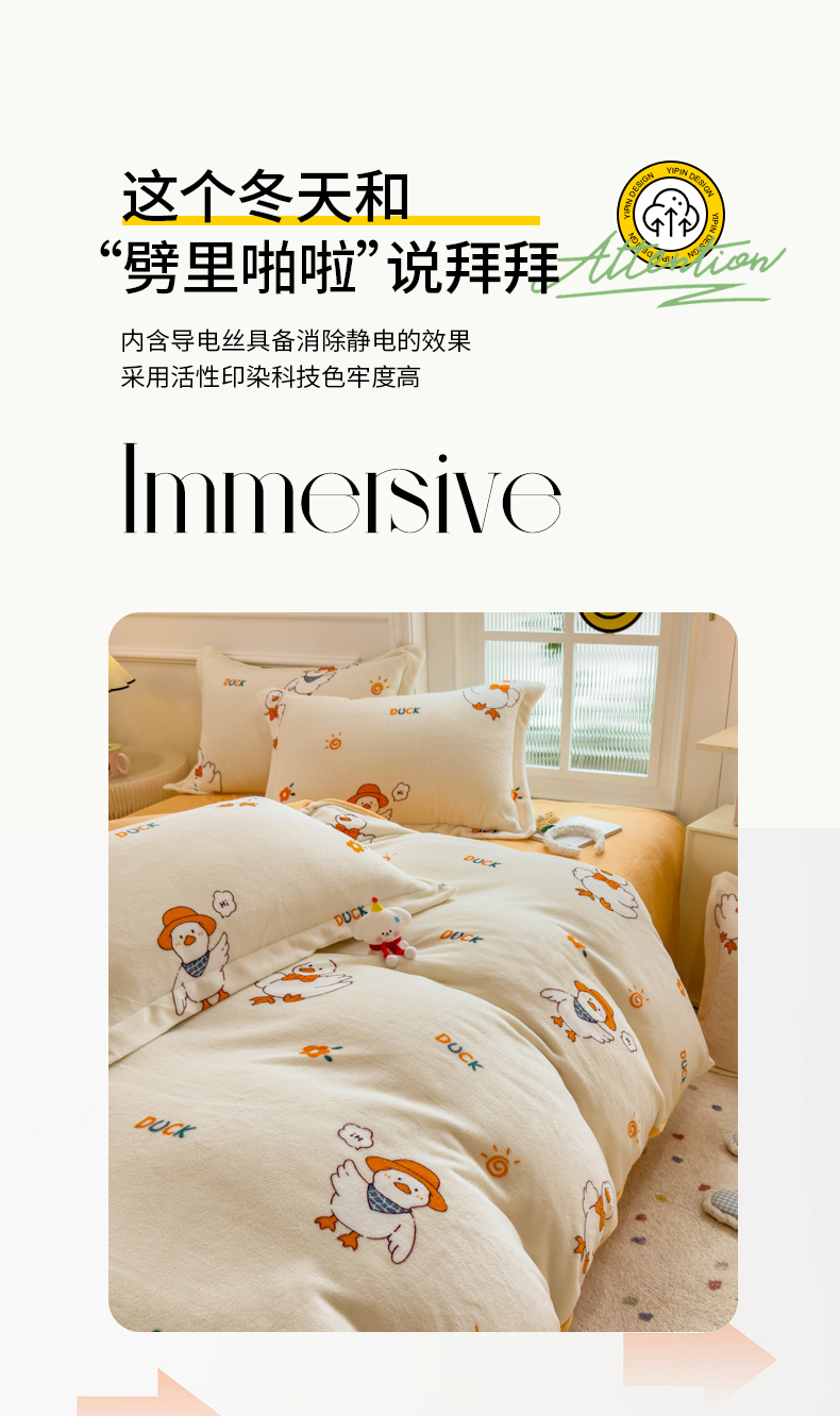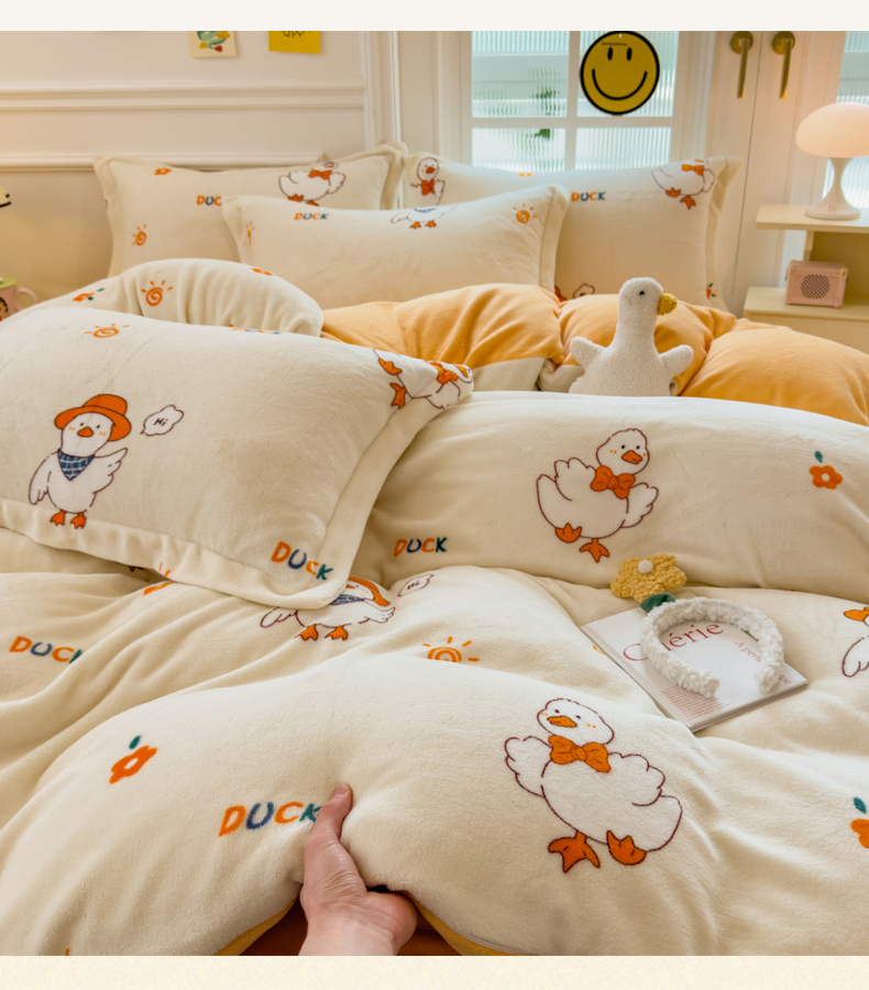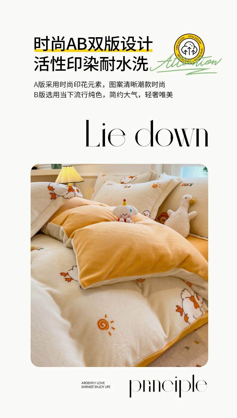 当前位置: 91家纺网 > 商品网购 > 床品套件 > 四件套 > 牛奶绒四件套 > 丝羽坊 2025新款200克加厚小清新牛奶绒床单款 床笠款四件套 被套 小黄鸭
