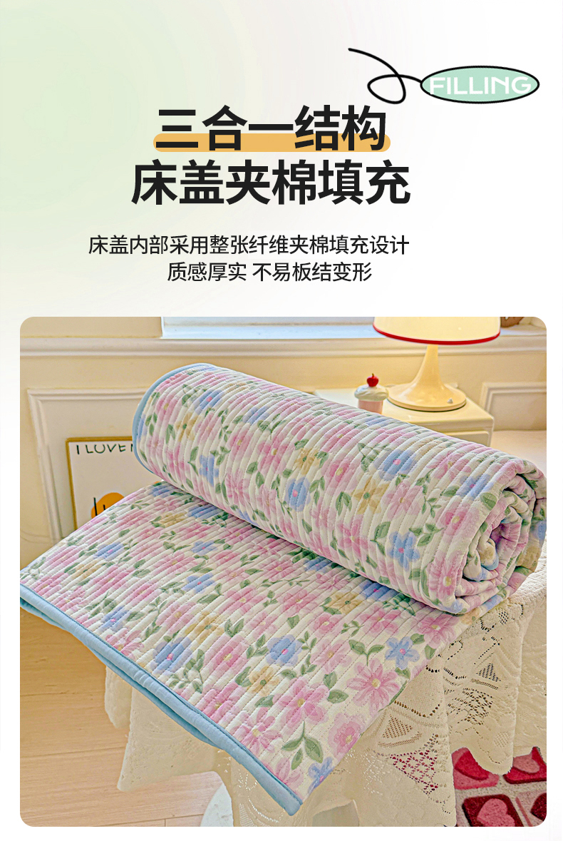 恒尚居 2025新款双层纱床盖床盖单品单床盖云感夹棉床单床垫软床垫-四季款【系列一】 组合图仅供展示不可下单