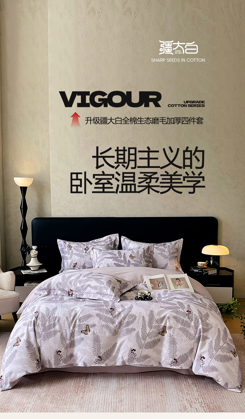 麦田家纺 2025新款疆大白全棉纯棉加厚生态磨毛四件套 梦蝶
