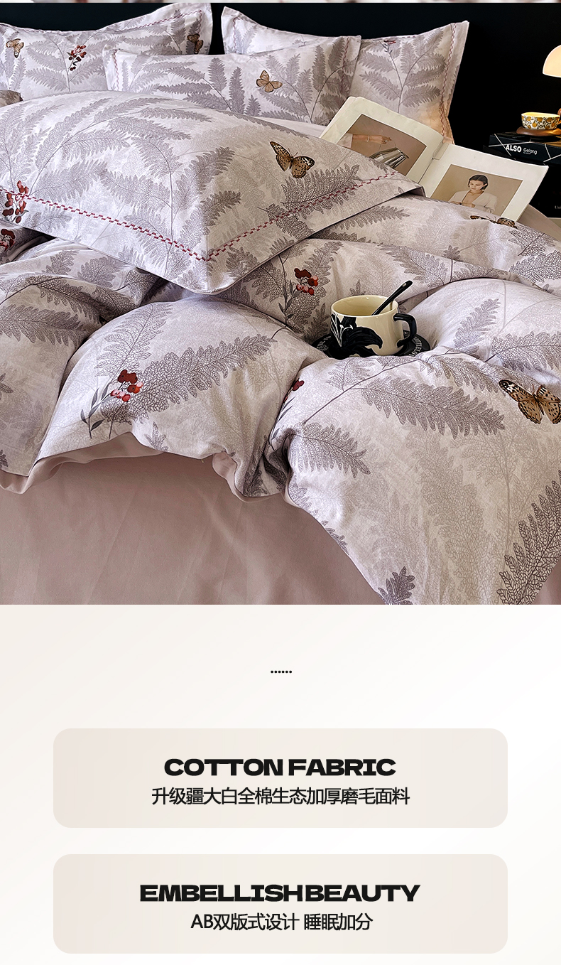 商品名称:麦田家纺 2025新款疆大白全棉纯棉加厚生态磨毛四件套 梦蝶