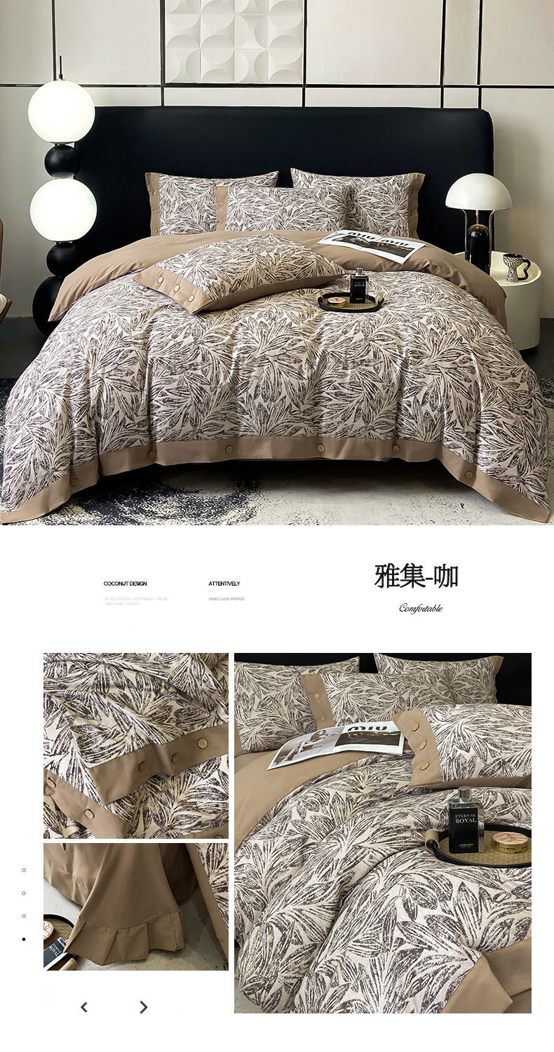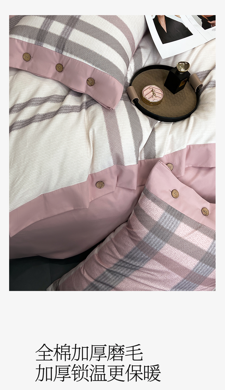 麦田家纺 2025新款全棉纯棉轻奢加厚磨毛纽扣款四件套 寻山-豆沙