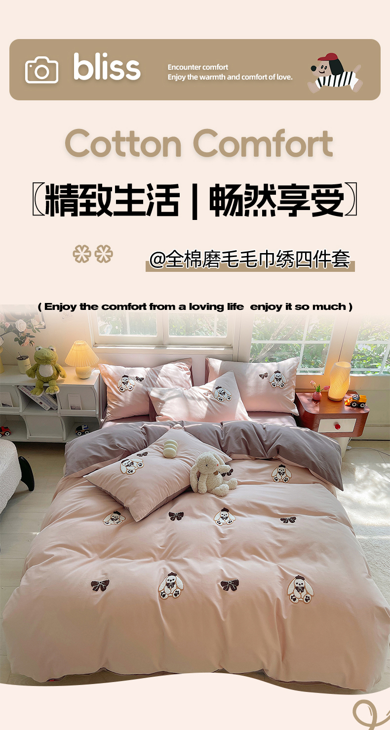 当前位置: 91家纺网 > 商品网购 > 床品套件 > 四件套 > 其它四件套 > 炫拼家纺 2026新款全棉纯棉磨毛卡通满版绣加厚纯棉四件套-米兜 米兜-小兔可可