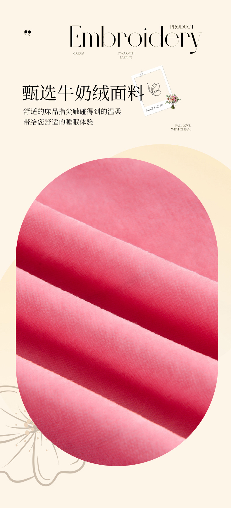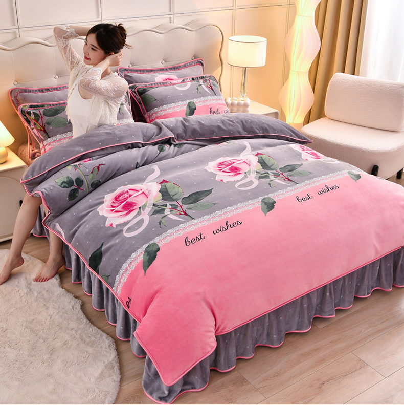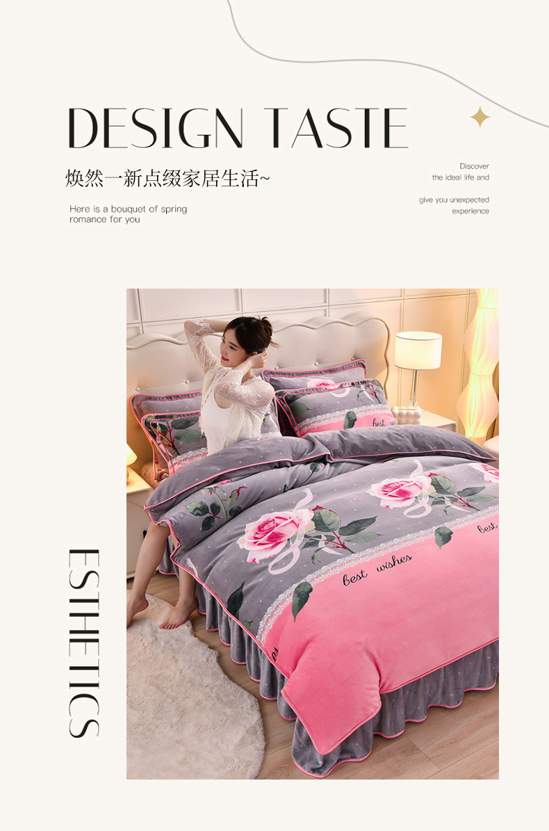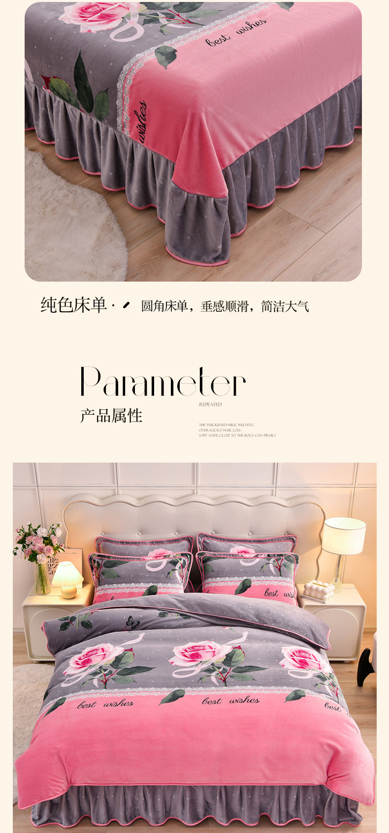 绒宴 2025新款8.5斤牛奶绒金貂法莱绒床裙款保暖四件套 海棠,海棠