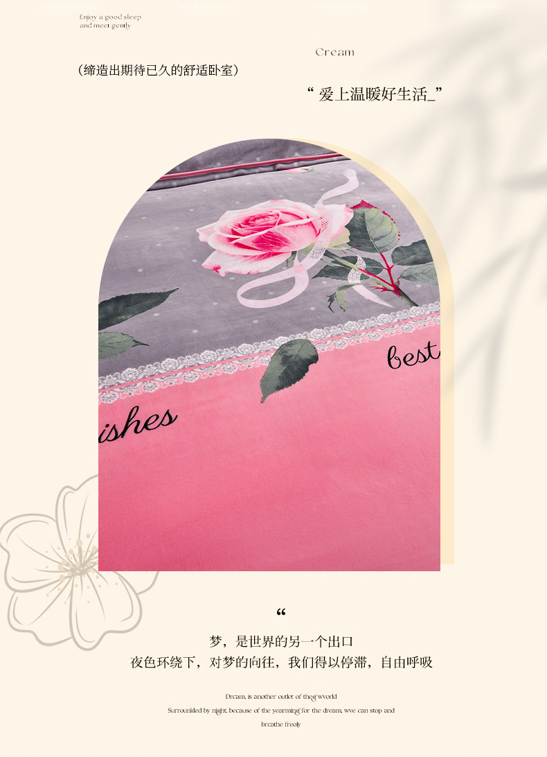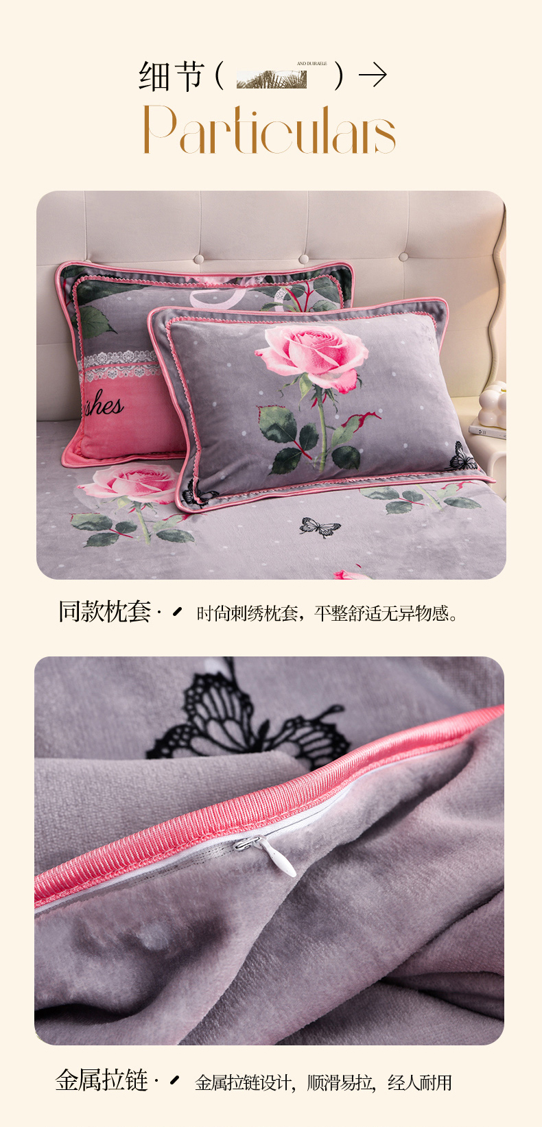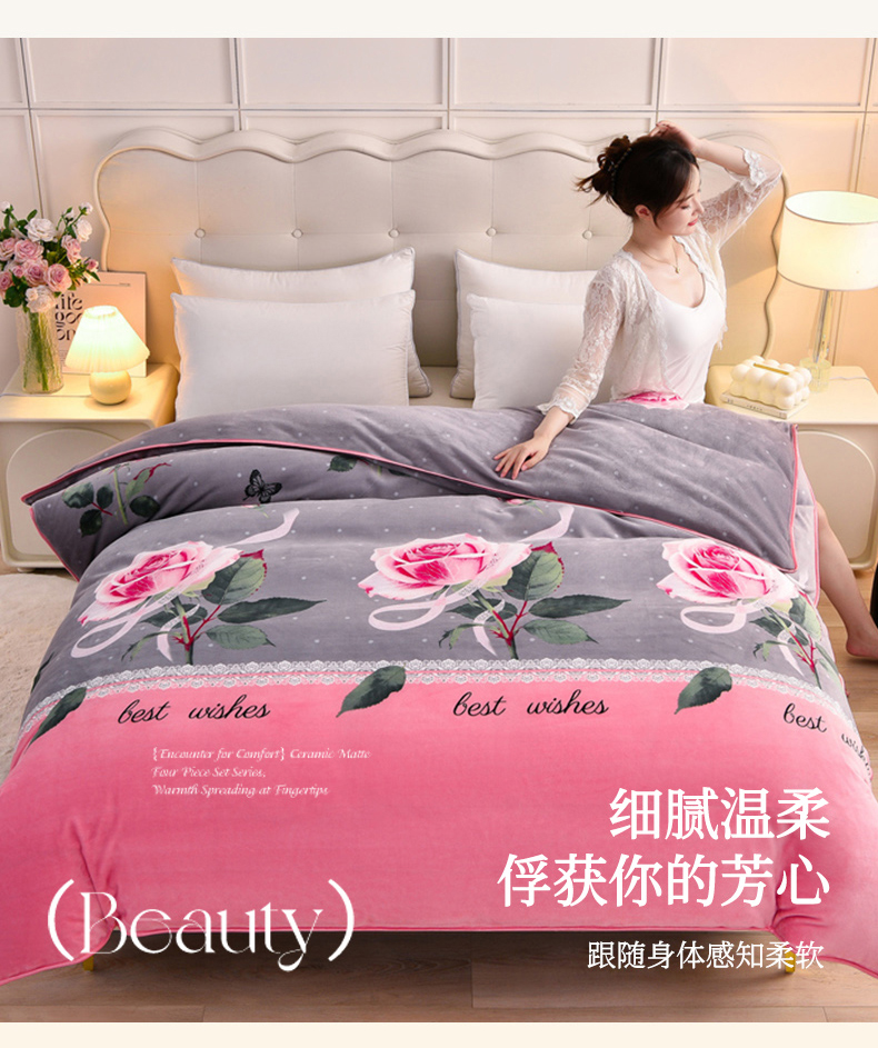 商品名称:绒宴2025新230克特厚款印花牛奶绒单被套法莱绒金貂被套单件 玫瑰庄园