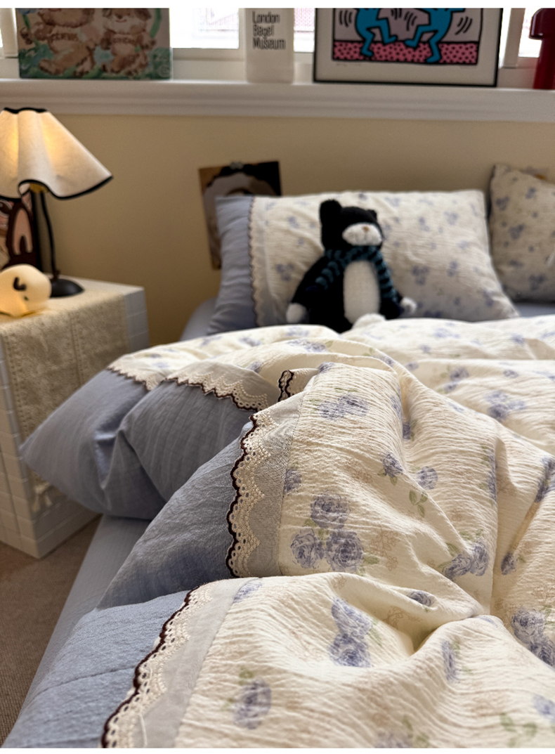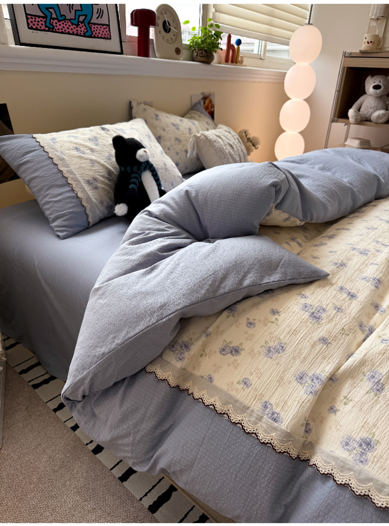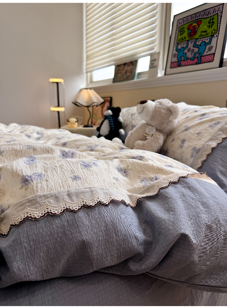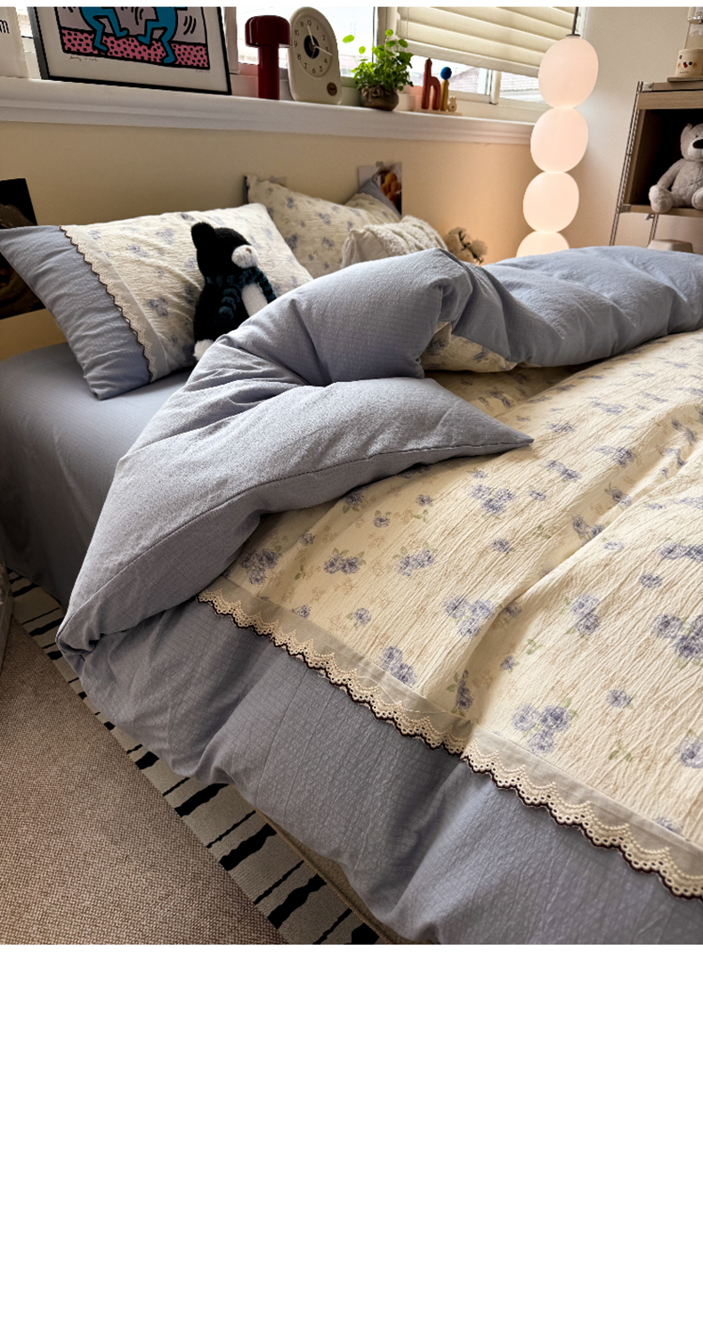 当前位置: 91家纺网 > 商品网购 > 床品套件 > 四件套 > 全棉普通四件套 > 水墨江南 2025新款云感皱皱纱全棉花边四件套-场景二 花边款-幽香
