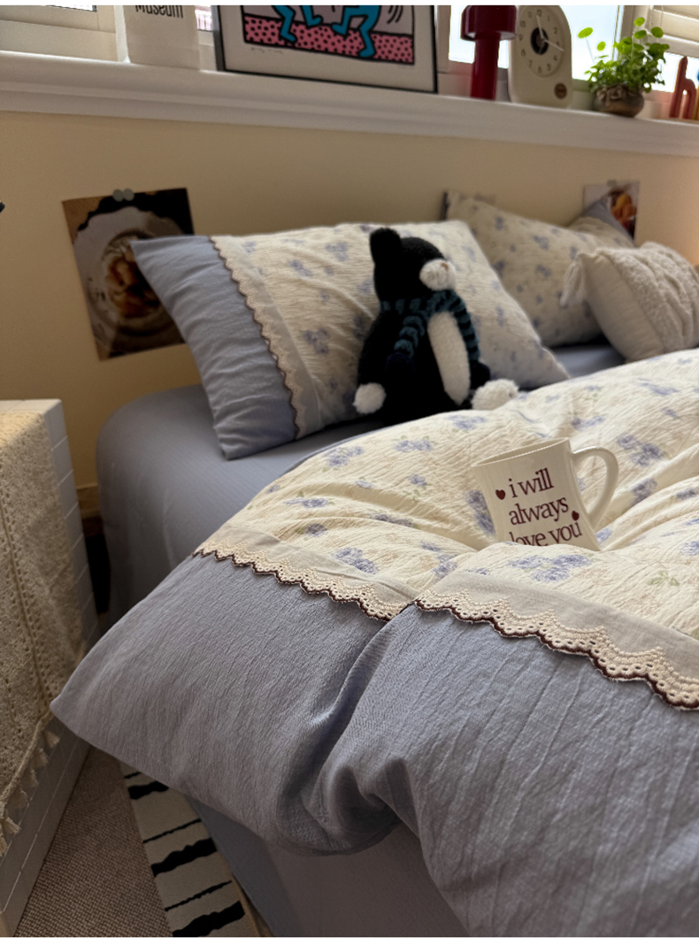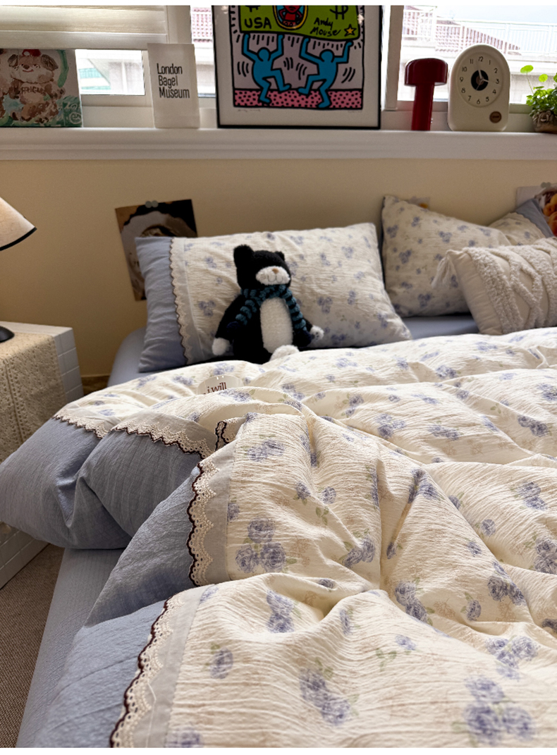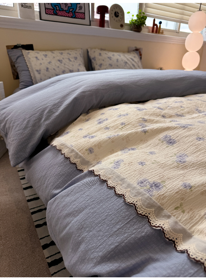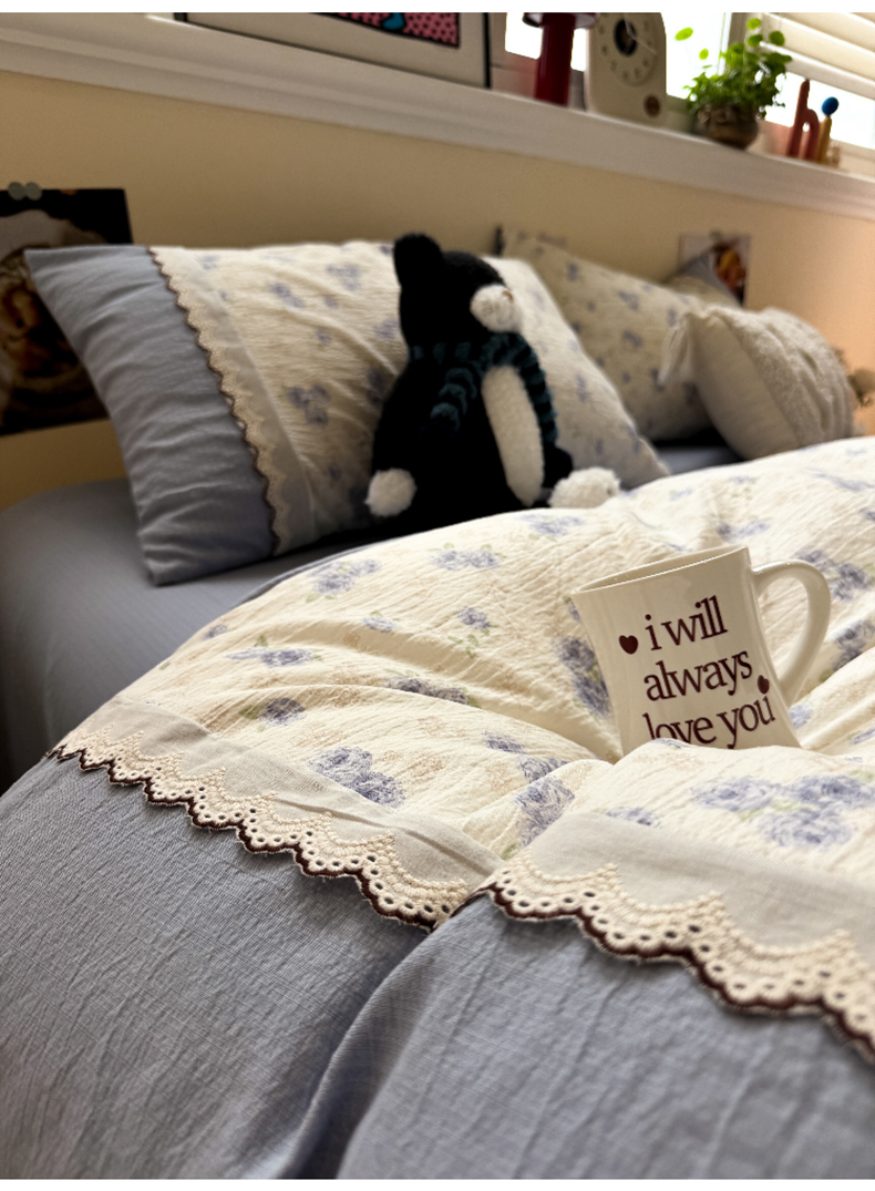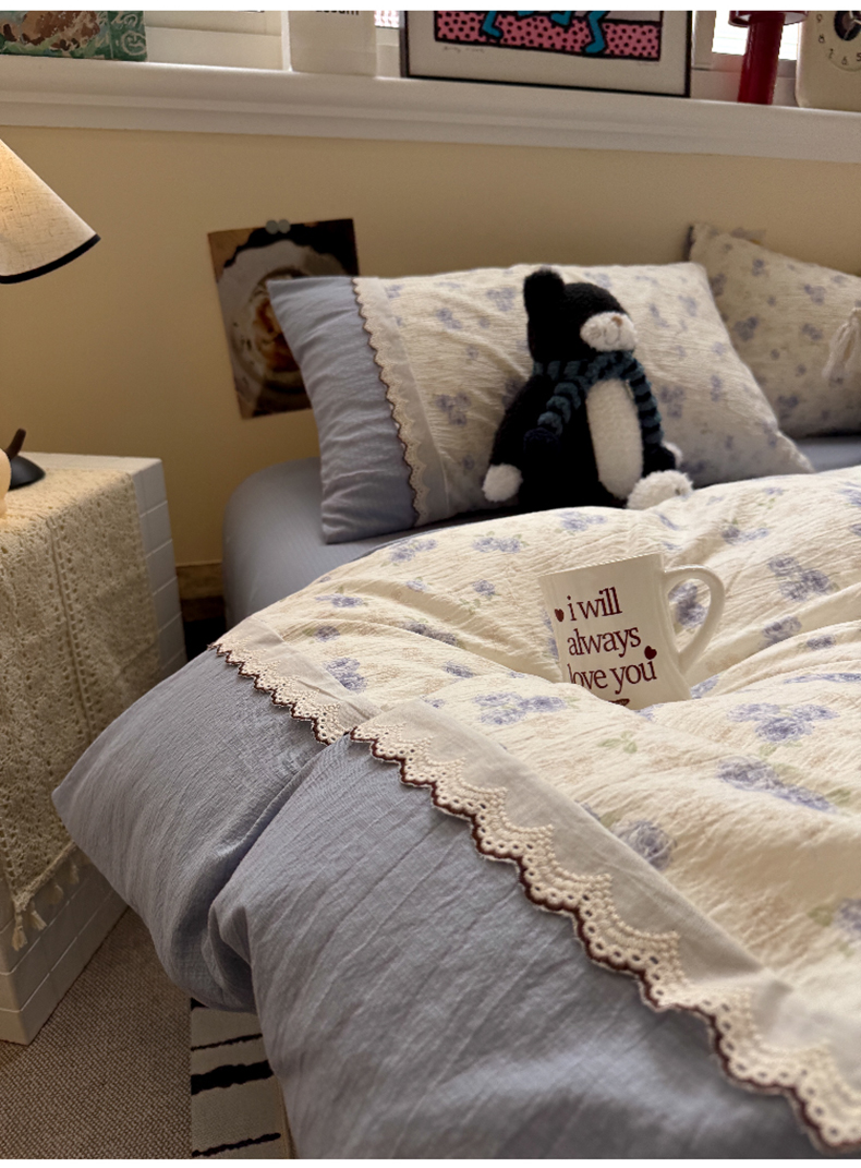 当前位置: 91家纺网 > 商品网购 > 床品套件 > 四件套 > 全棉普通四件套 > 水墨江南 2025新款云感皱皱纱全棉花边四件套-场景二 花边款-幽香
